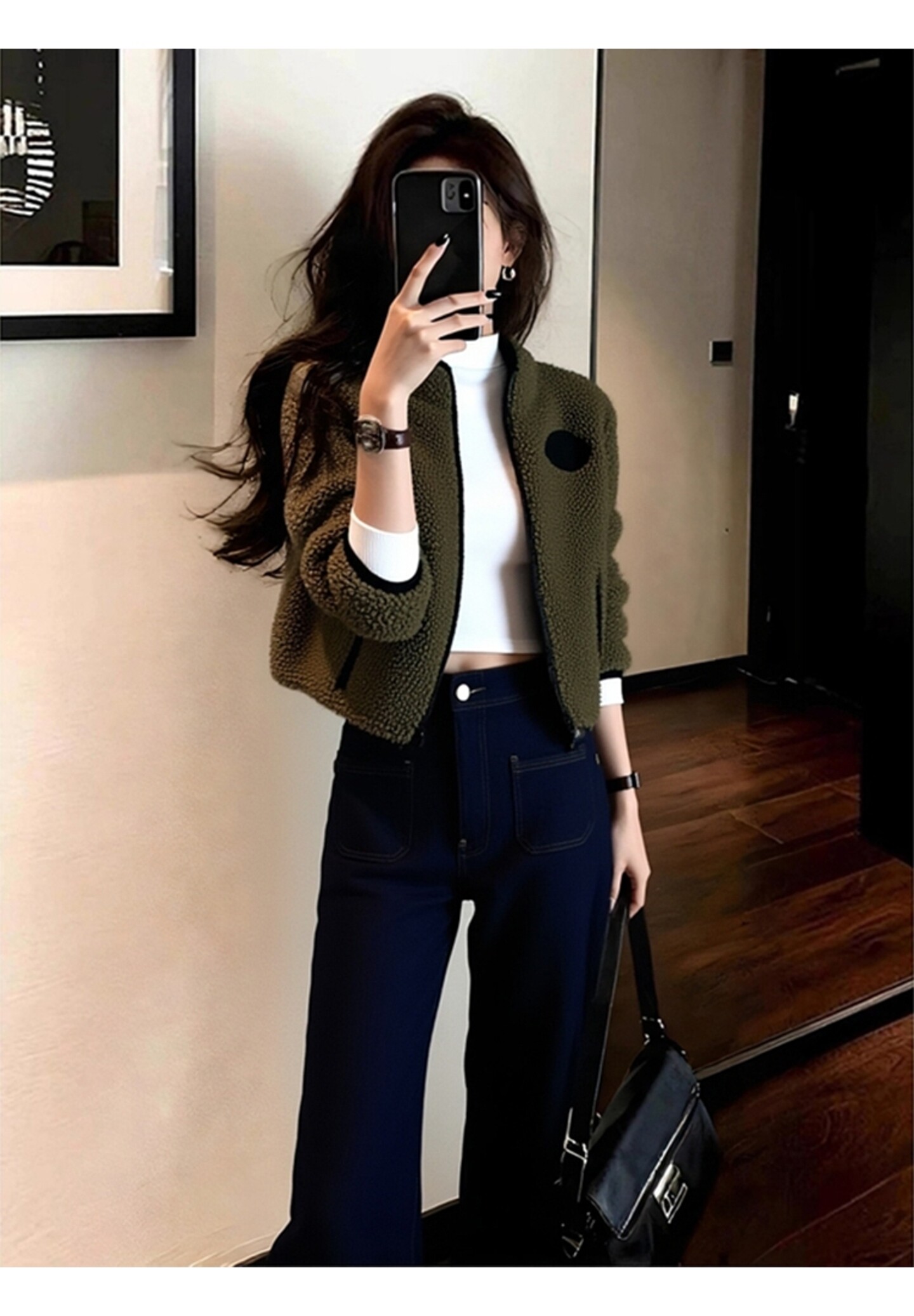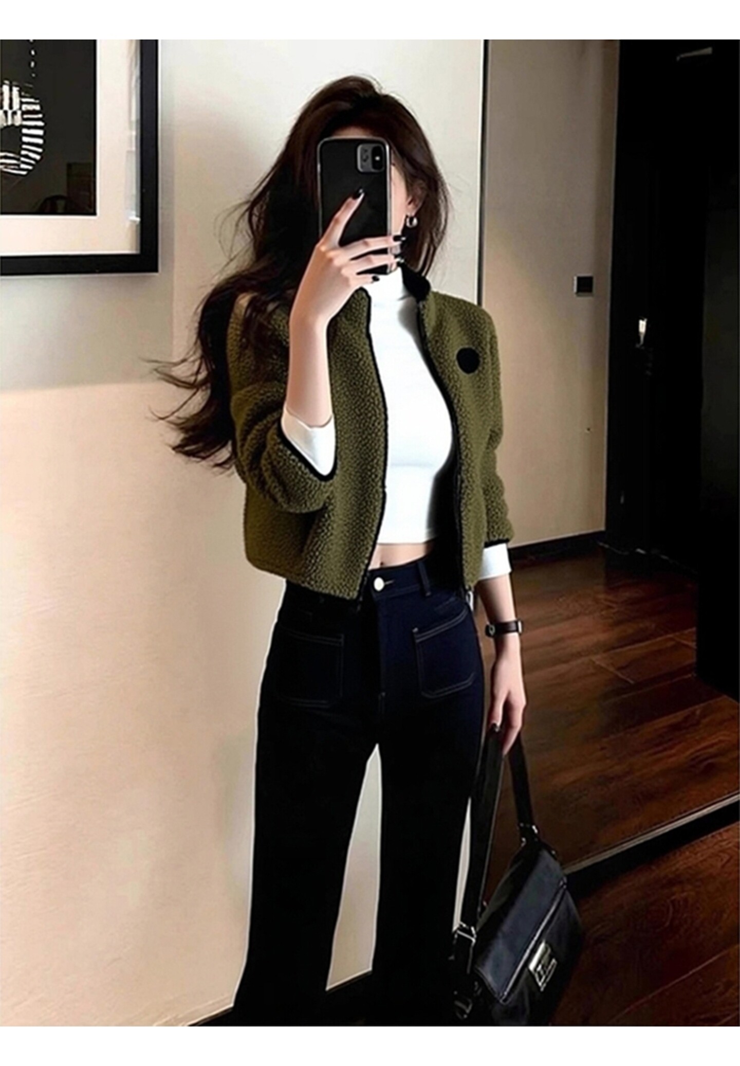 Spring Casual Versatile Tops for Petite Women, Unique and Beautiful, Super Stylish Korean-Style Green Lamb Wool Short Jacket for Women