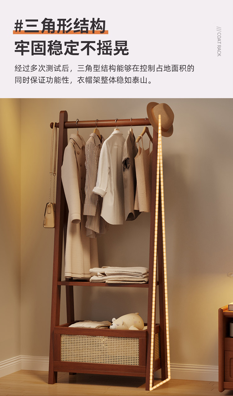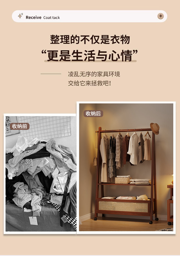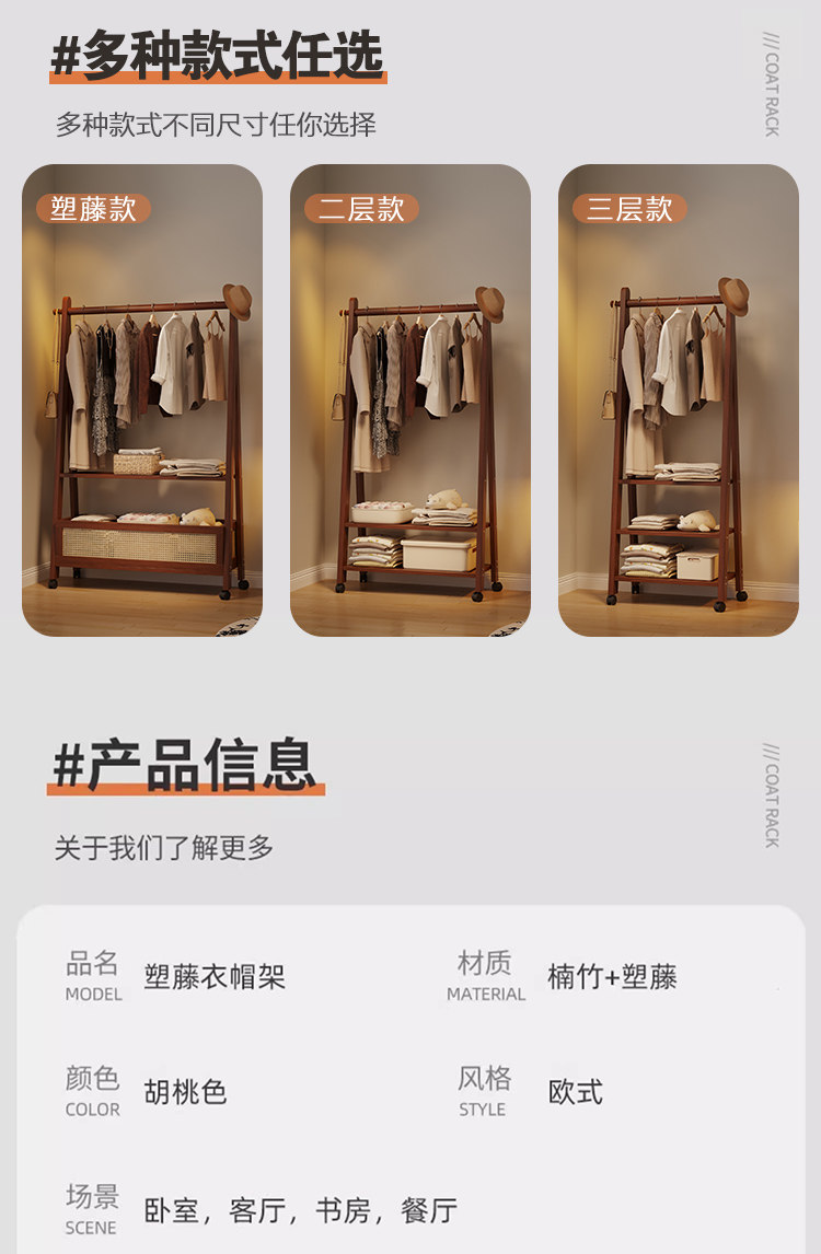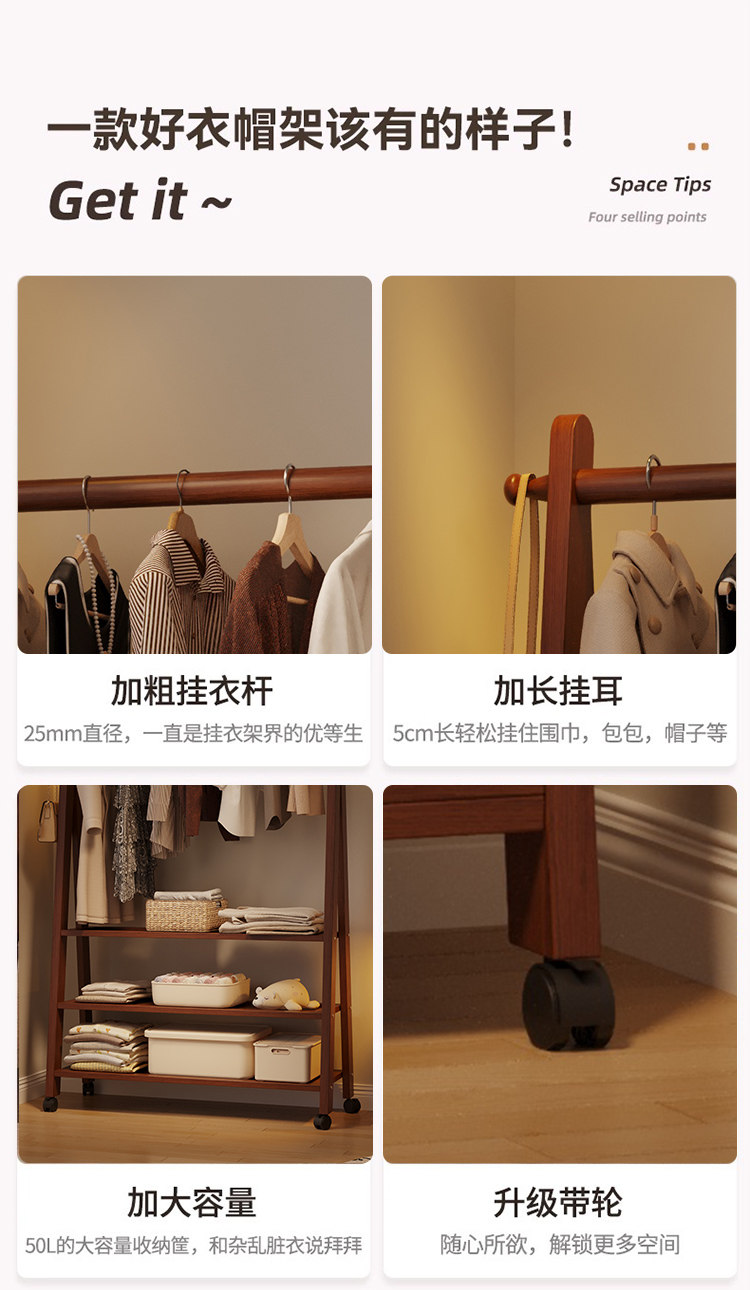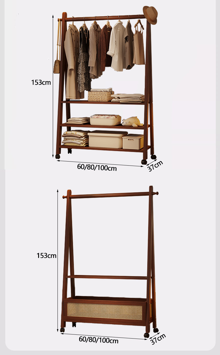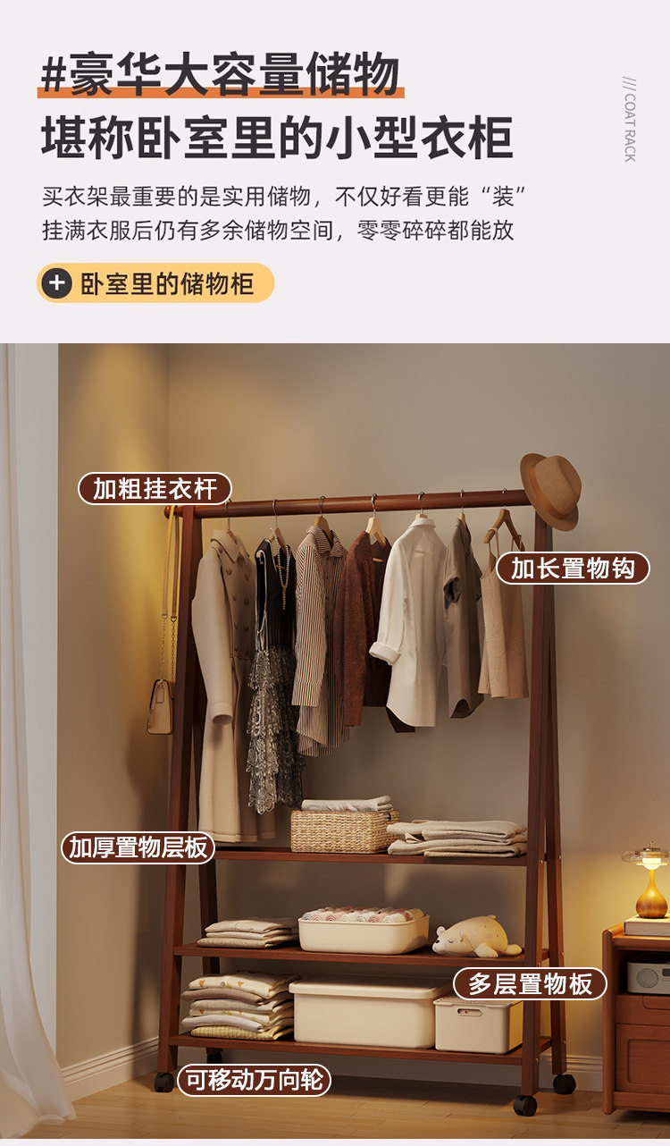 Floor-Standing Coat Rack for Bedroom, Living Room, Office, Multi-Functional Clothes Rack with Wheels, Mobile Rack