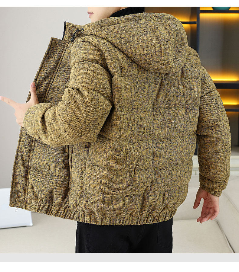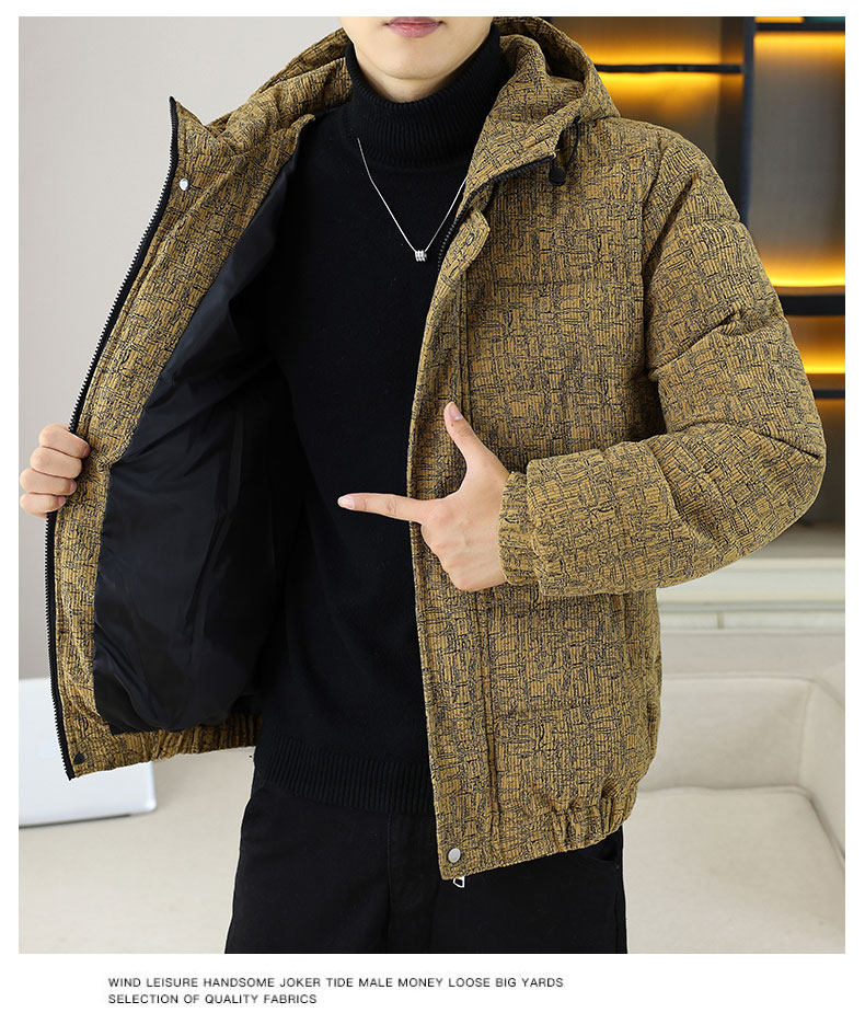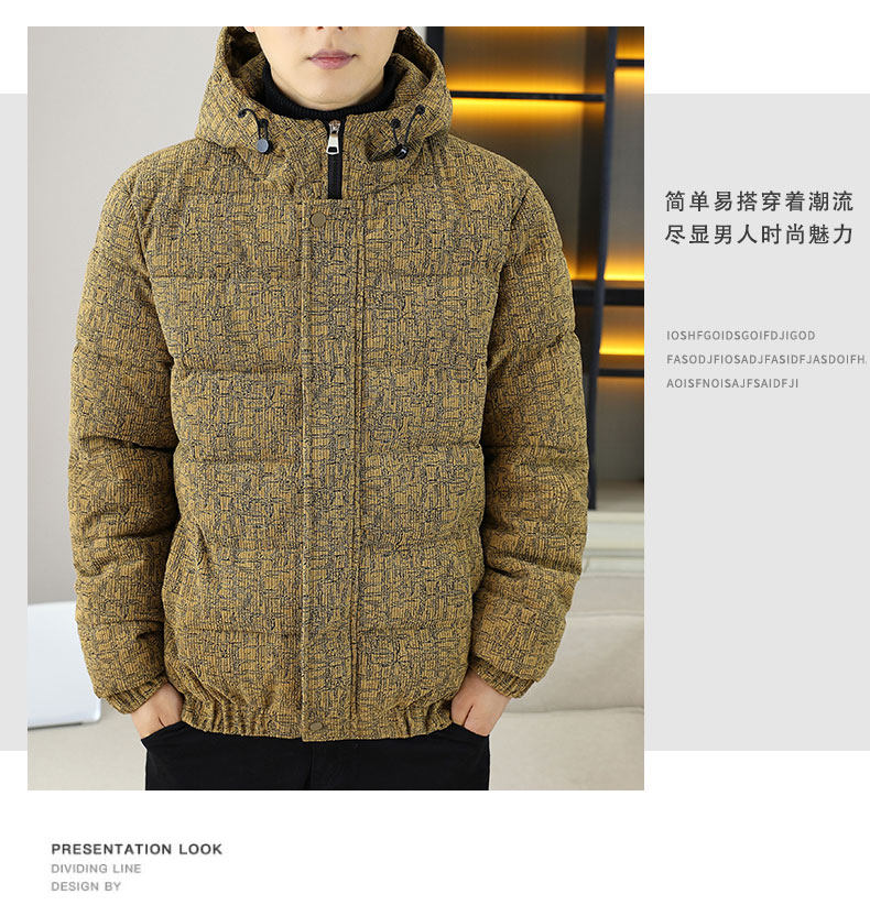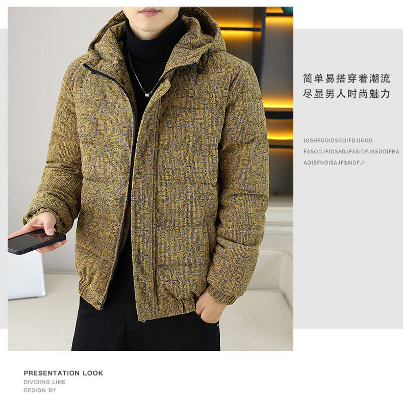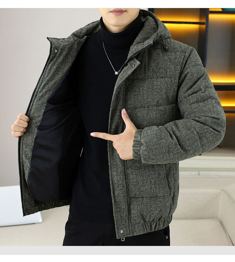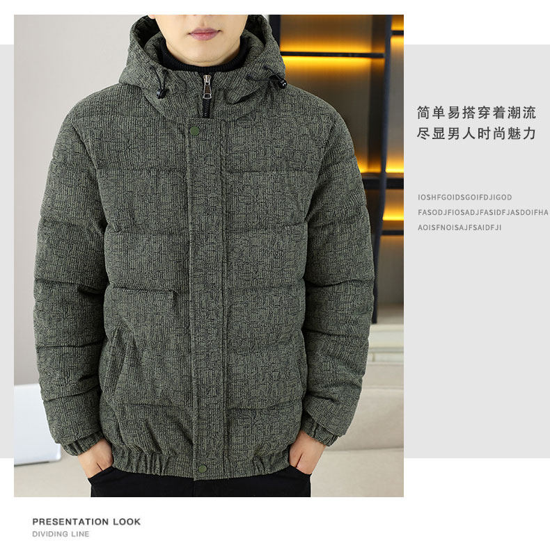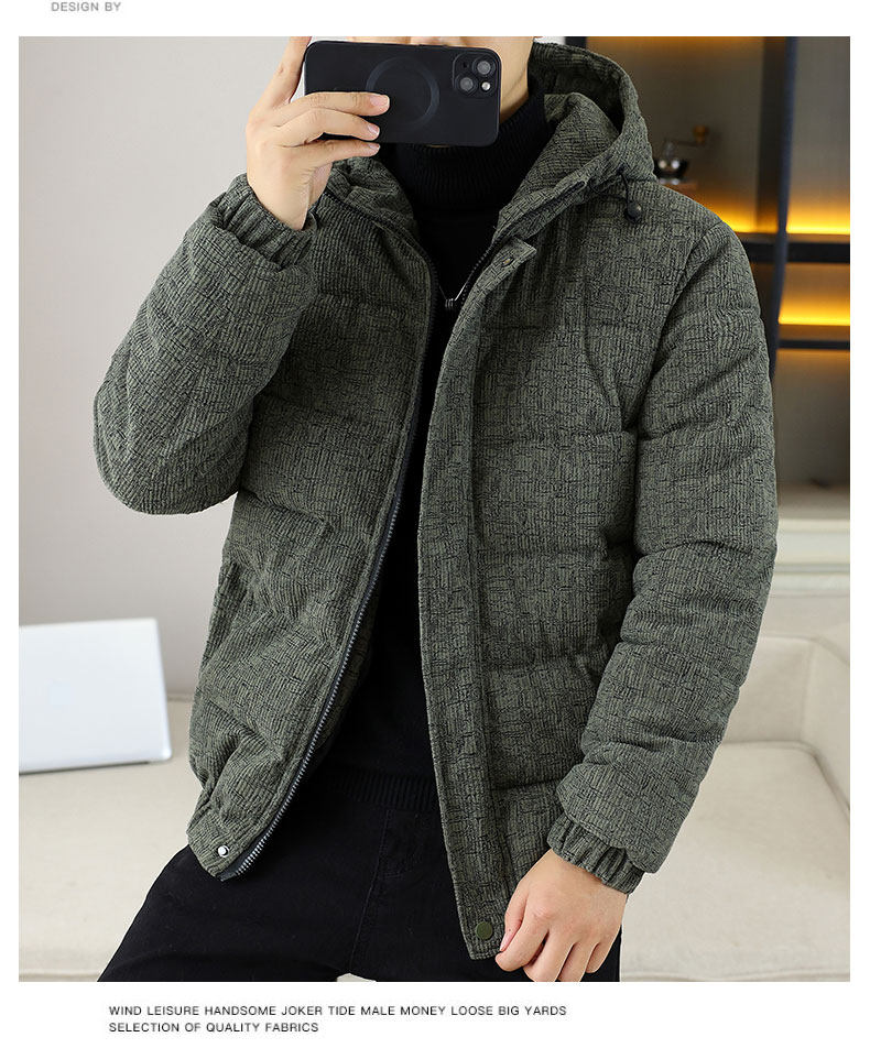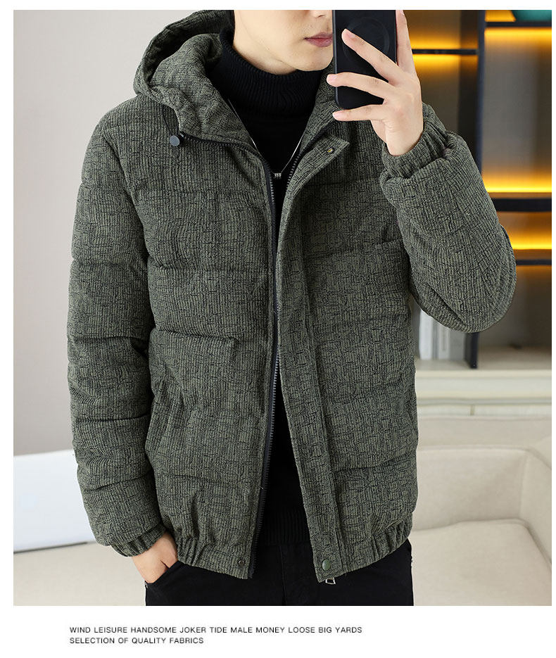 Corduroy jacket men's autumn and winter cotton thickened hooded cotton coat trendy brand handsome casual loose high-end cotton coat