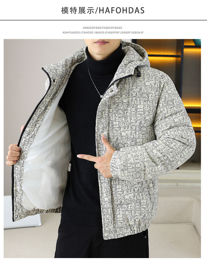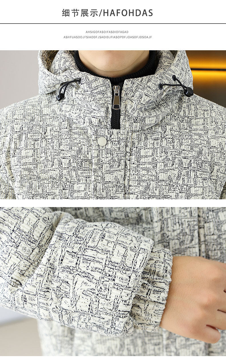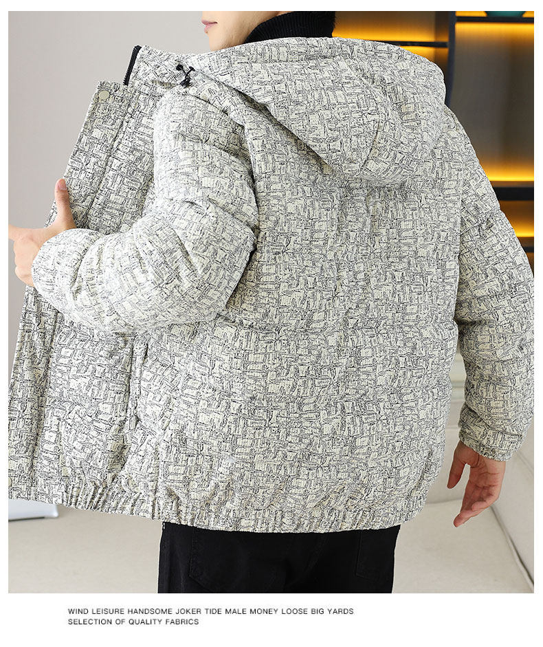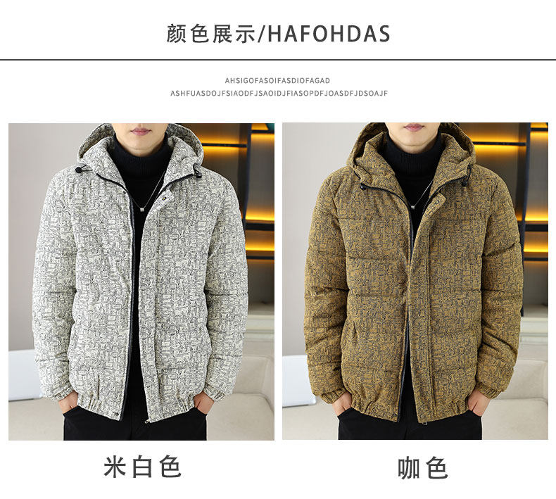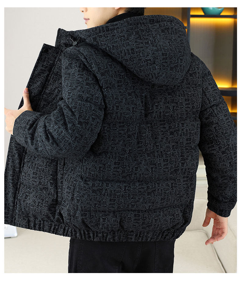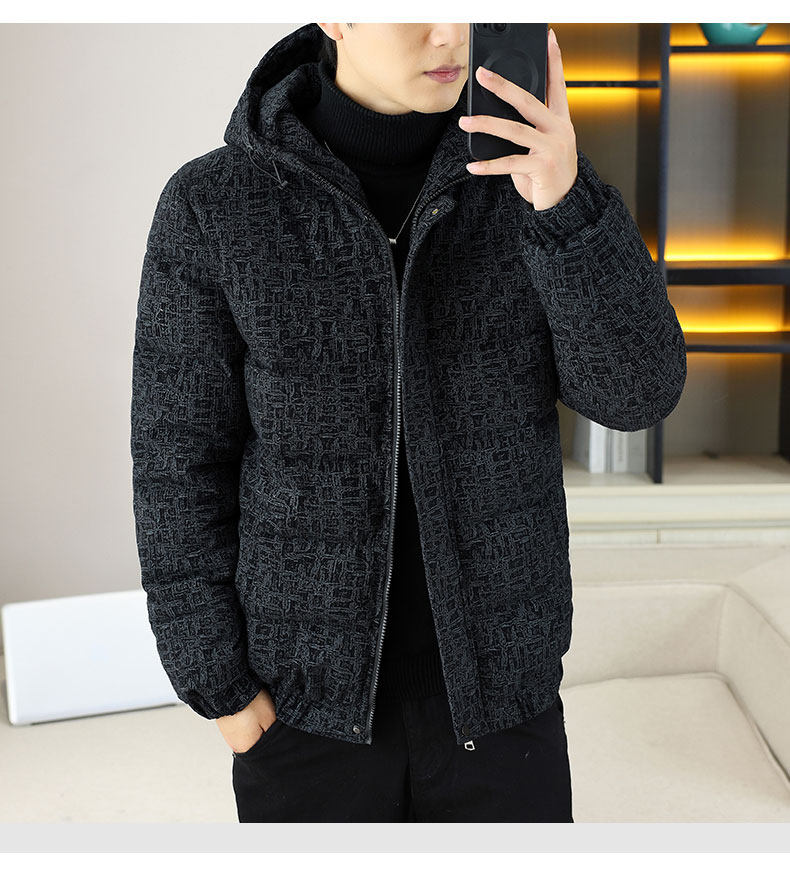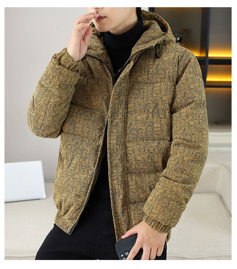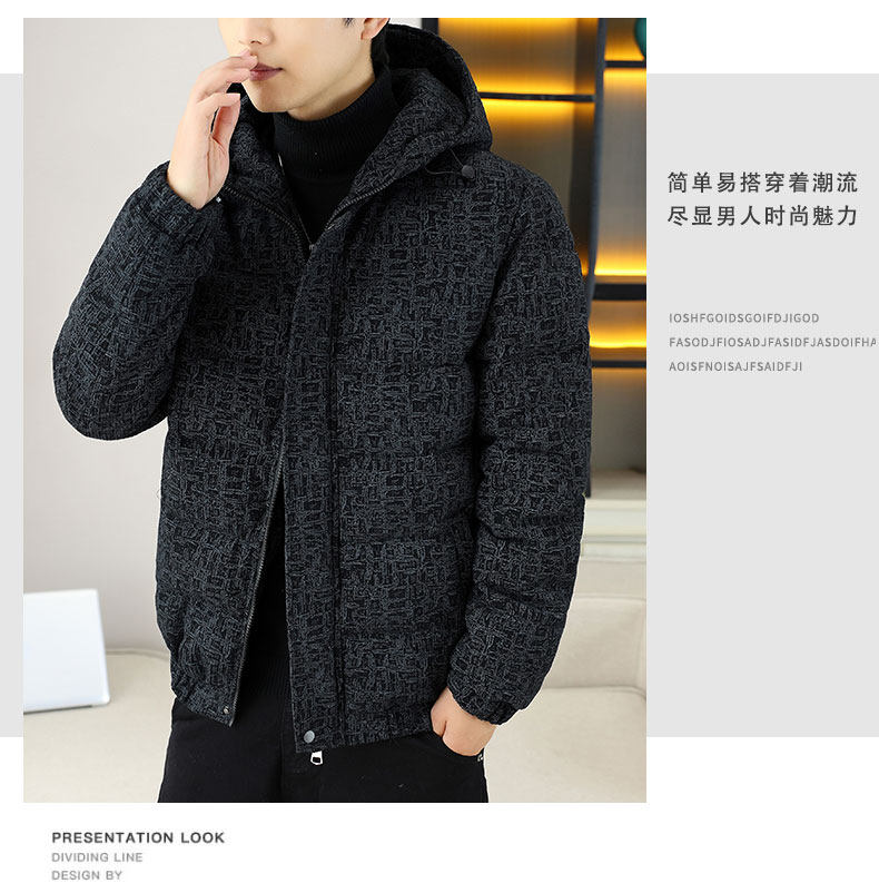 Corduroy jacket men's autumn and winter cotton thickened hooded cotton coat trendy brand handsome casual loose high-end cotton coat