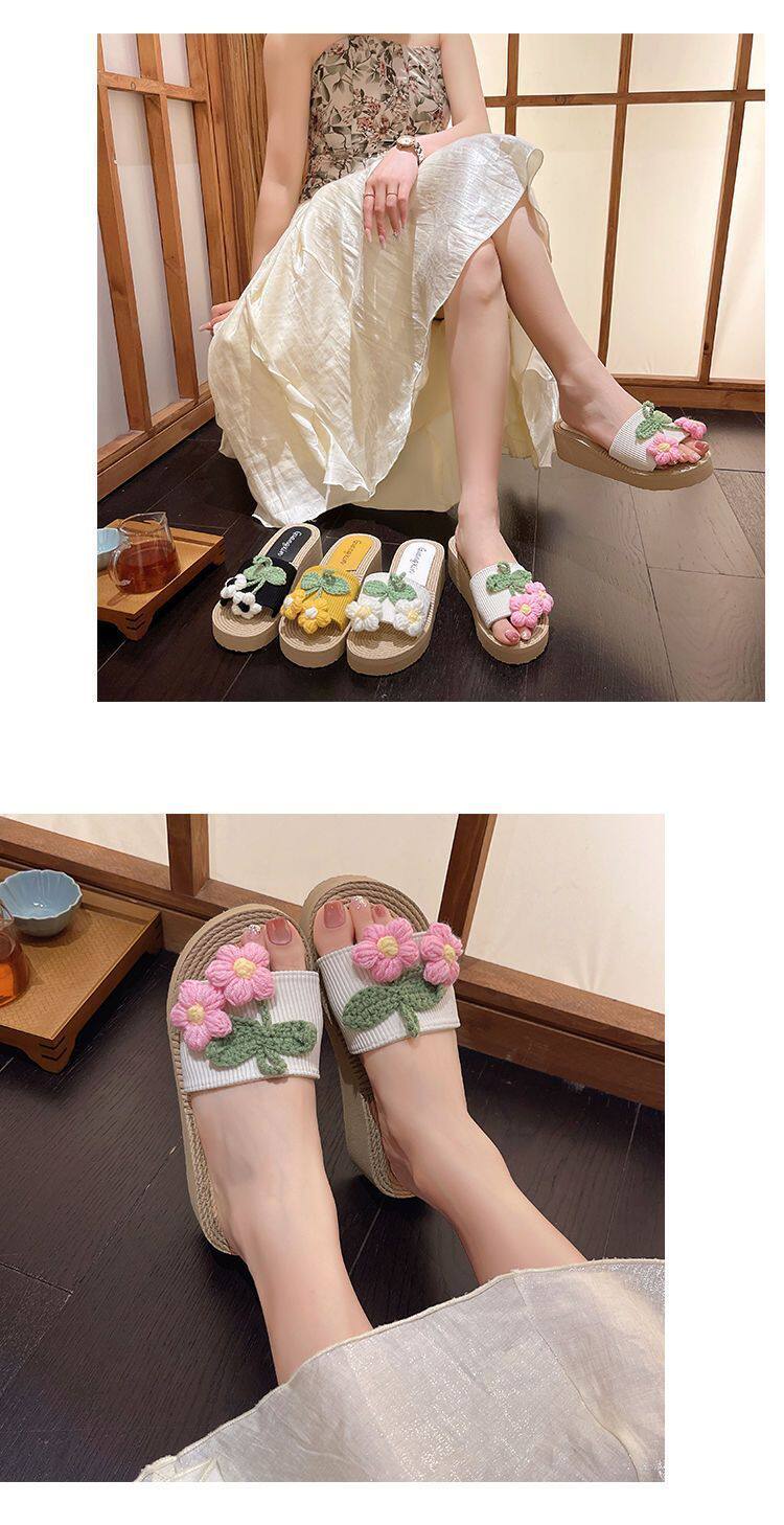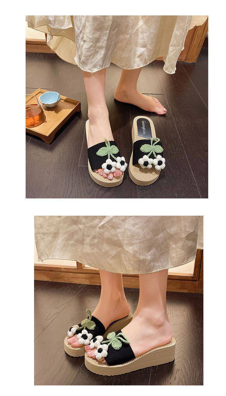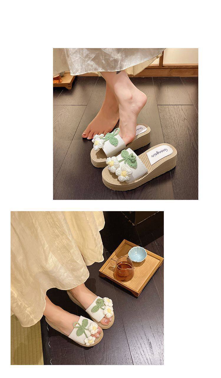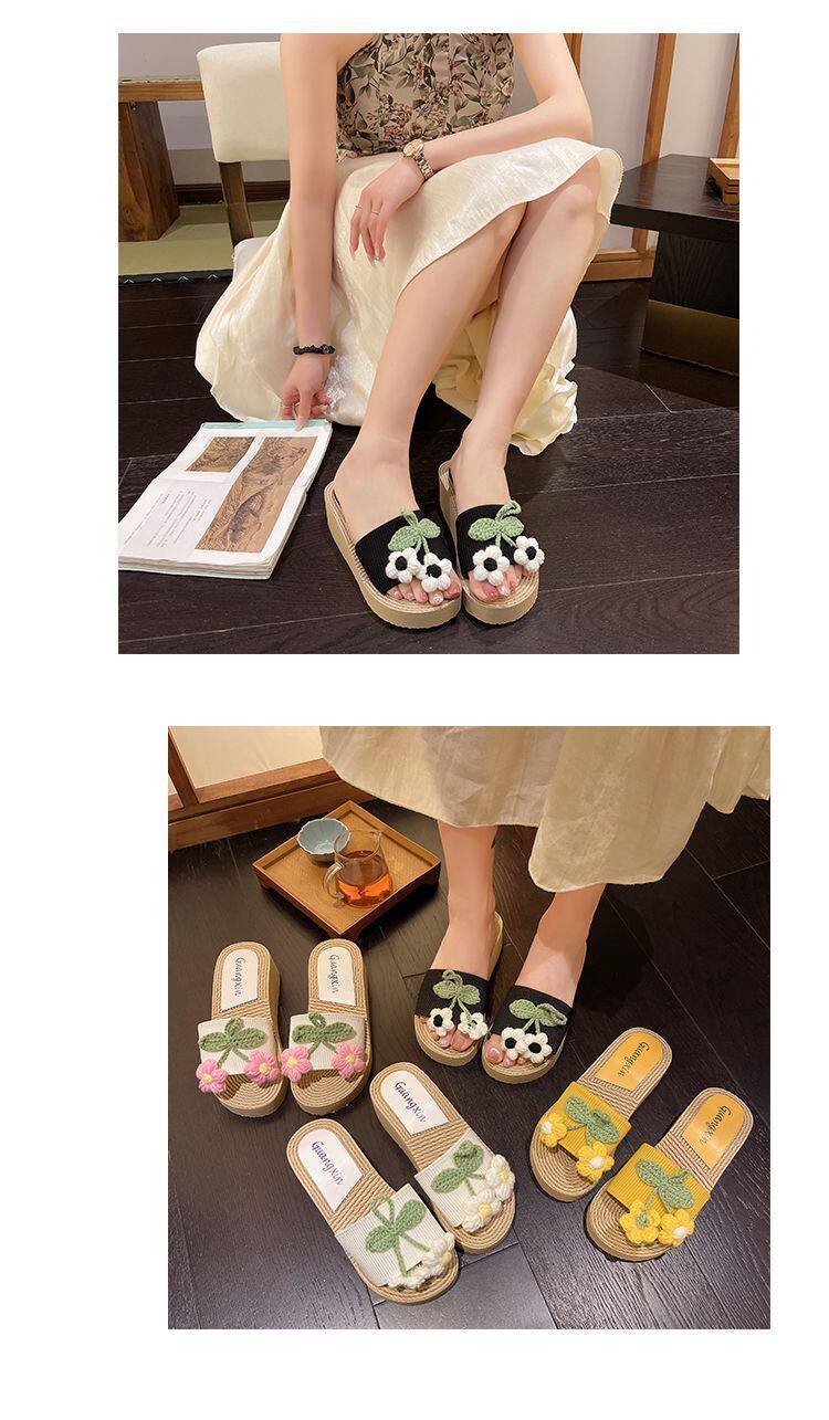 New Style Fairy-Style Wedge Flip-Flops for Women, Summer Fashion Straw Flower Thick-Soled Dai Ethnic Shoes, Beach Shoes, Sandals