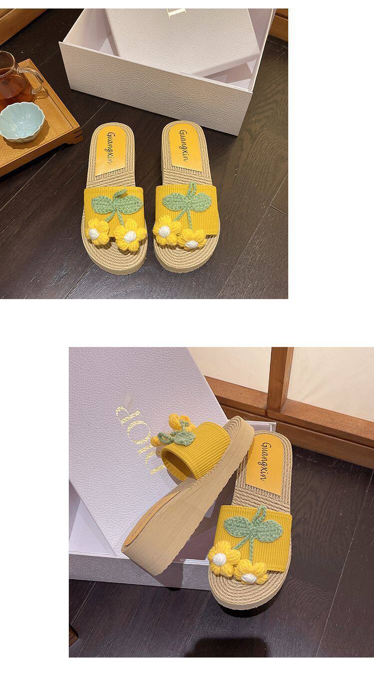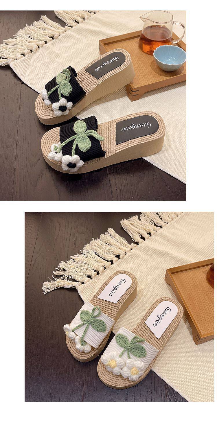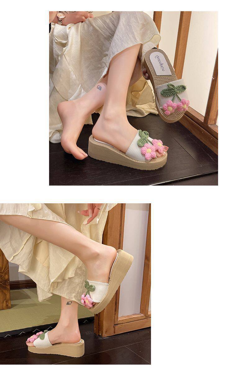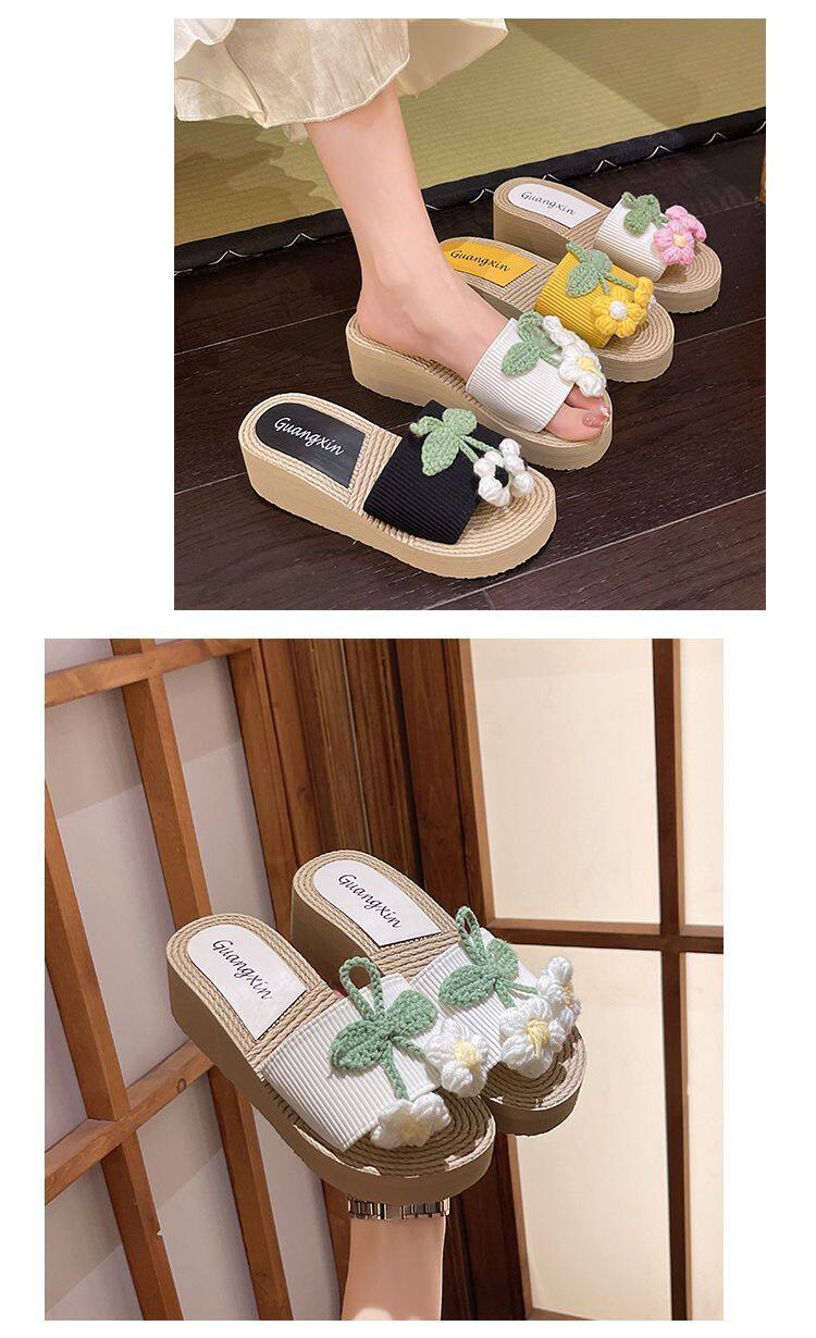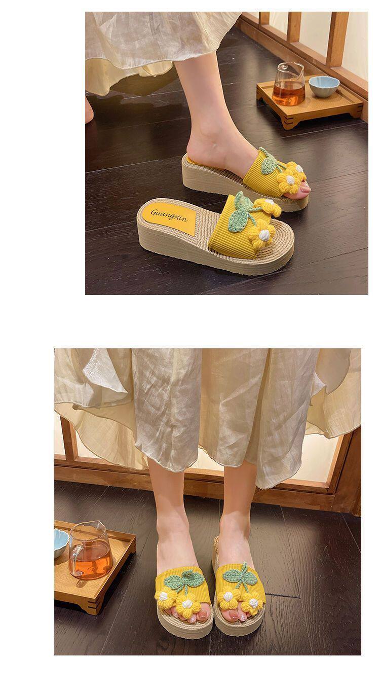 New Style Fairy-Style Wedge Flip-Flops for Women, Summer Fashion Straw Flower Thick-Soled Dai Ethnic Shoes, Beach Shoes, Sandals