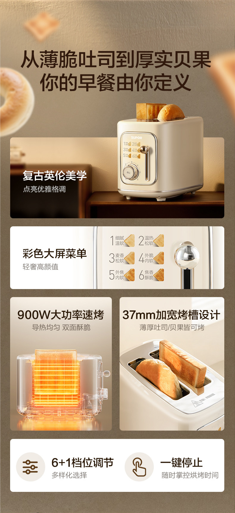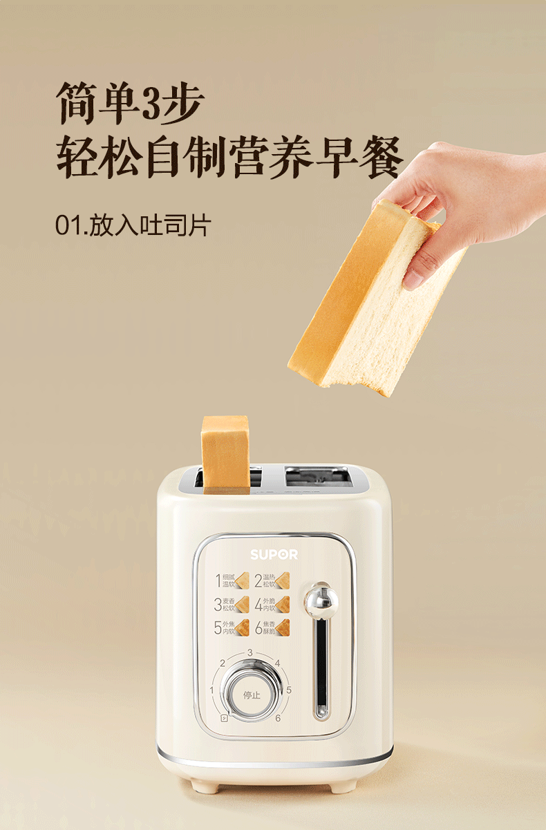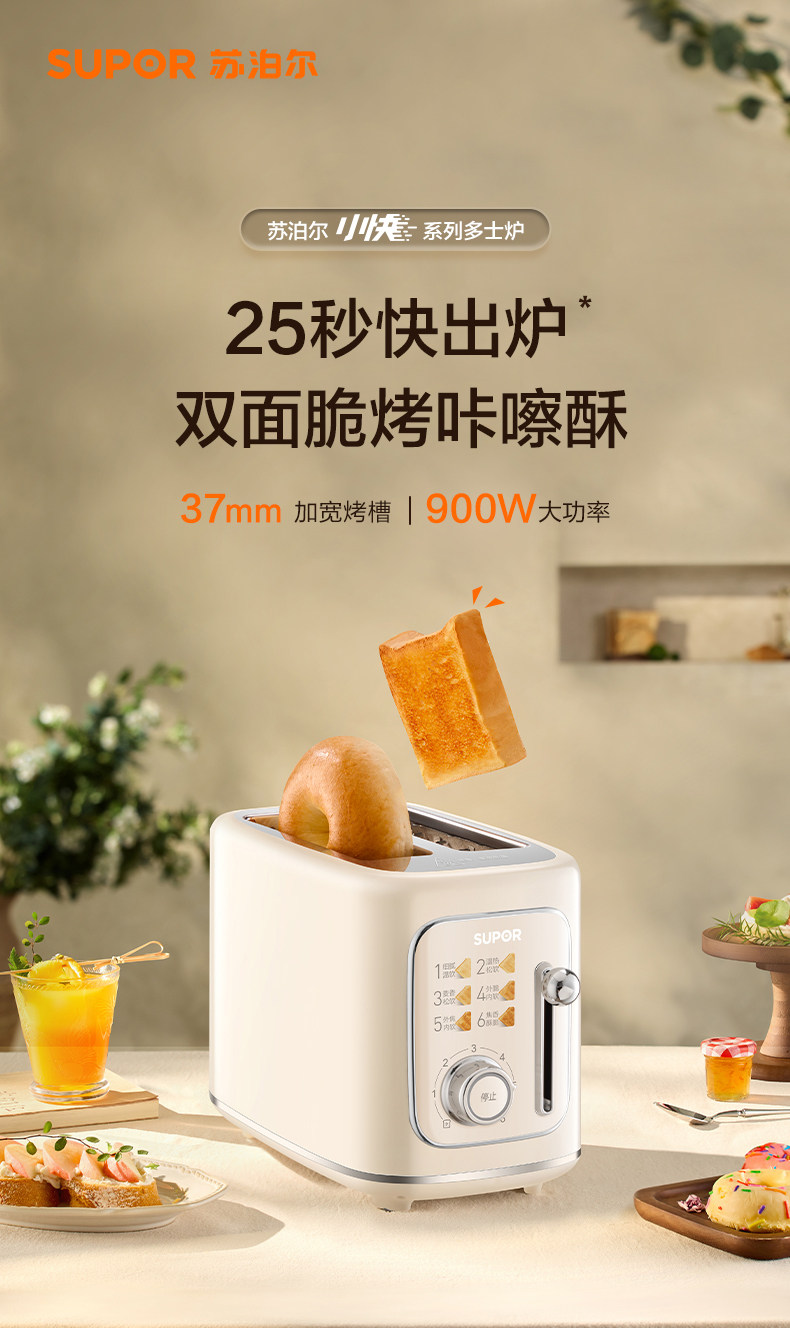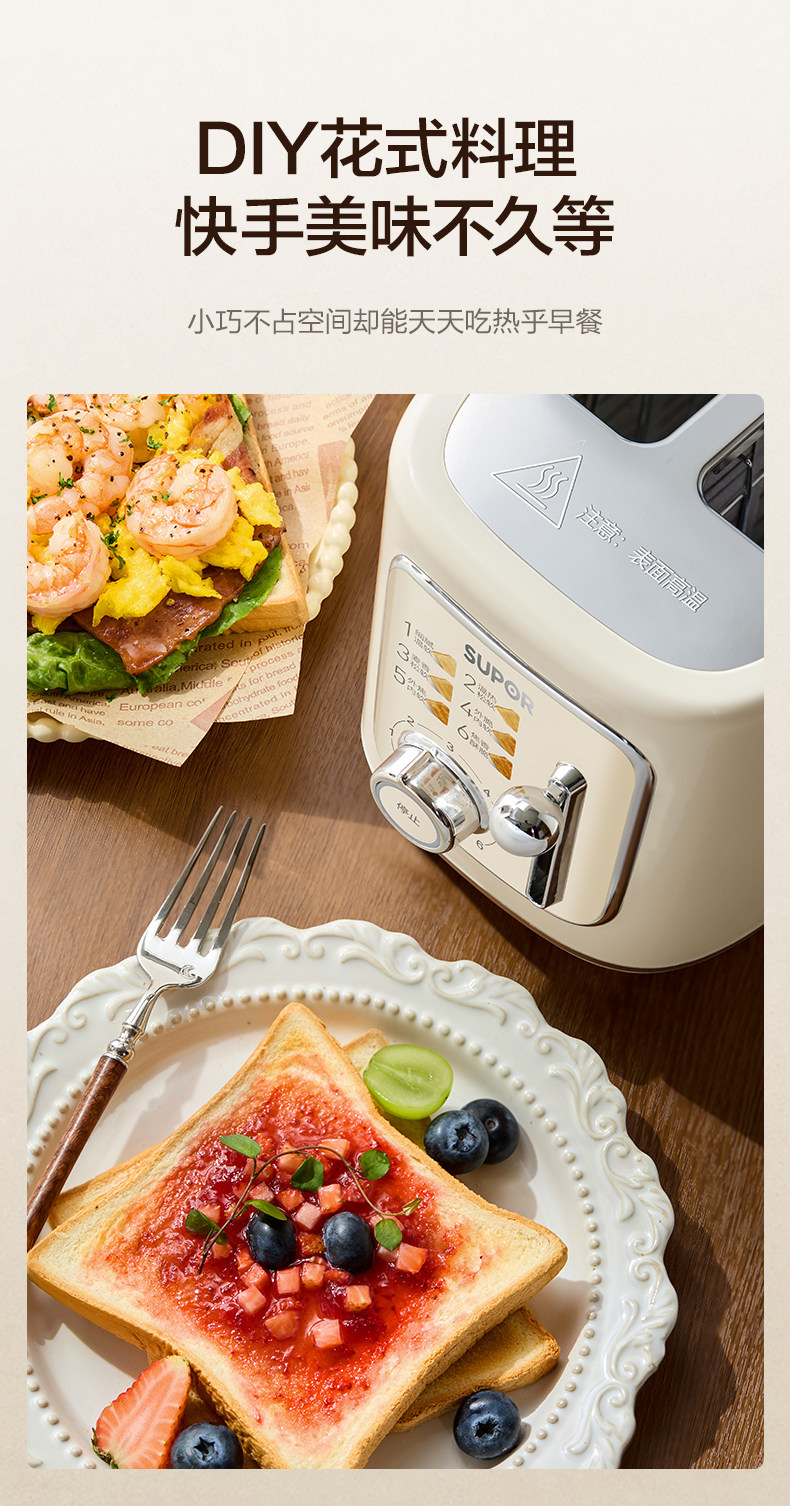 Supor Toaster Breakfast Machine, Bread Toasting Machine, Household Hot-Pressed Sandwich Maker, Multi-Functional Small Toaster