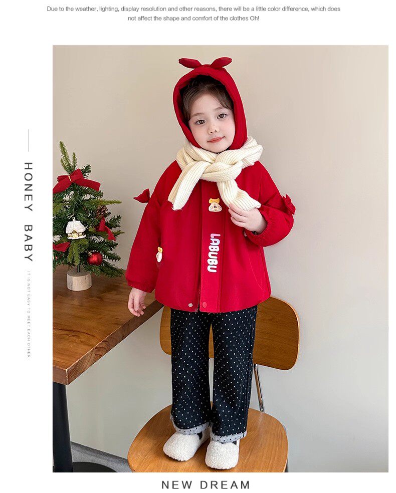 German Razt Brand Store Girls' Fleece-Lined Jacket Autumn and Winter 2025 New Cartoon Thickened Cotton Coat Korean Style Winter Wear