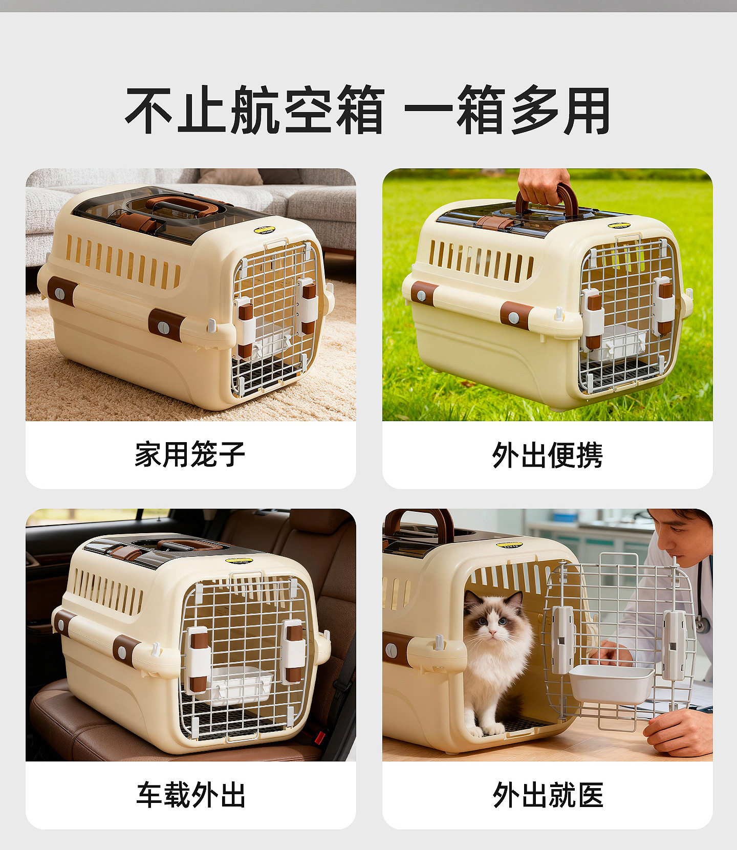 Pet Travel Crate for Cats and Small to Medium-Sized Dogs, Portable Transport Crate, Cat and Dog Cage, Ventilated, Anti-Stress, Car-Mounted Crate