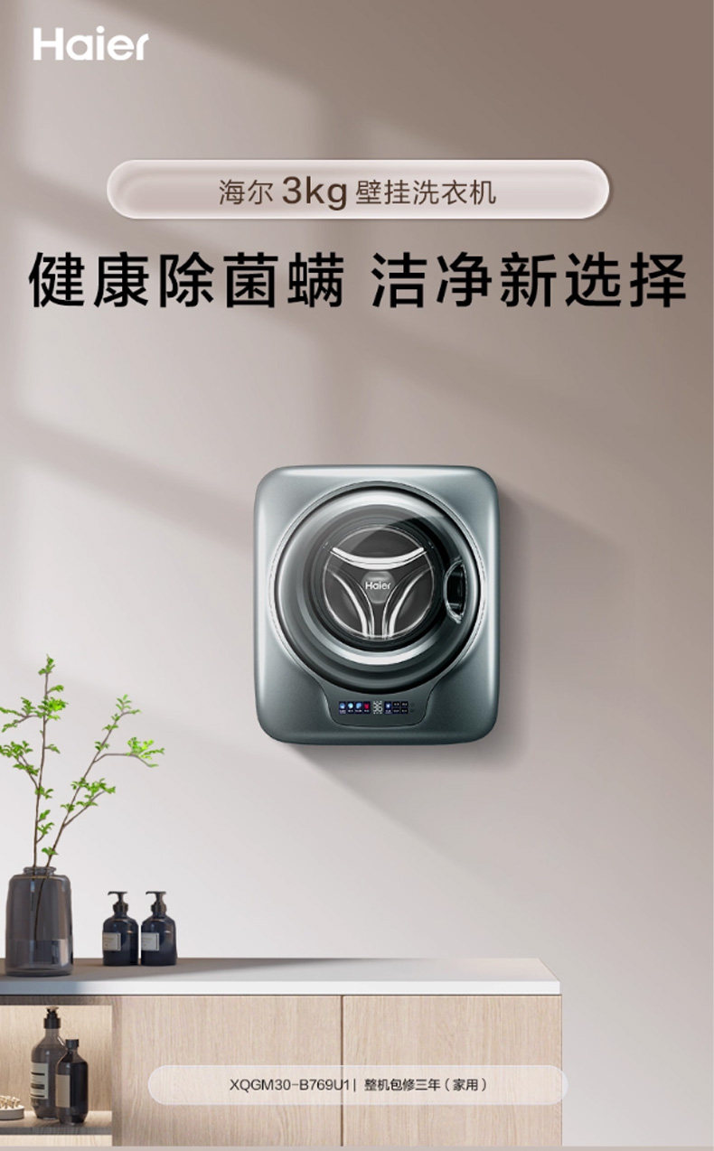 [Anti-Fall] Haier Lazy Wall-Mounted Small Sterilizing and Mite-Removing 3kg Baby and Children's Underwear Washing Machine 769