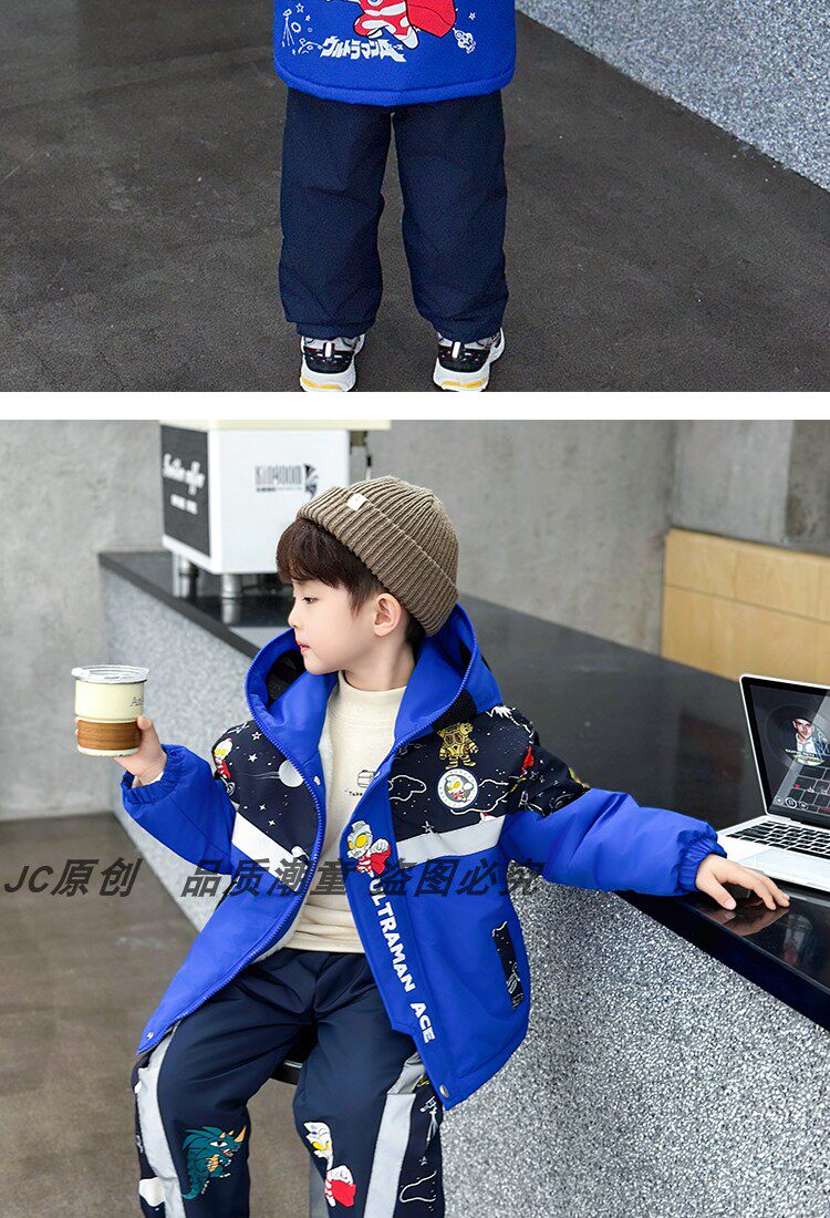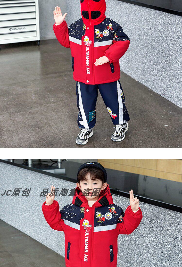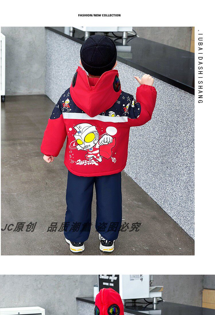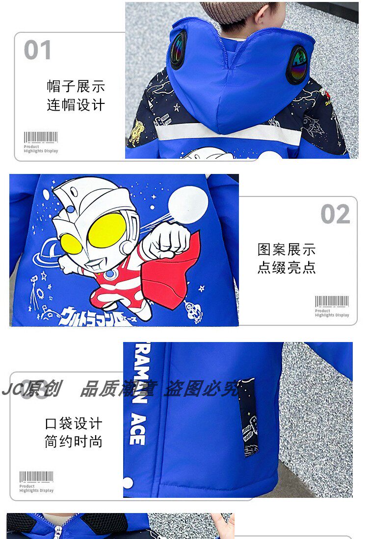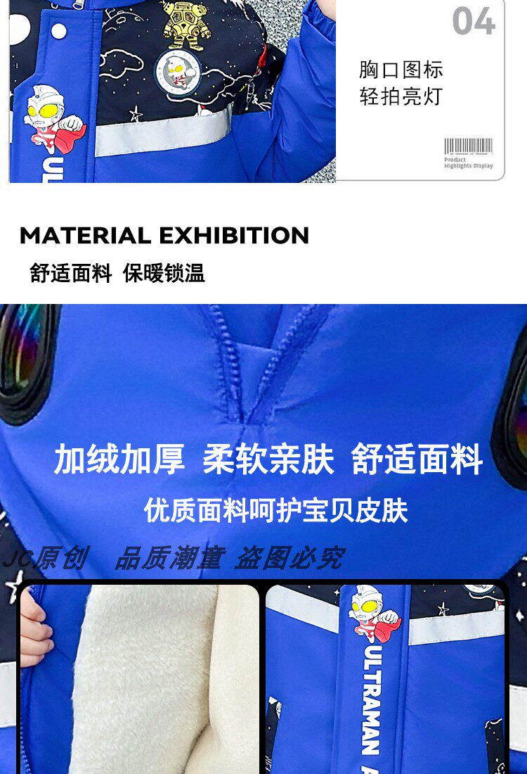 Ultraman Children's Winter Warm Suit New Style Boys' Fleece Parka Light-Up Hooded Jacket Boys' Winter Clothing