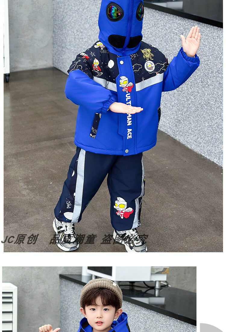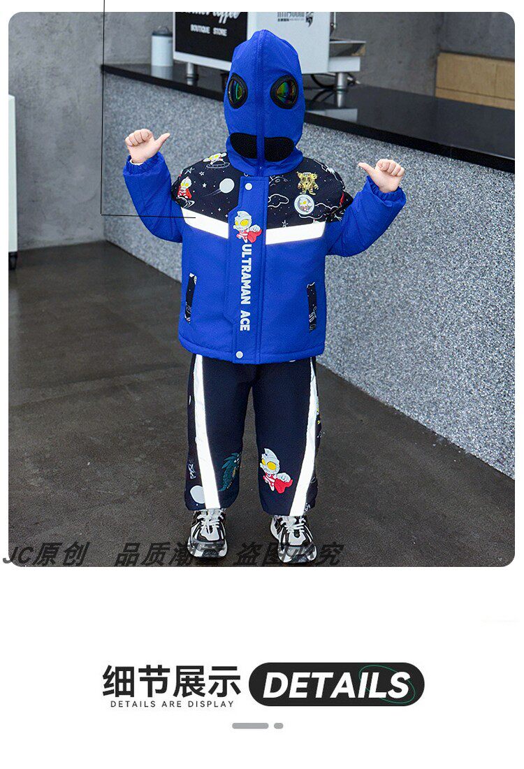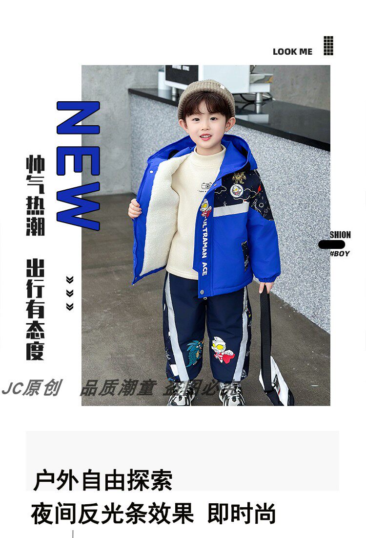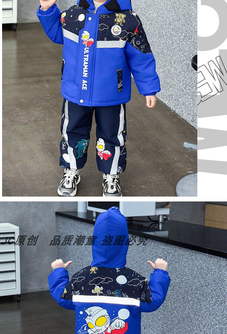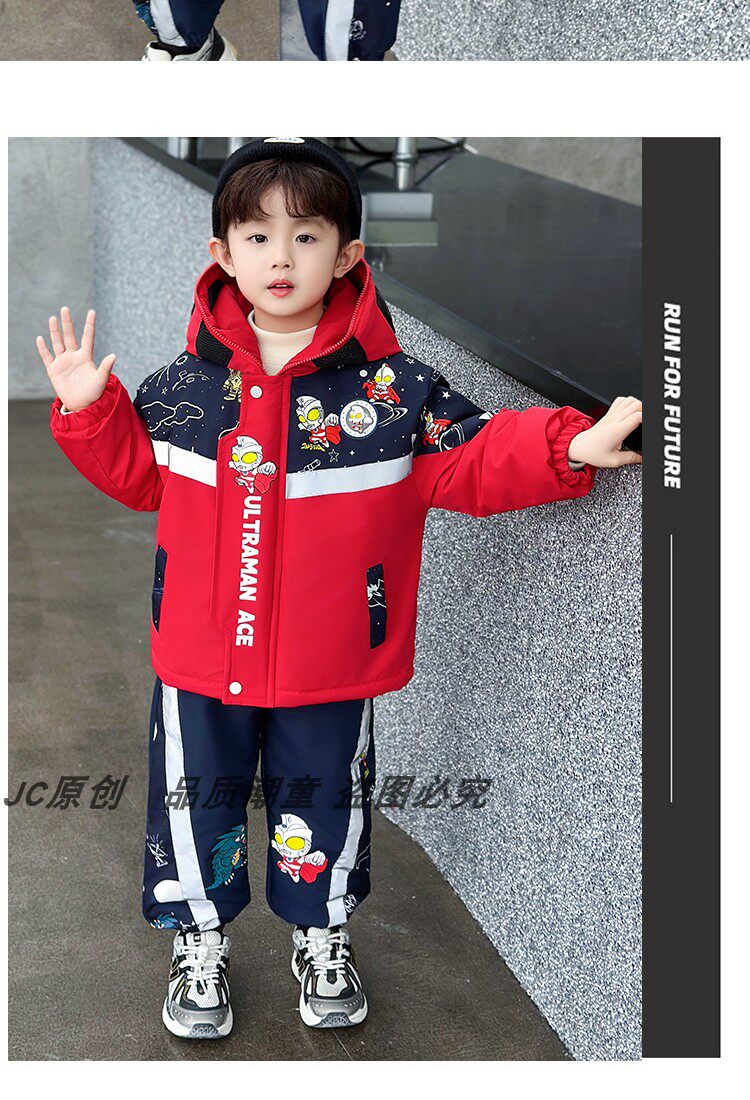 Ultraman Children's Winter Warm Suit New Style Boys' Fleece Parka Light-Up Hooded Jacket Boys' Winter Clothing