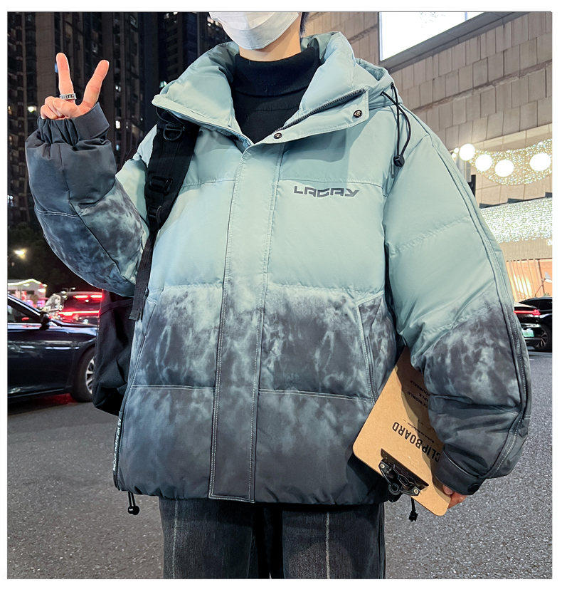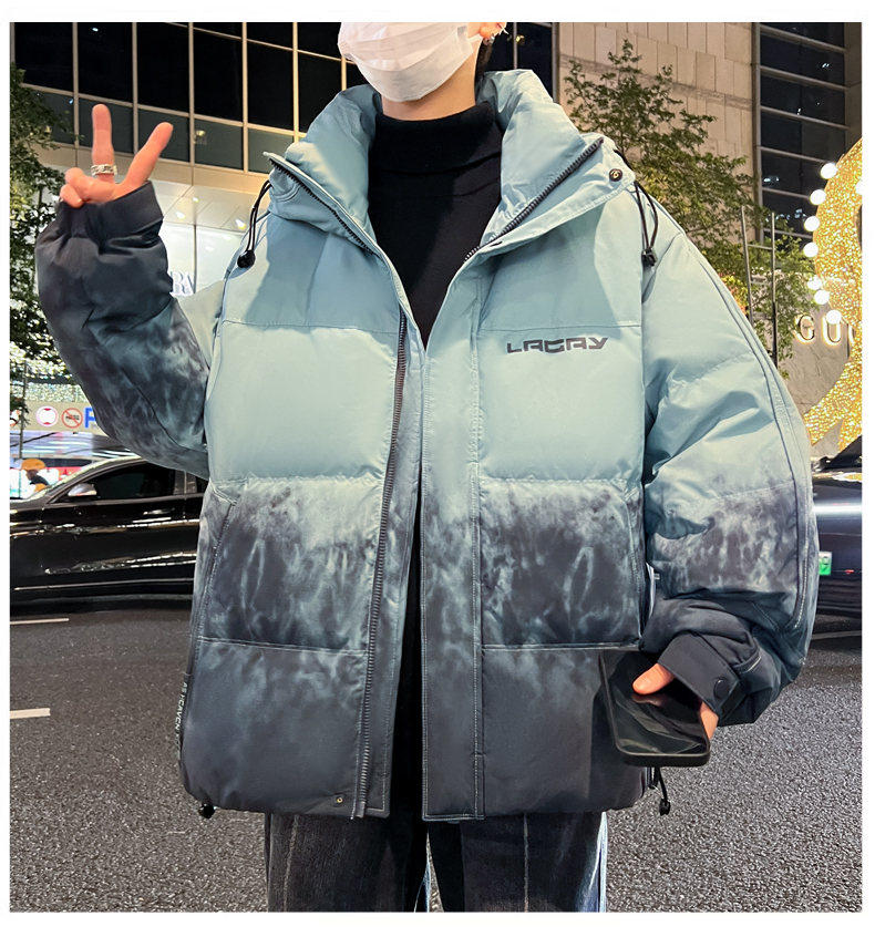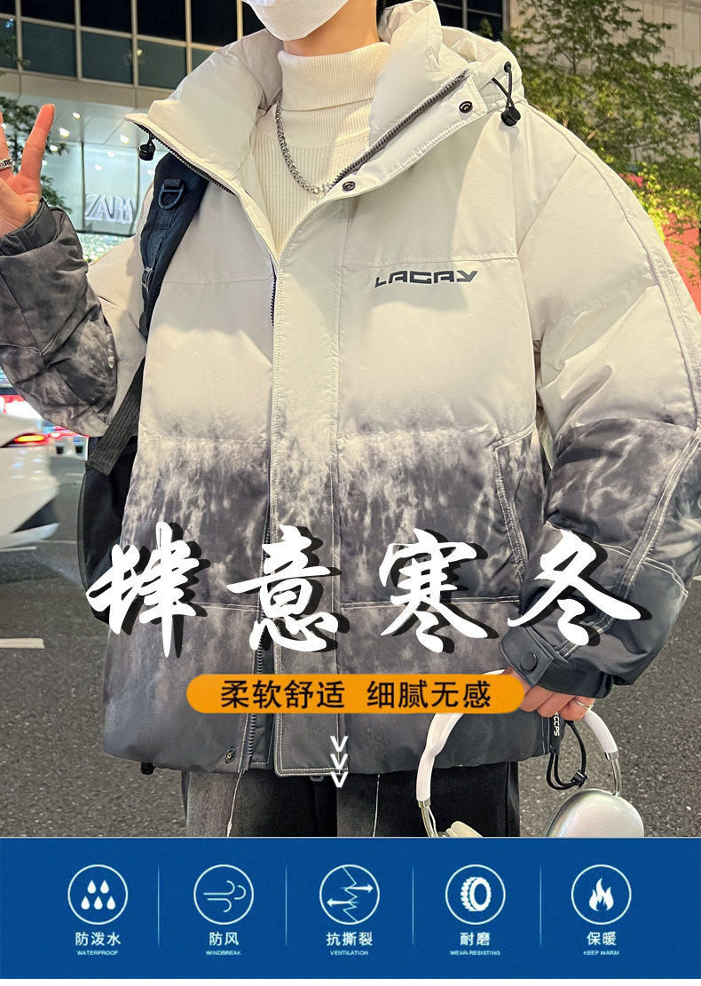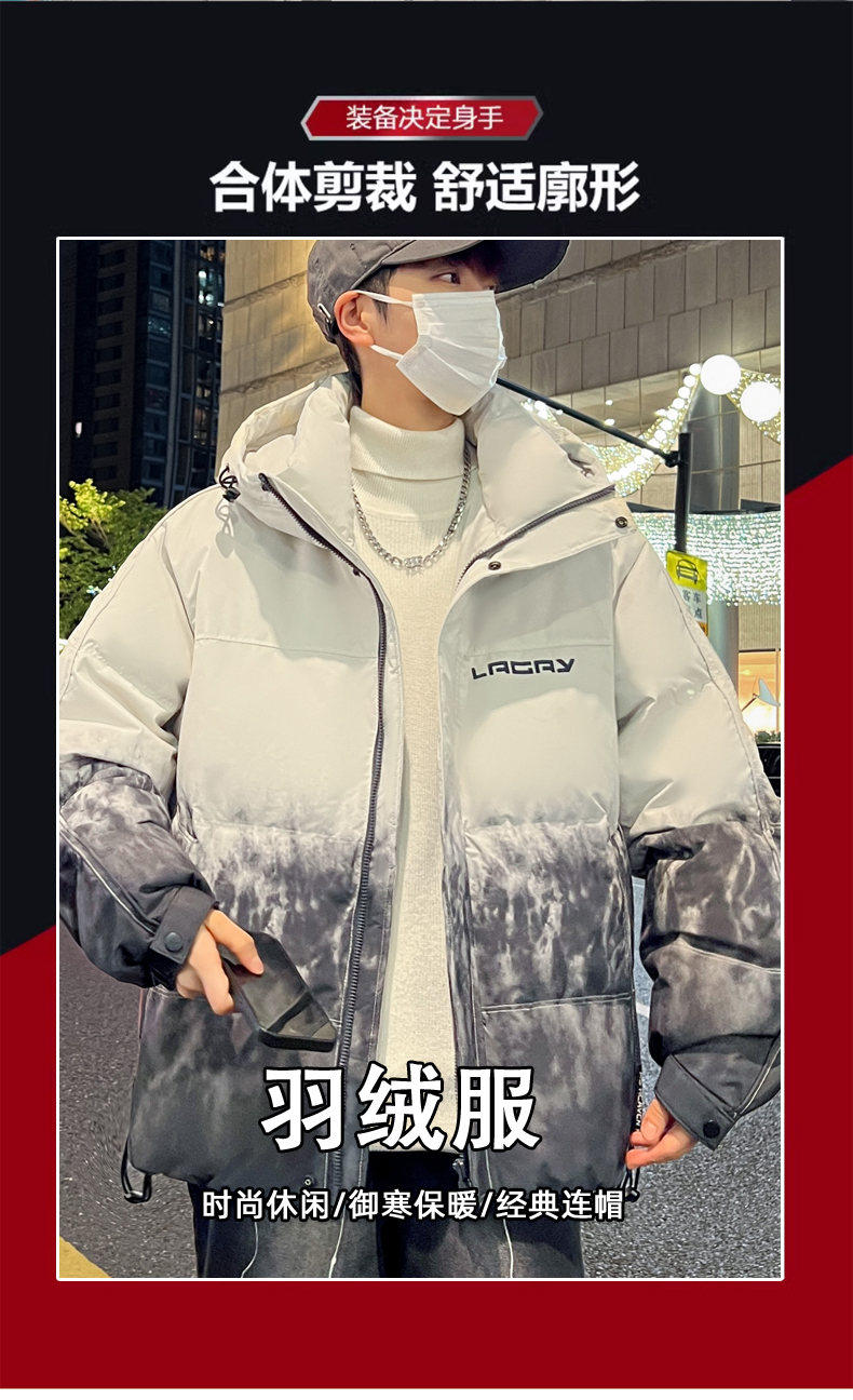 2025 Winter Hooded Gradient Short White Duck Down Down Jacket for Male Teenagers and Students Thickened Warm and Coldproof Jacket