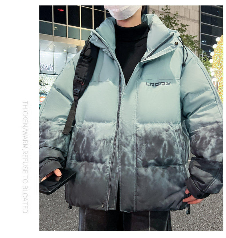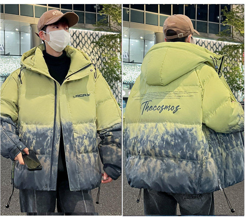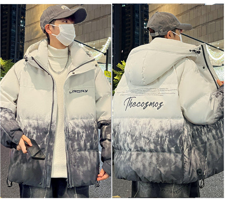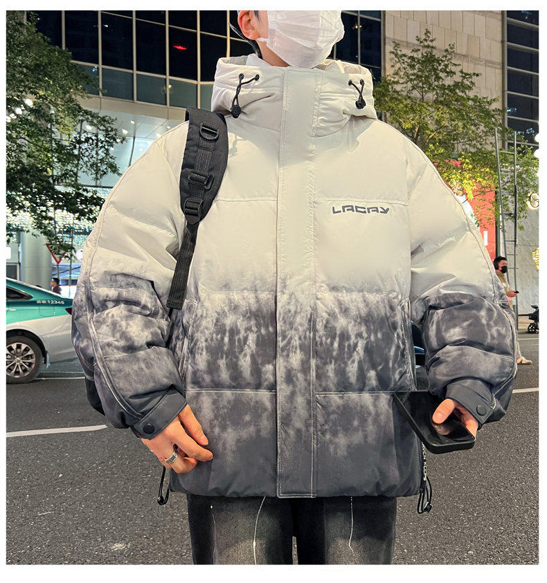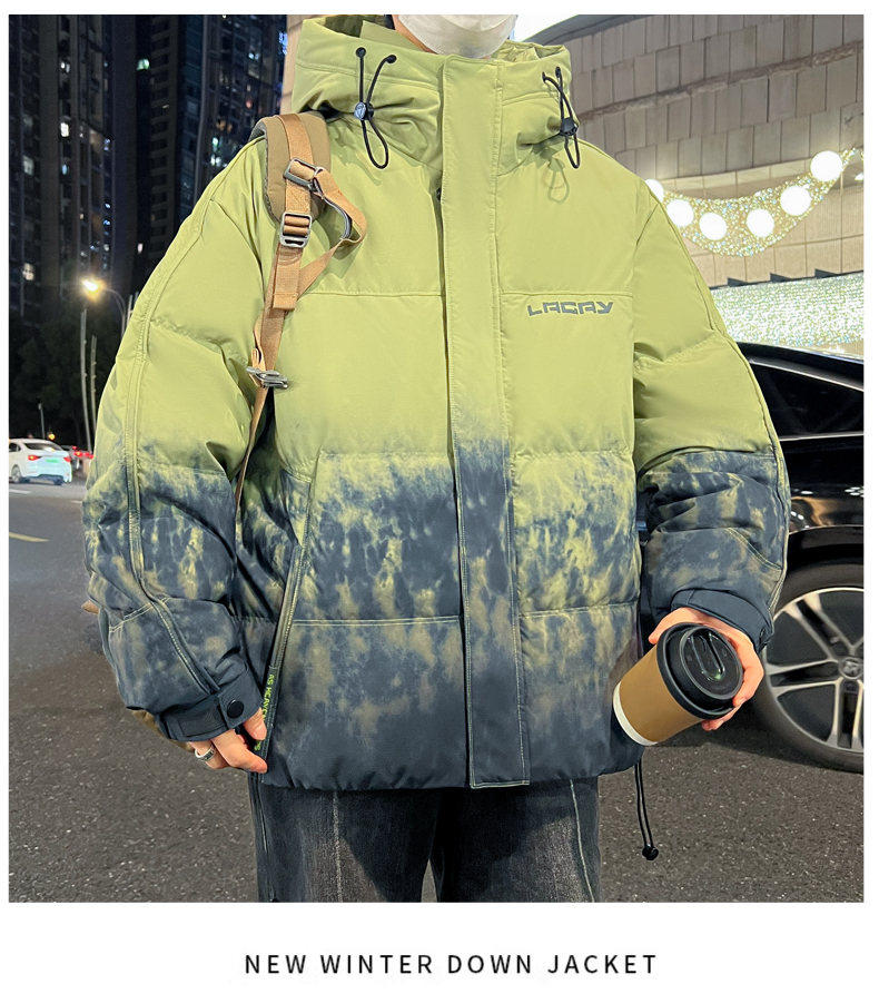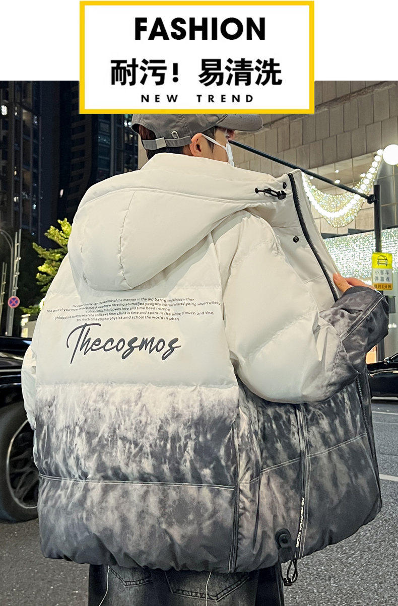 2025 Winter Hooded Gradient Short White Duck Down Down Jacket for Male Teenagers and Students Thickened Warm and Coldproof Jacket