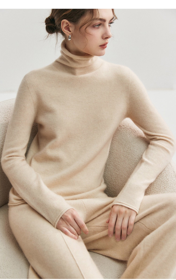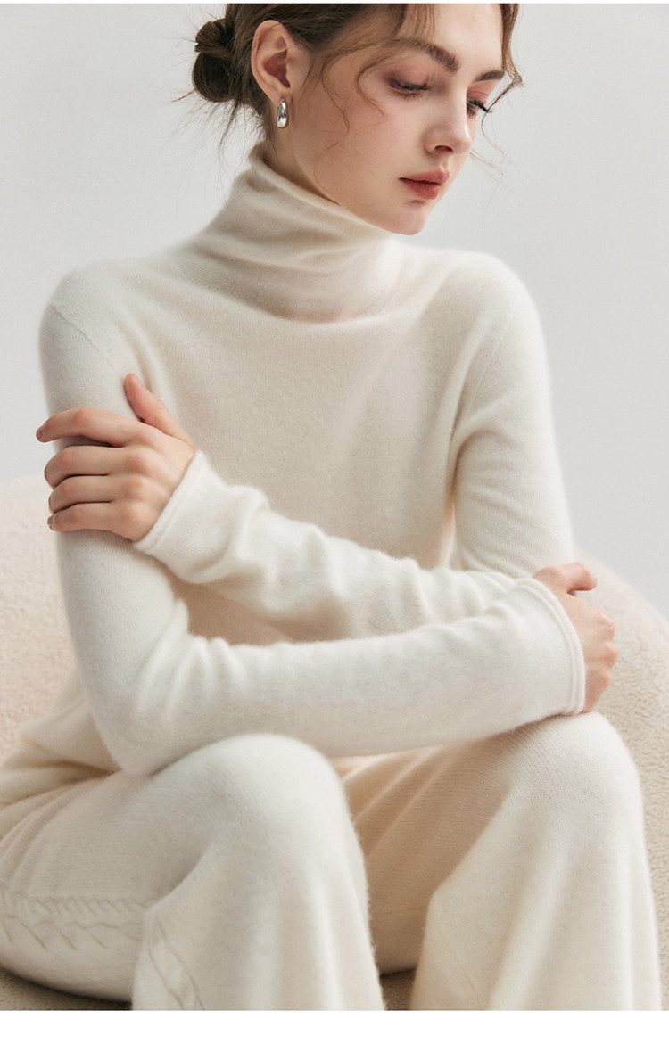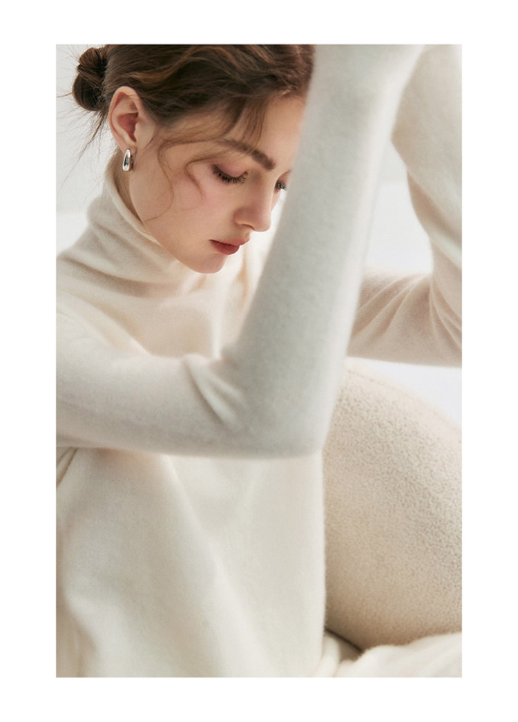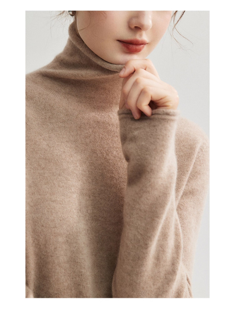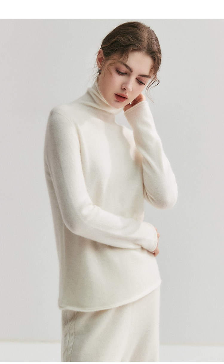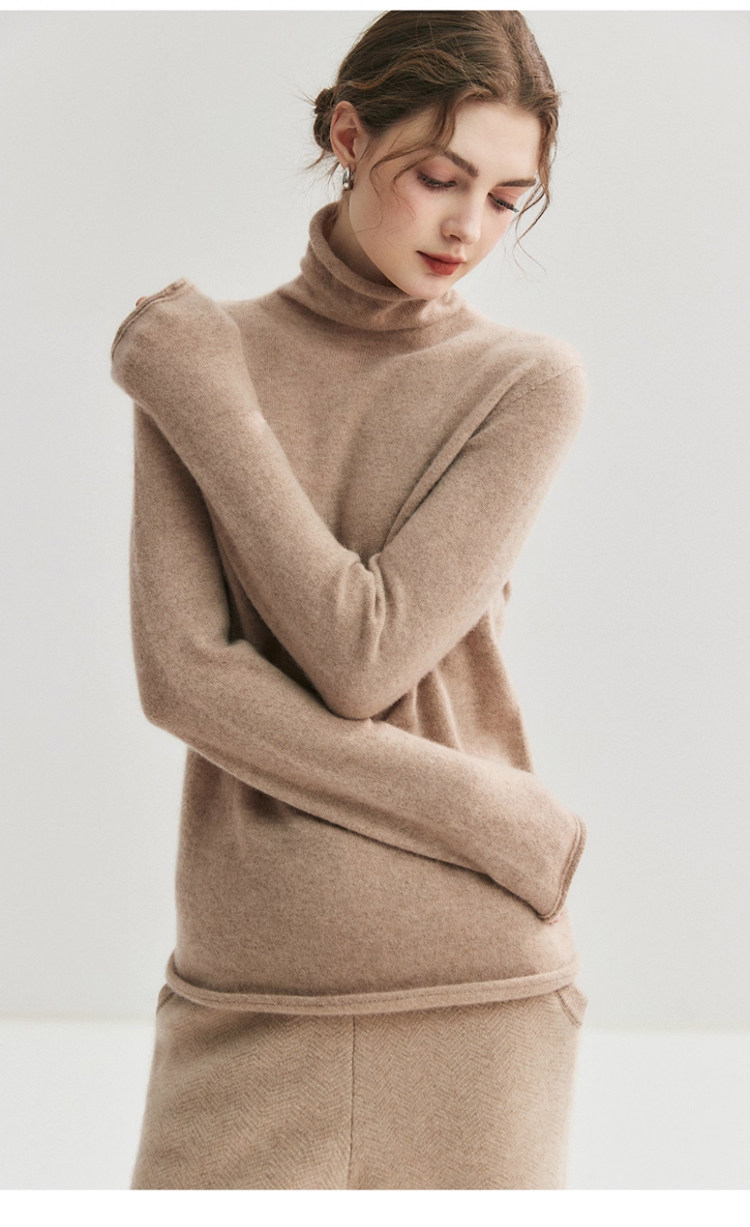 High-End Style Pile-Neck Knit Sweater for Women, Autumn and Winter French-Style Rolled-Edge Lazy Inner Layer Sweater, Soft and Stylish Top