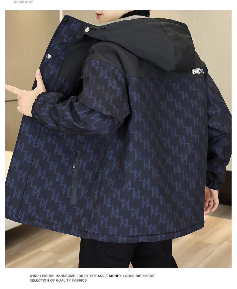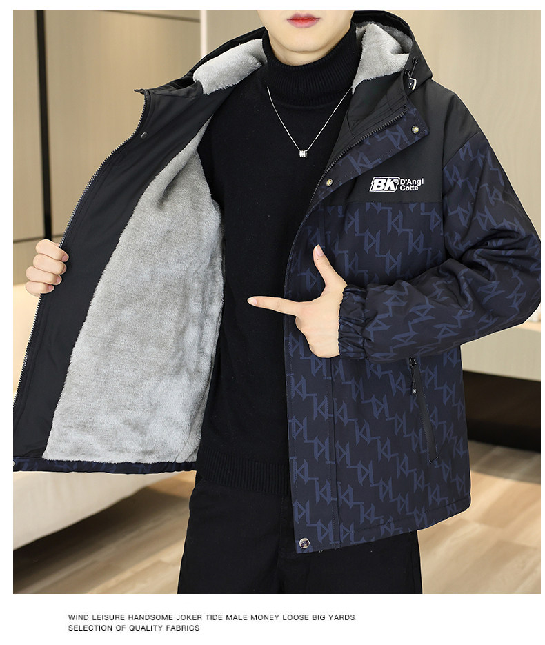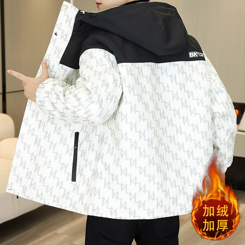 Men's Winter Jacket with Fleece Lining, Thickened, 2025 New Trendy Stylish Loose-Fitting Warm Hooded Jacket for Students