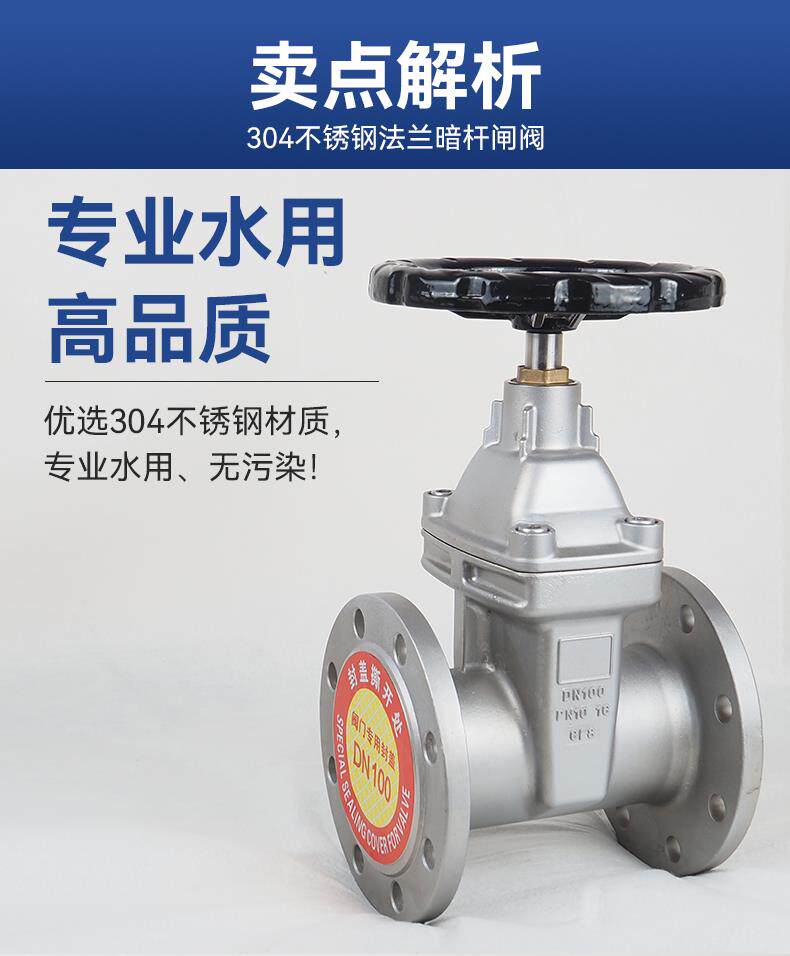 304 Stainless Steel Gate Valve with Flange, Concealed Stem, Soft Seal, Z45X-16, Elastic Seat Seal Gate Valve for Water Supply, Dn100 Dn150, with Pull Handle