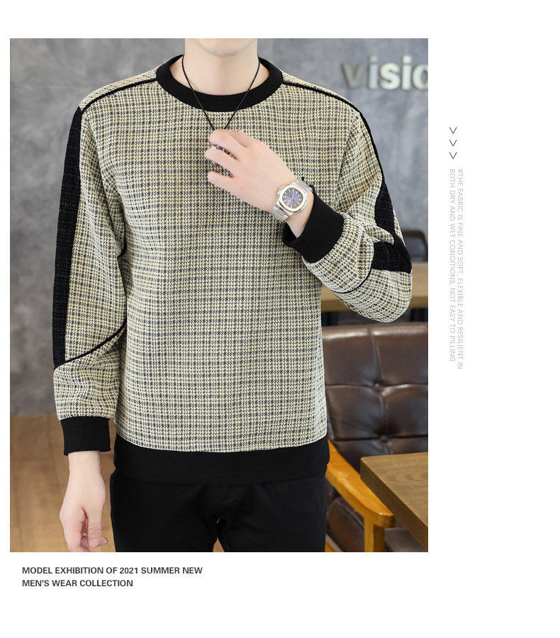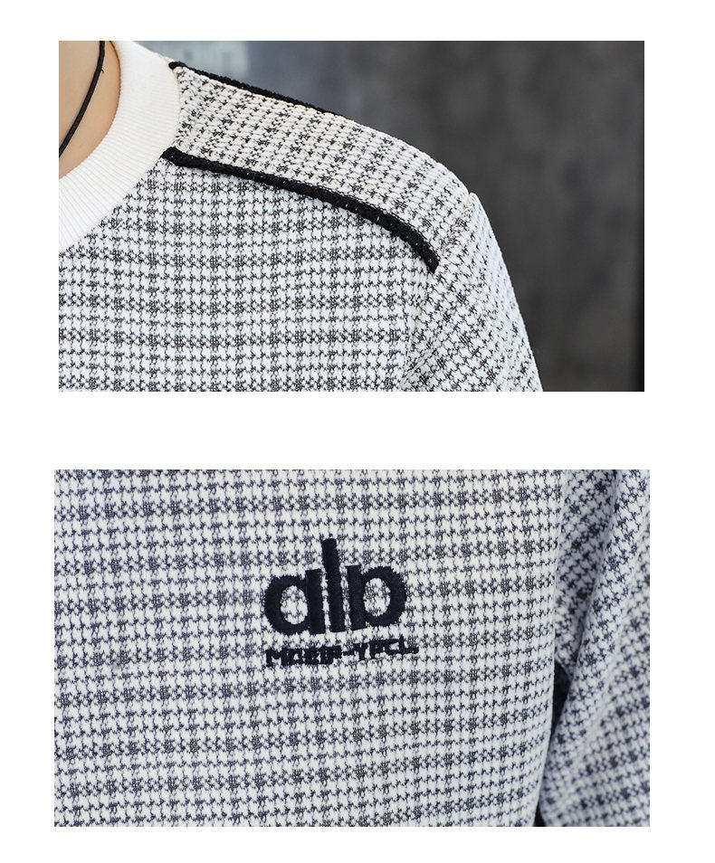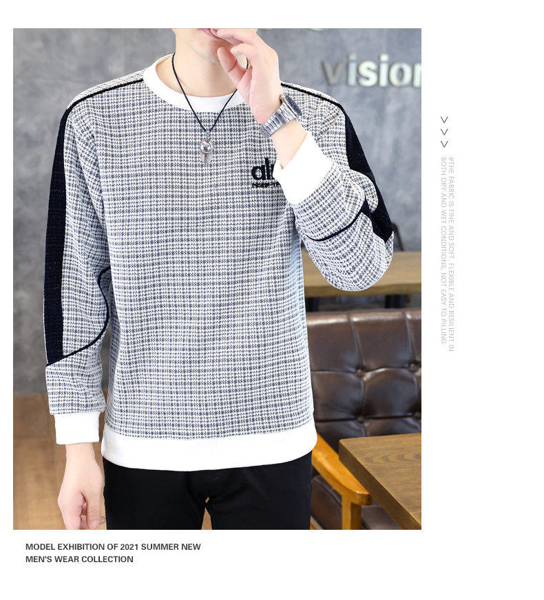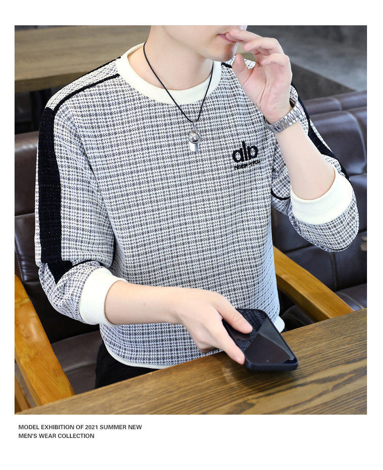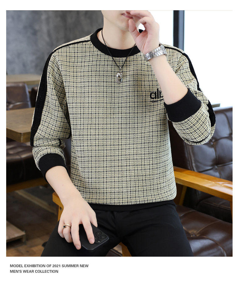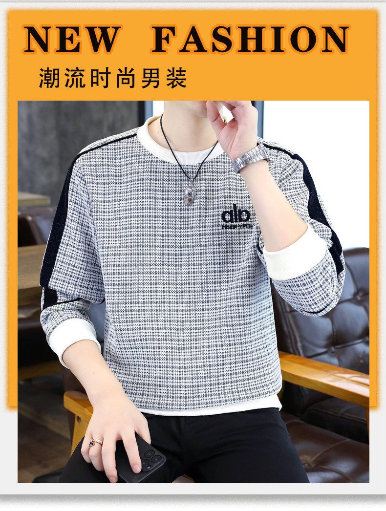 Woodpecker high quality embroidered round neck sweatshirt men's trendy casual pullover long-sleeved bottoming shirt plaid top clothes