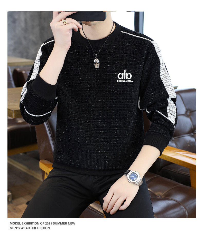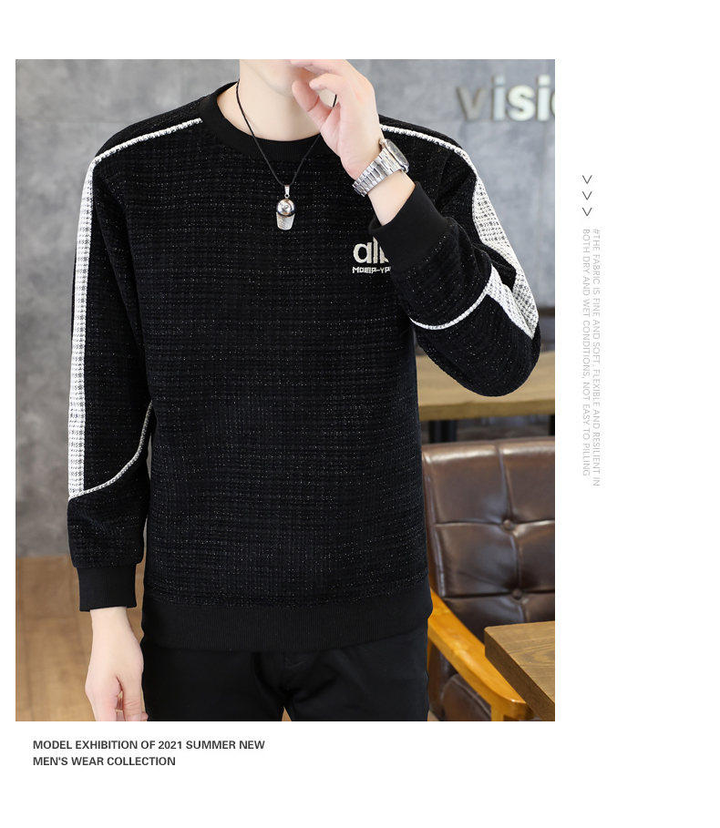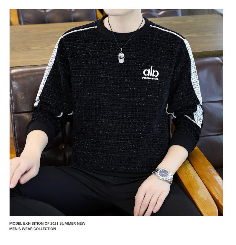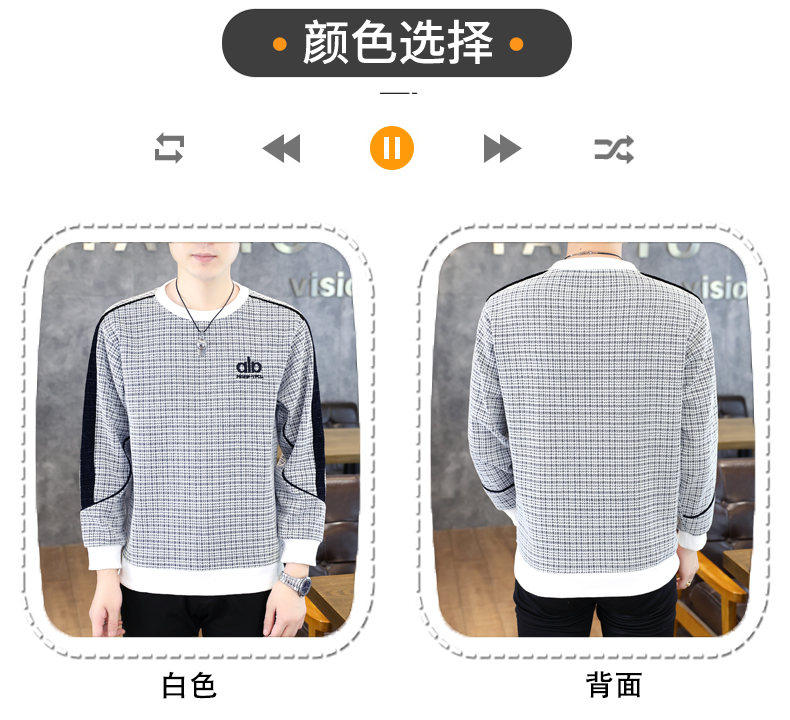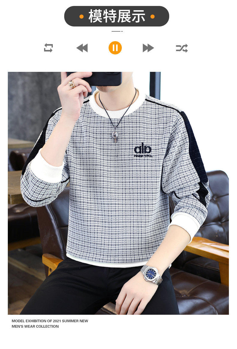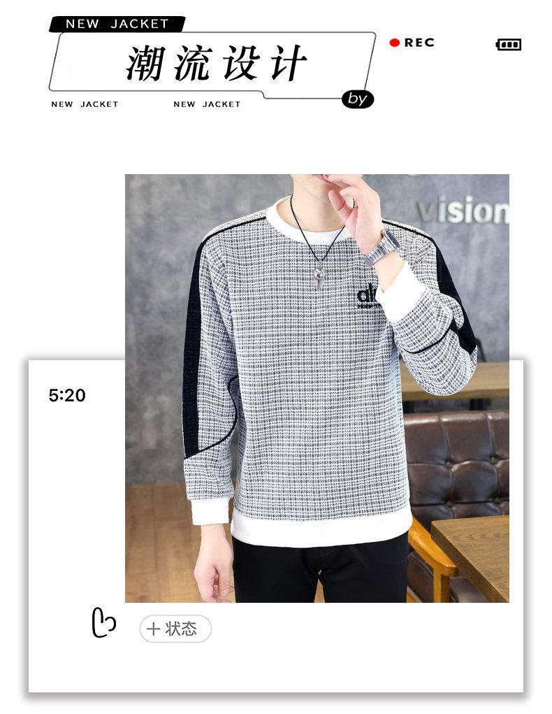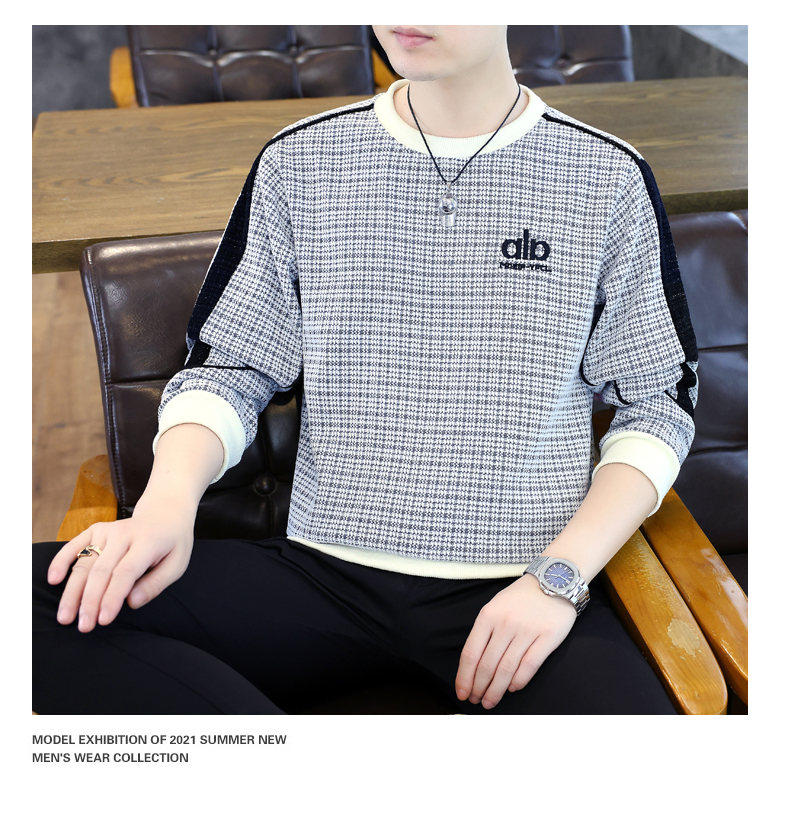 Woodpecker high quality embroidered round neck sweatshirt men's trendy casual pullover long-sleeved bottoming shirt plaid top clothes