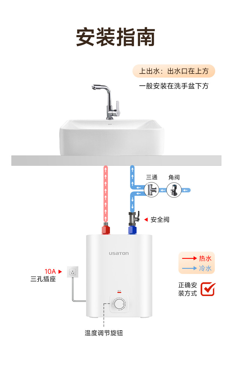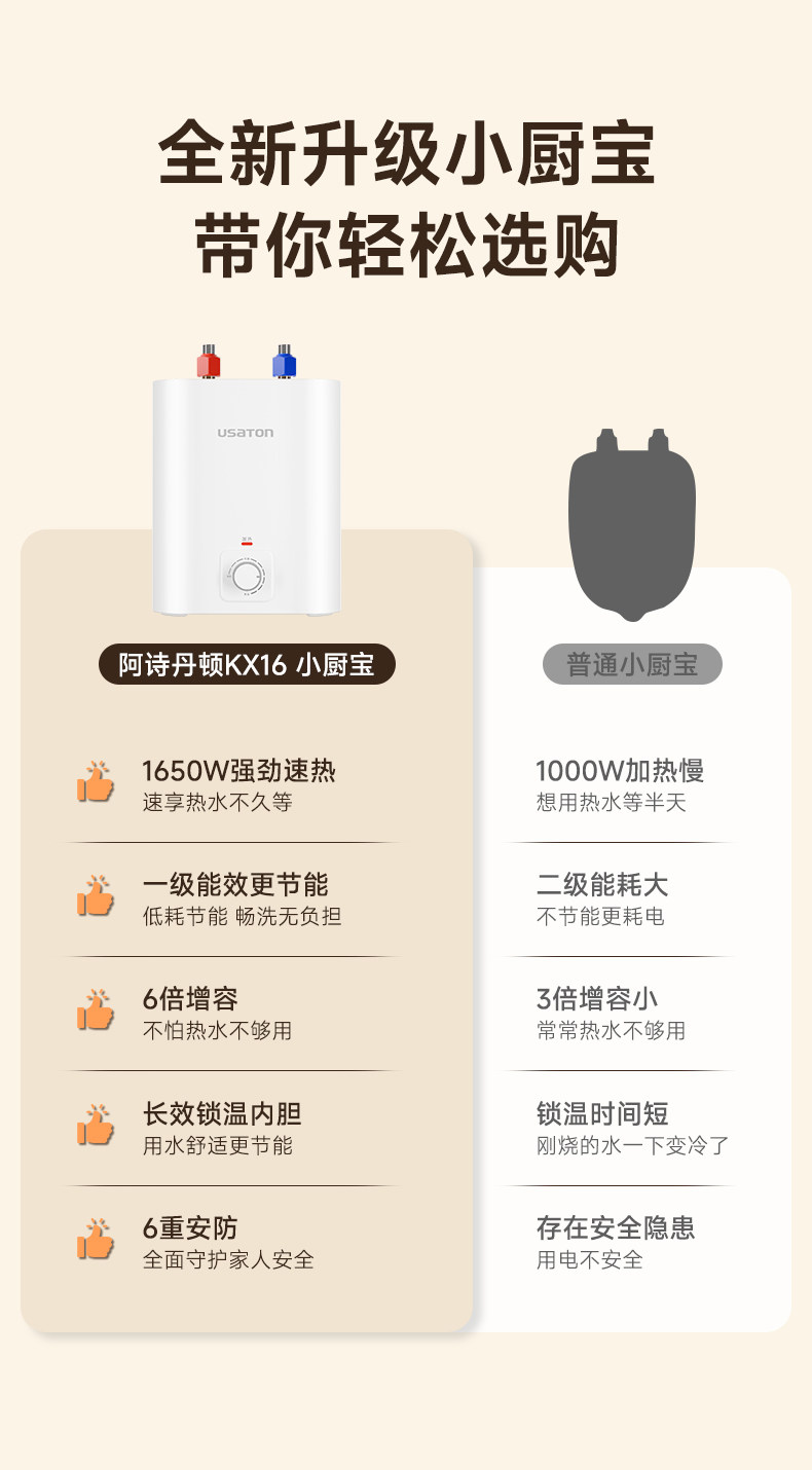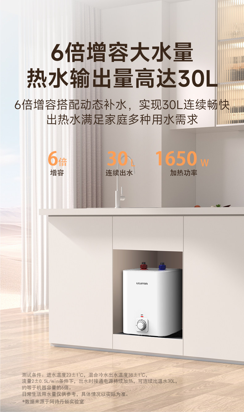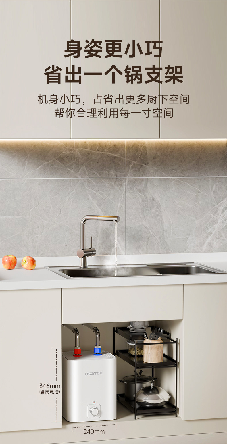 Ashington Small Kitchen Water Heater, Storage-Type, for Home Kitchen and Bathroom, Under-Sink, Small Size, First-Class Energy Efficiency
