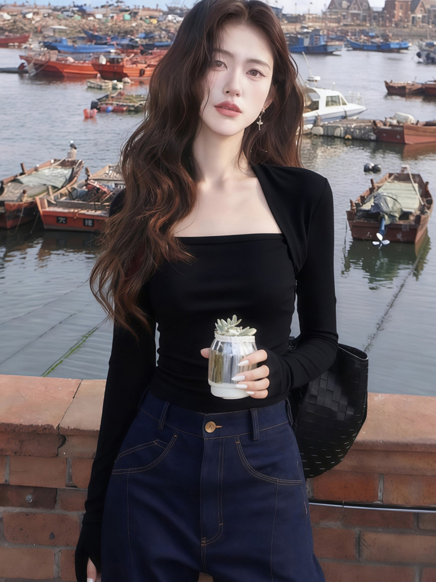 Black Square-Neck Long-Sleeved Bottoming Shirt for Women in Autumn and Winter with a Hepburn-Style Design, Tight-Fitting, Slimming, Simple Inner Wear, French-Style Top