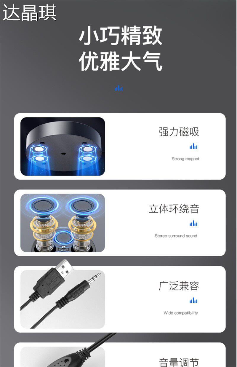 Powerful Magnetic Computer Speakers Desktop Subwoofer 20-Core High-Volume Speakers USB Cable Home Small Speakers Bed Speaker Car Speaker