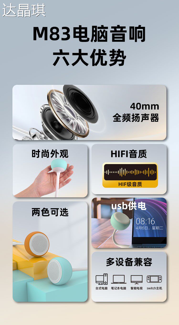 Weile Desktop Computer Small Speaker Wireless USB Plug-In Mini Speaker Laptop Speaker Bed Cover Pull-Out Cart