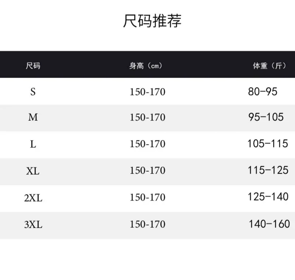 China (cm) 160-165/84-86 165-170 / 88-90 167-172 / 92-96 168-173 / 98-102 170-176 / 106-110