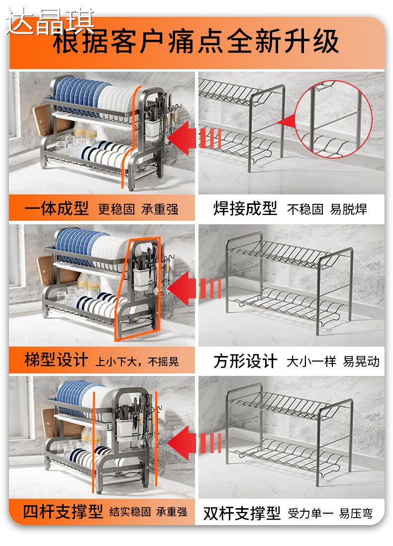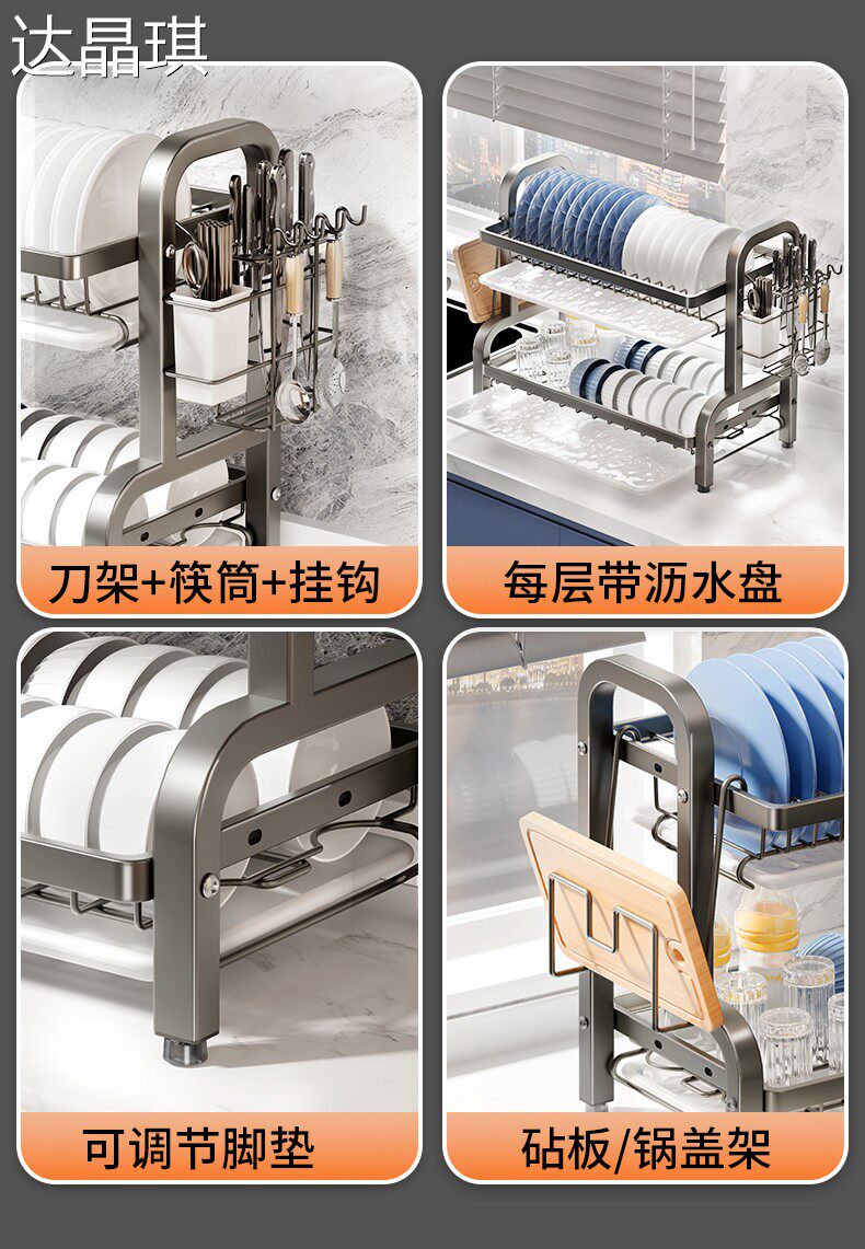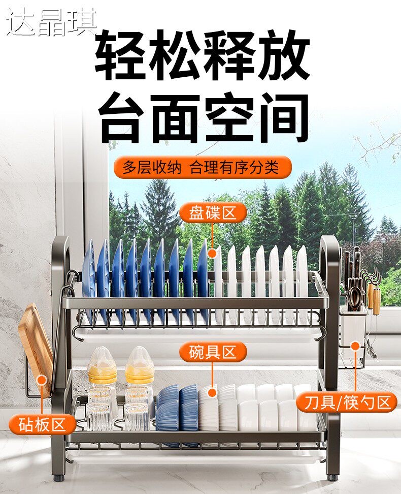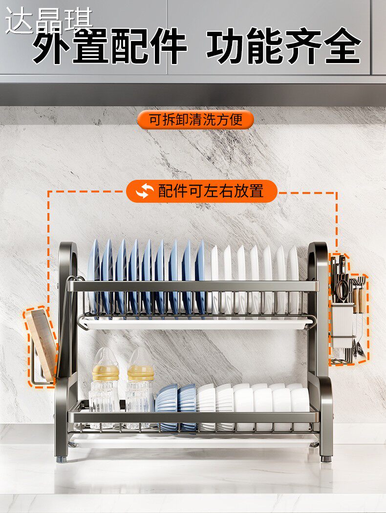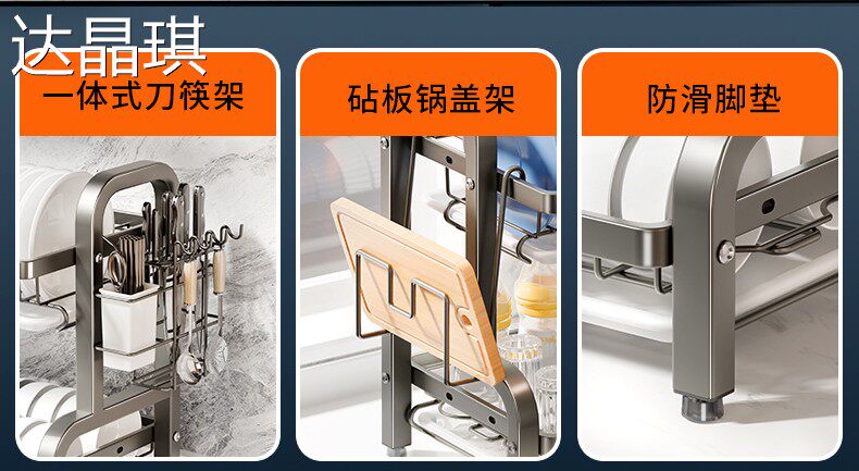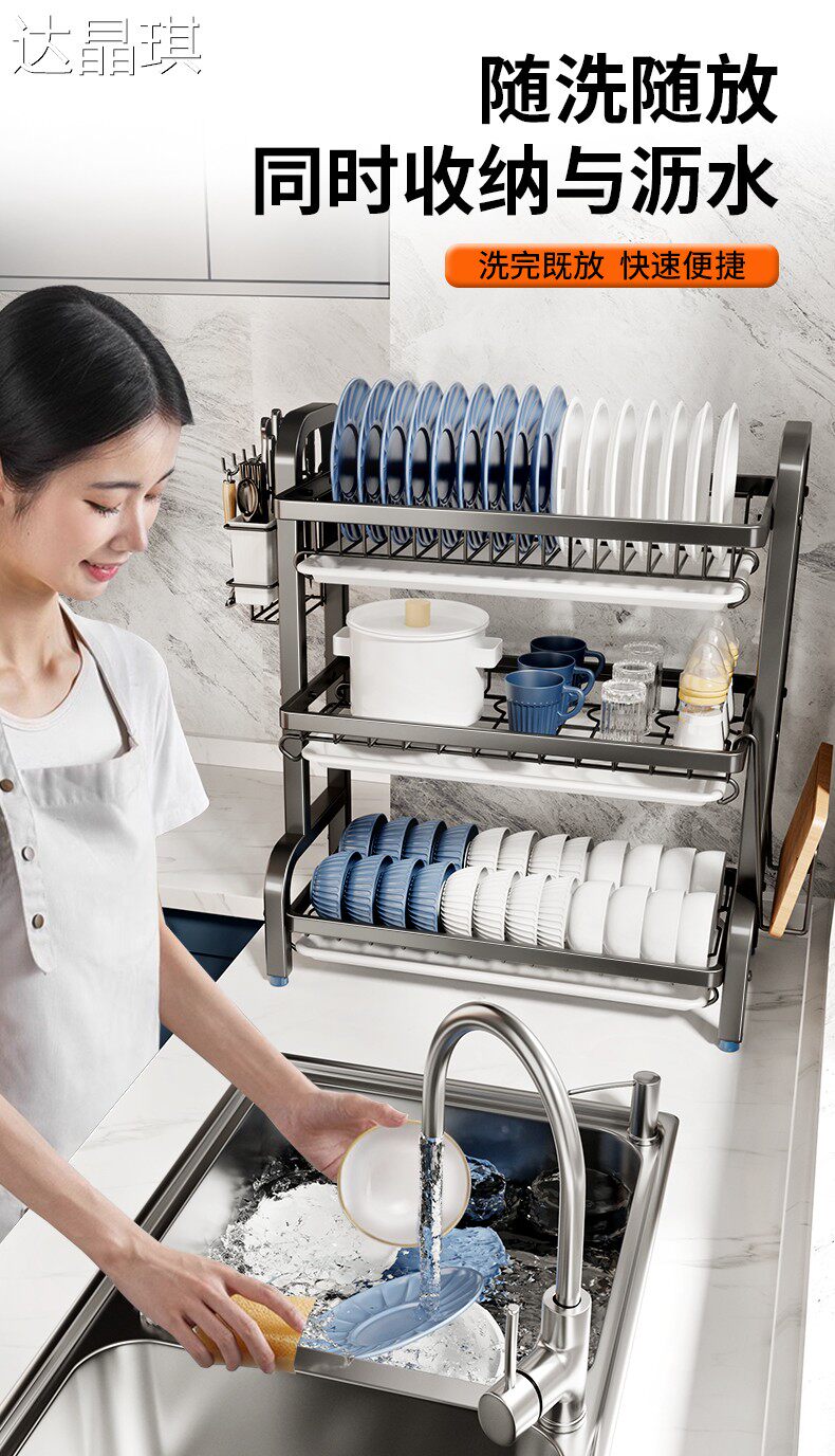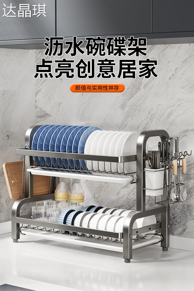 Kitchen dish storage rack, multi-functional storage rack, household stainless steel dish rack, dish drain rack, bowl and chopsticks storage box, bed sheet cart
