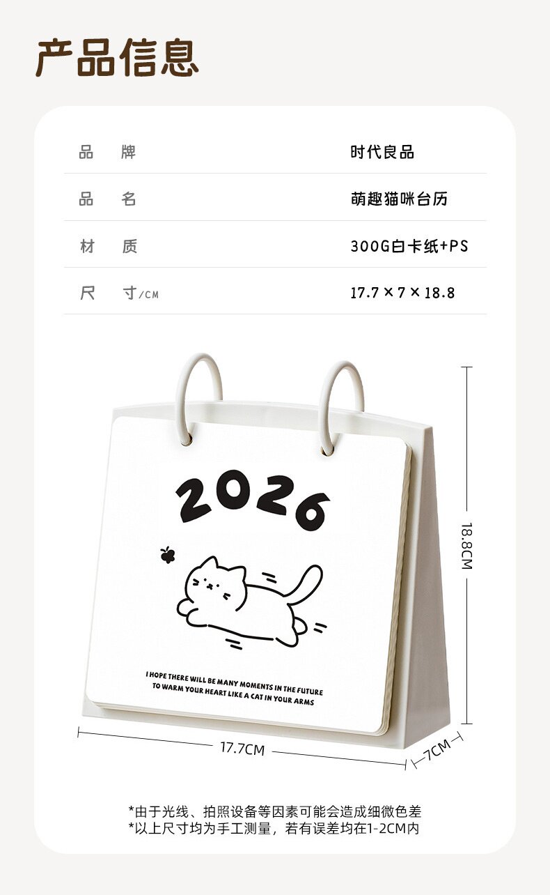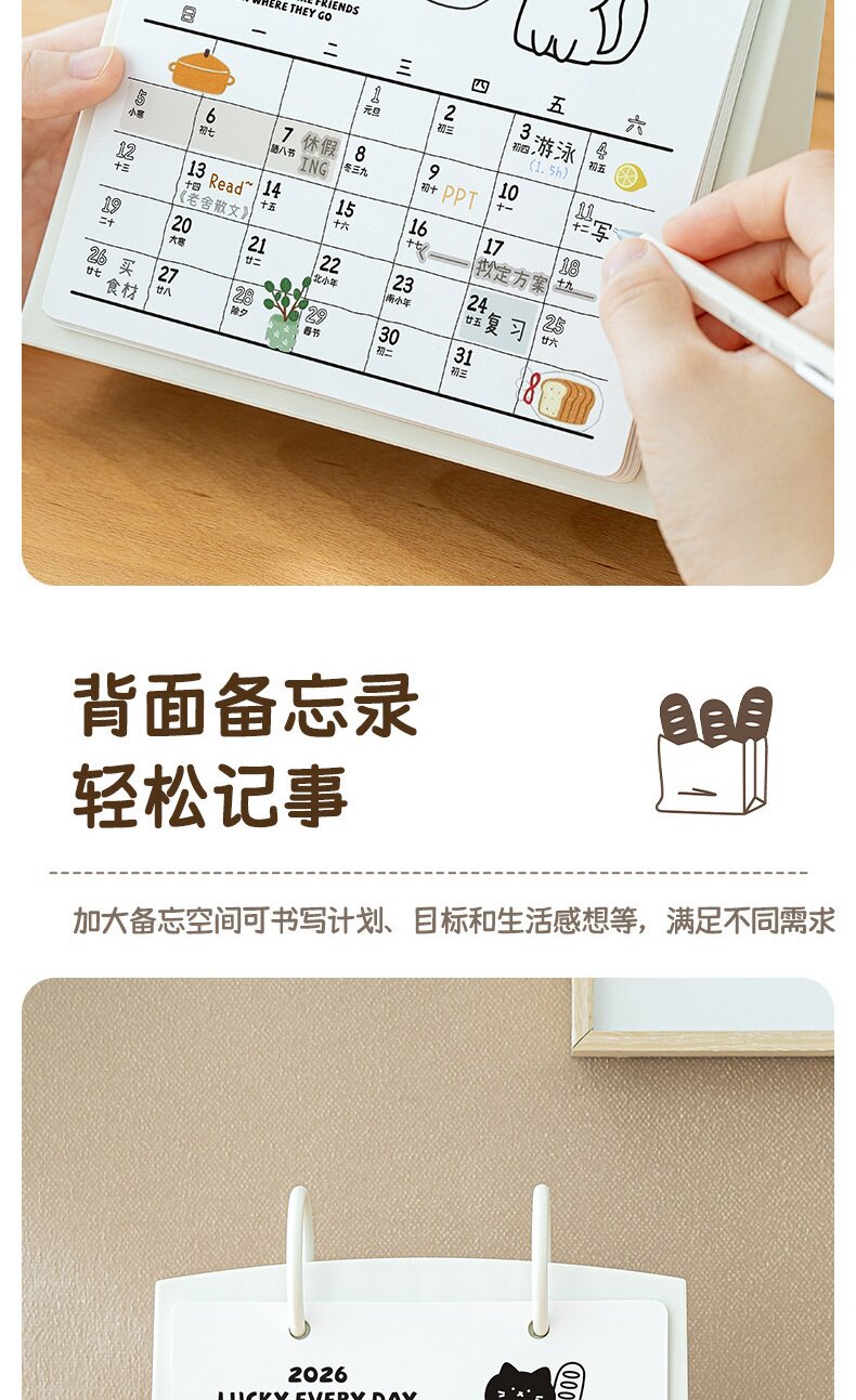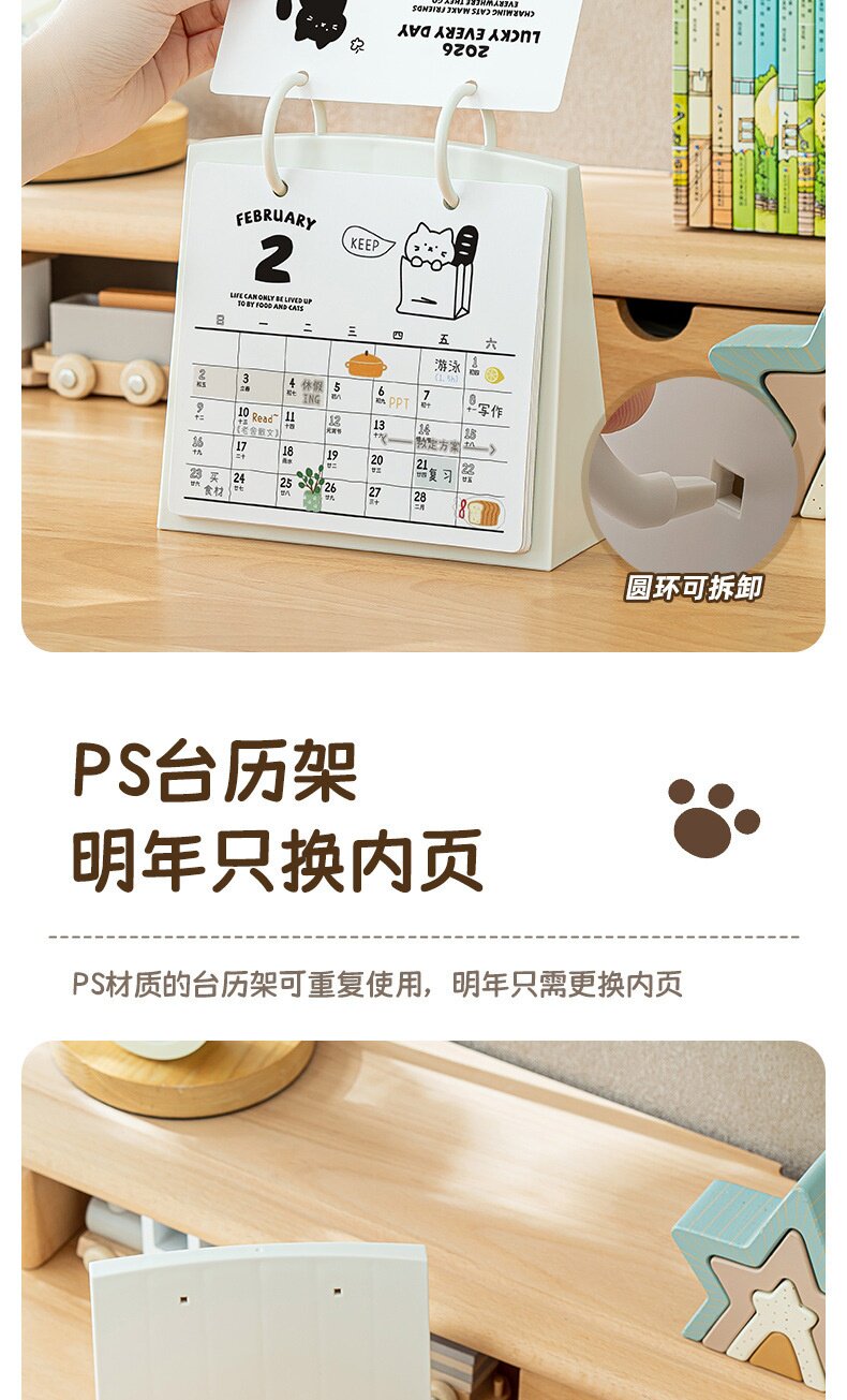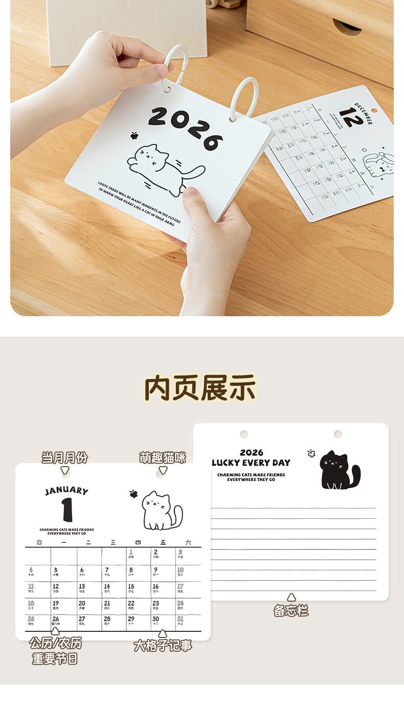 2026 Year of the Horse Desk Calendar Cute Cat Illustration Desktop Ornaments Daily Plan Record Desk Calendar