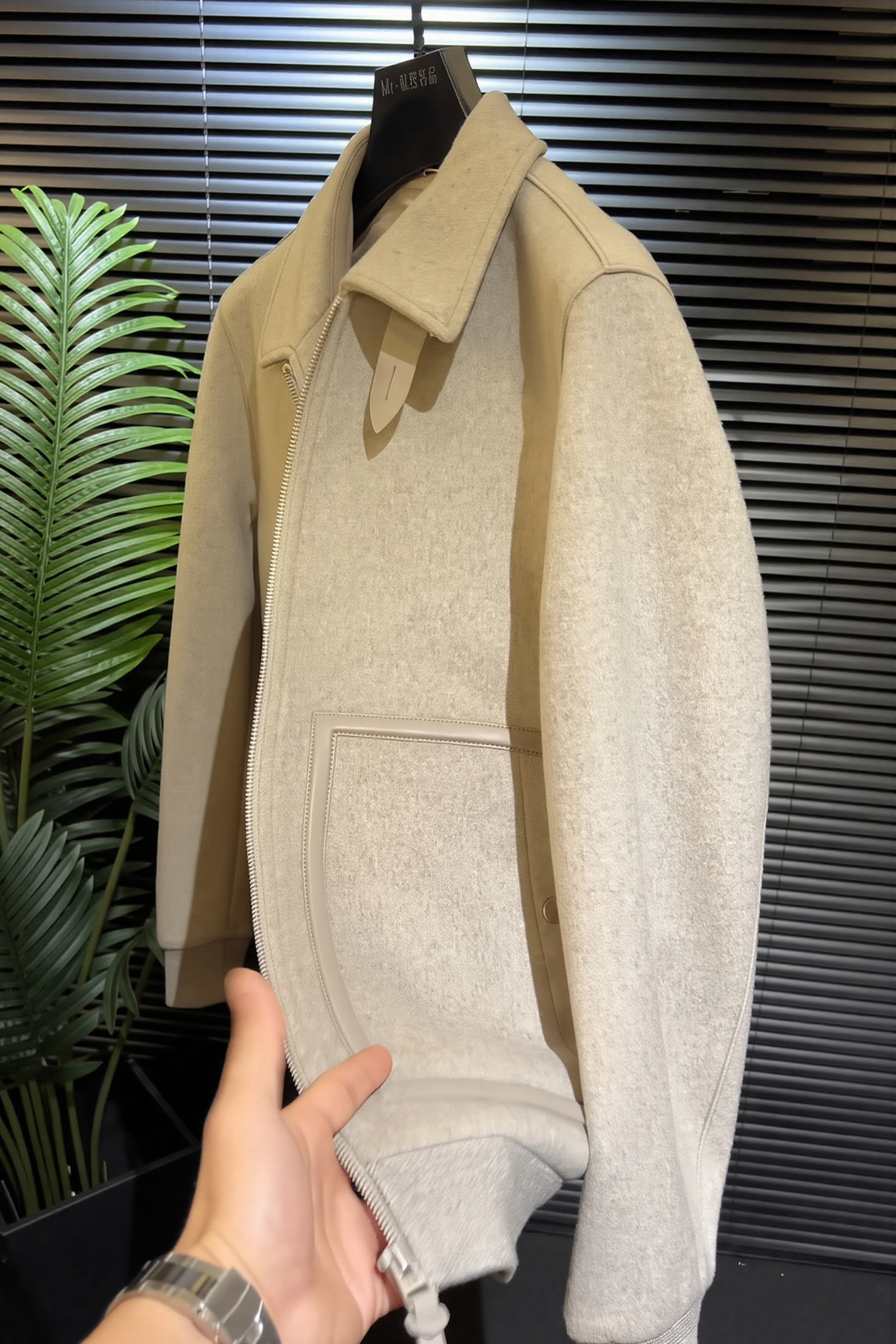 2025 Winter Plus Size Men's Clothing Loose Casual Simple Versatile Sweater Spliced ​​Casual Lapel Zipper Jacket