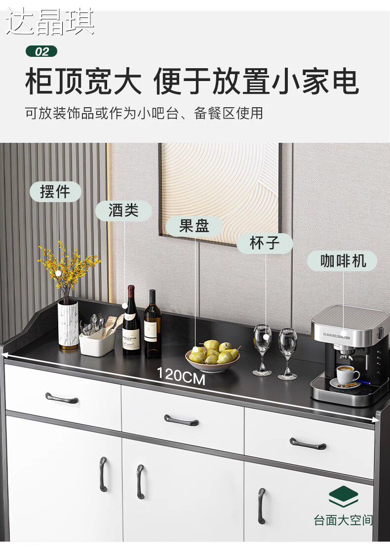 Sideboard, Tea Cabinet, Solid Wood Color, Living Room Wall-Mounted, Home Kitchen Cabinet, Small Sideboard, Storage Cabinet, Organizer, Bed Sheet Cart