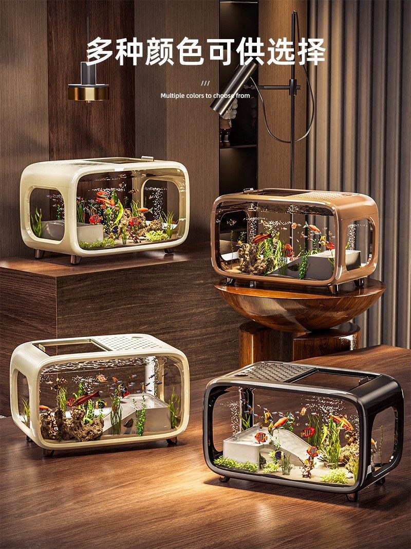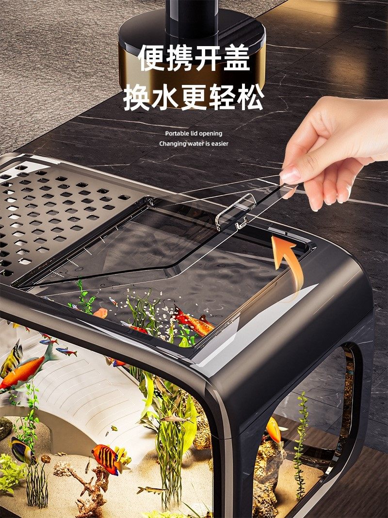 Fish tank living room 2025 new model with cover transparent large new ornaments landscaping decoration ecological aquarium goldfish tank