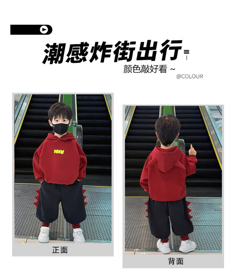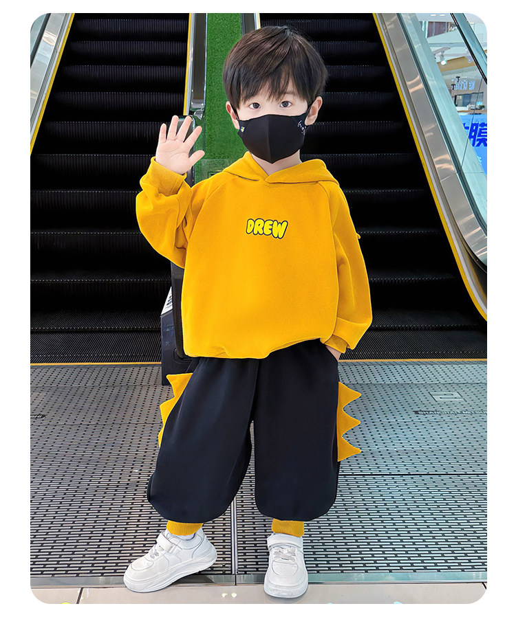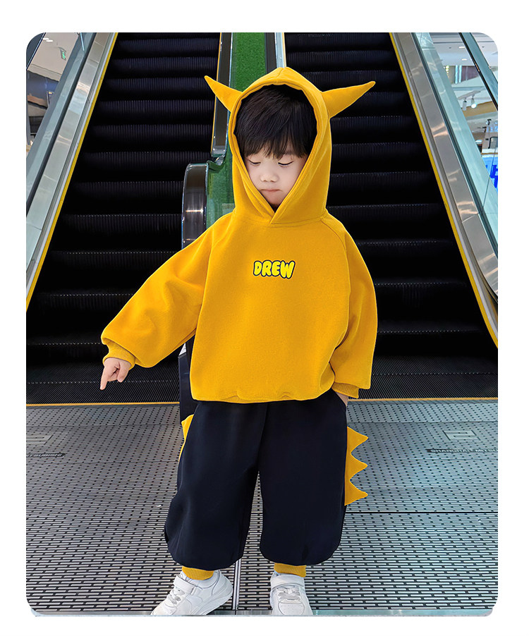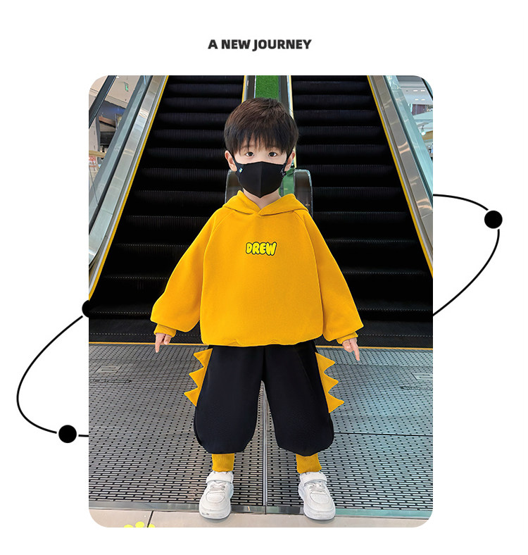 French Boys' Winter Sweatshirt Set 2025 New Children's Clothing Boys' Fleece Clothes Baby Sports Two-Piece Set