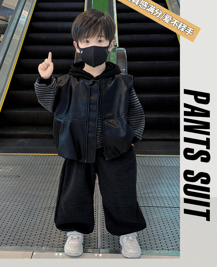 French Children's Clothing Set 2025 New Baby Autumn and Winter Fleece Sweatshirt Boys Thickened Vest Three-Piece Set