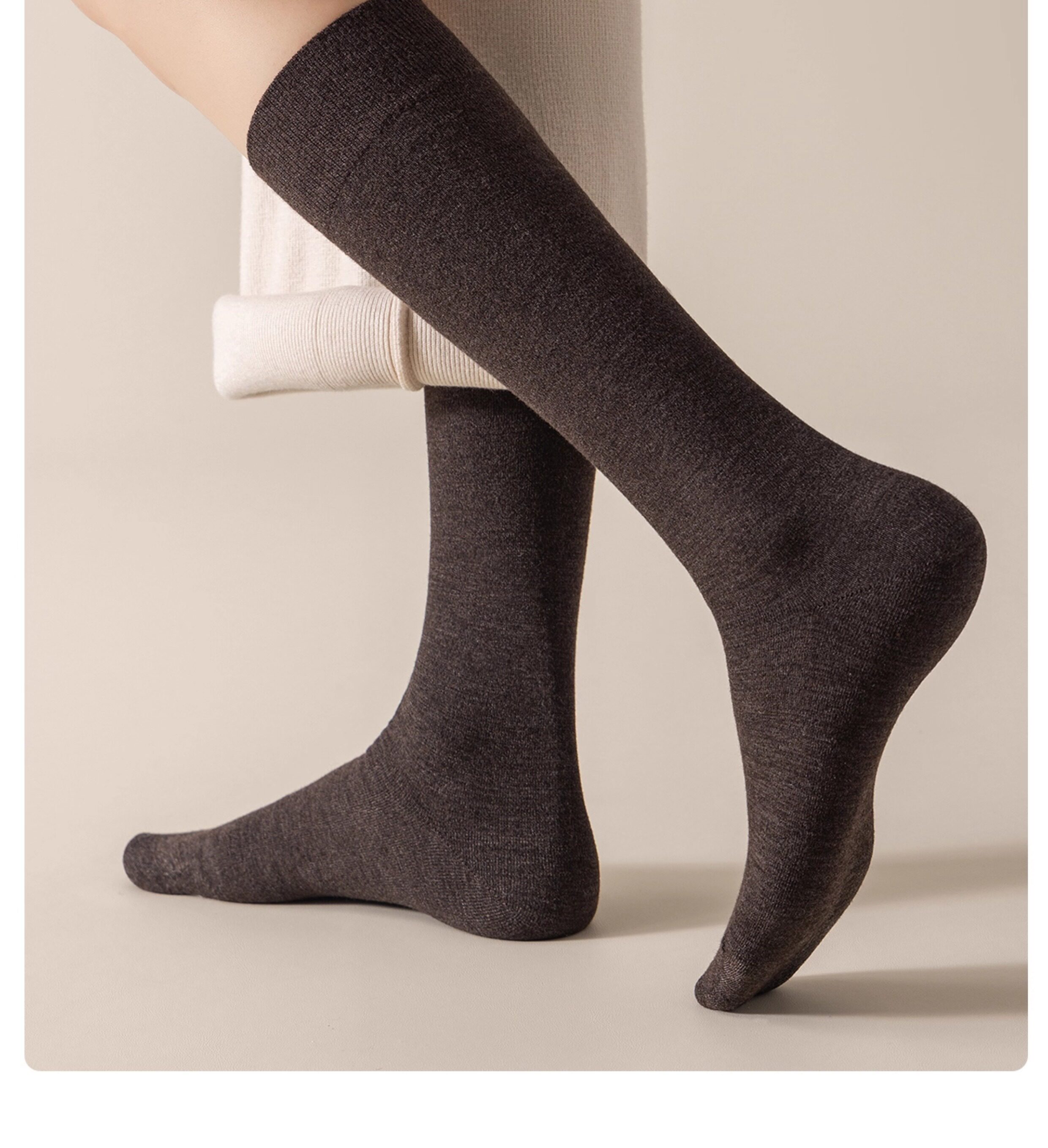 Mulberry Silk Wool Calf Socks for Women, Autumn and Winter Long Black Compression Non-Slip Fleece-Lined Thickened Jk Warm High Socks