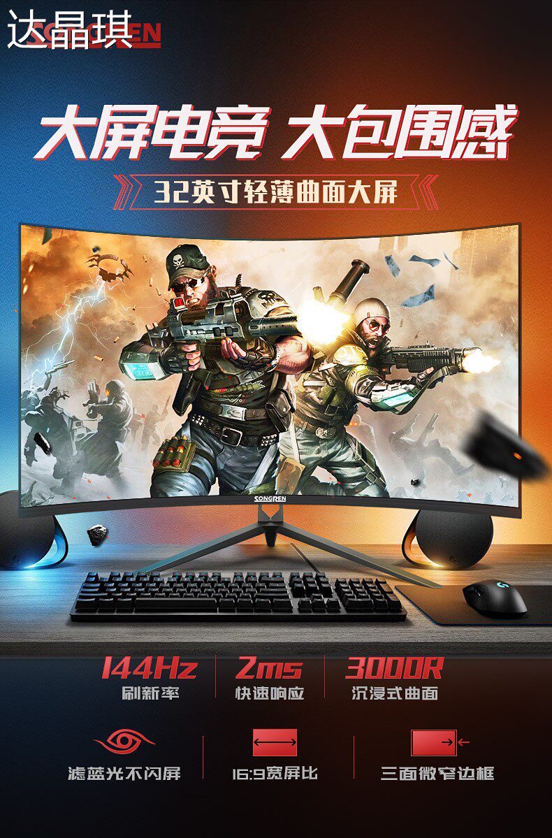 32inch Desktop Computers 165 Gaming 38 Lcd 34 Curved Screen 27 Curved 144Hz High-Definition 2K Monitor Bed Sheet Pull Cart
