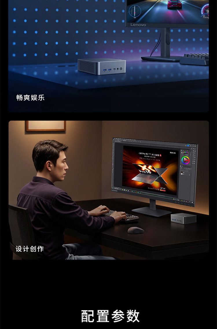 Lenovo computer desktop laiku mini host office machine complete set original home game type complete set openclaw host