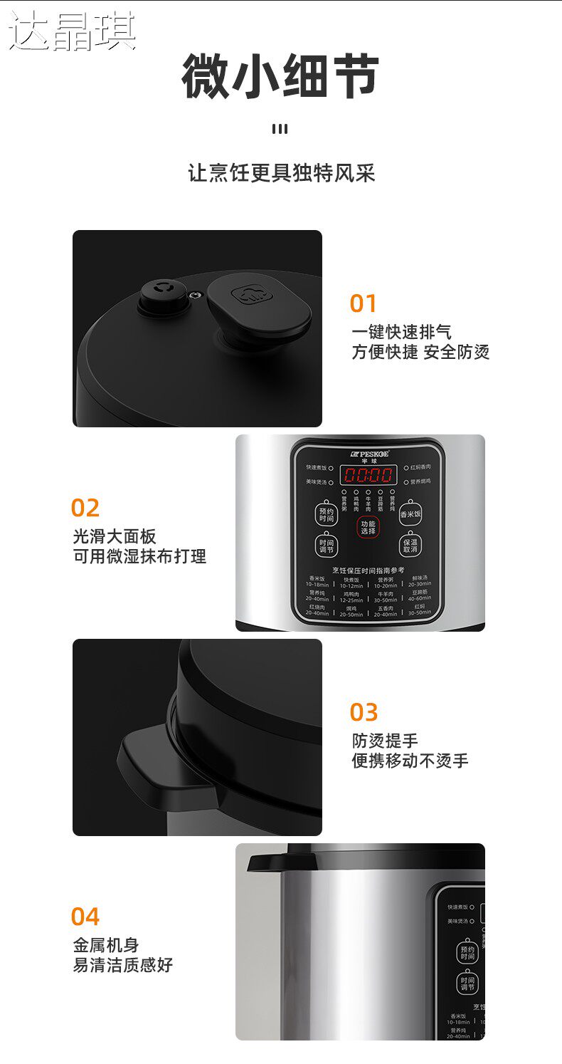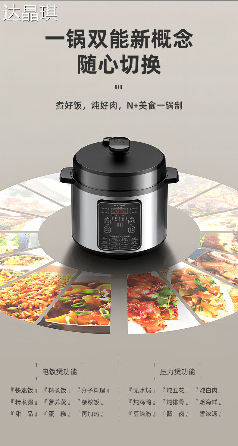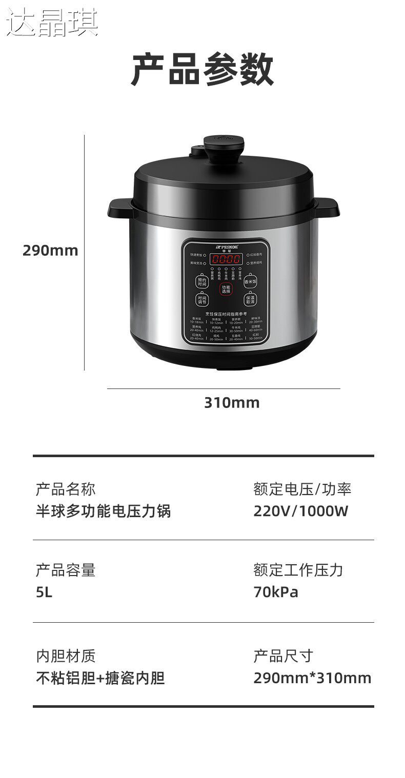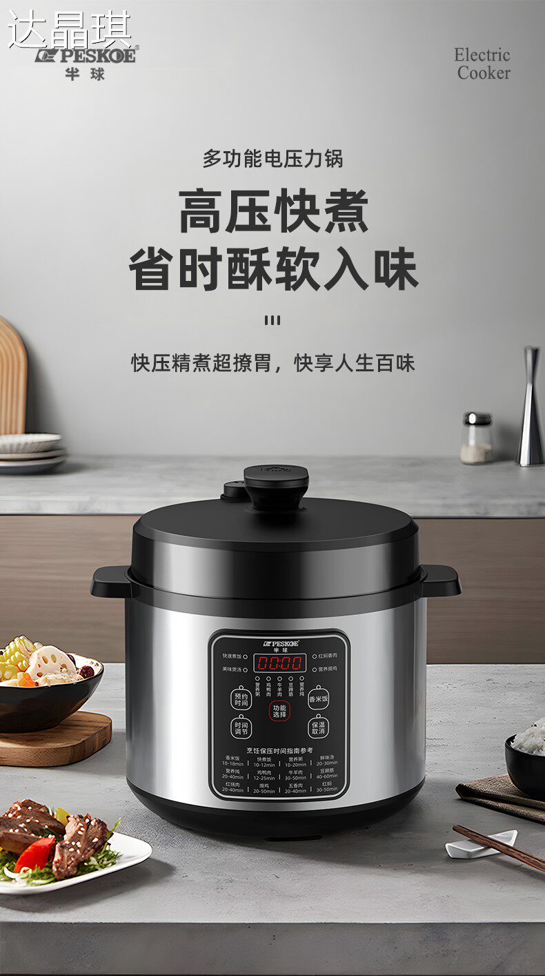 Authentic Hemisphere Electric Pressure Cooker 5L Large Capacity Household Multifunctional Fully Automatic Energy-Saving High-Pressure Rice Cooker for Steaming, Simmering, and Stewing