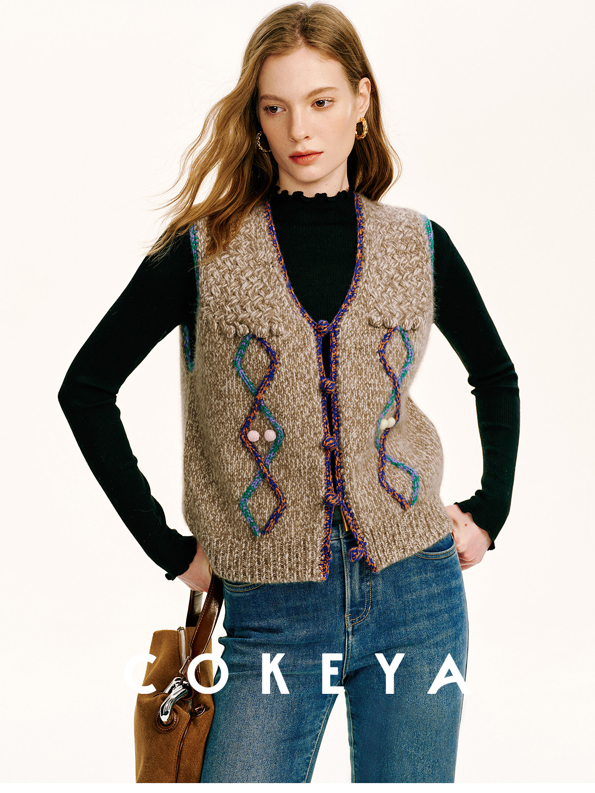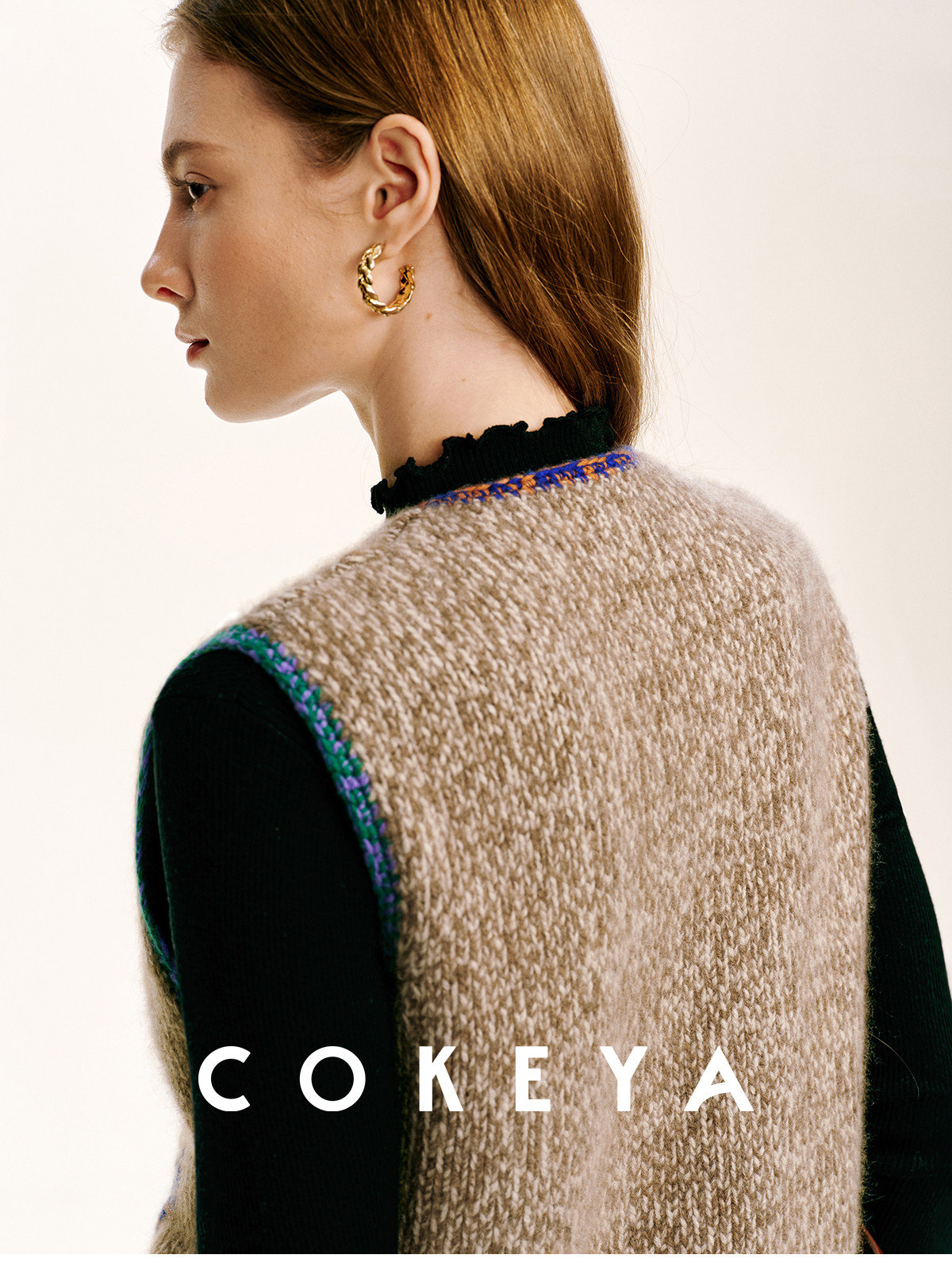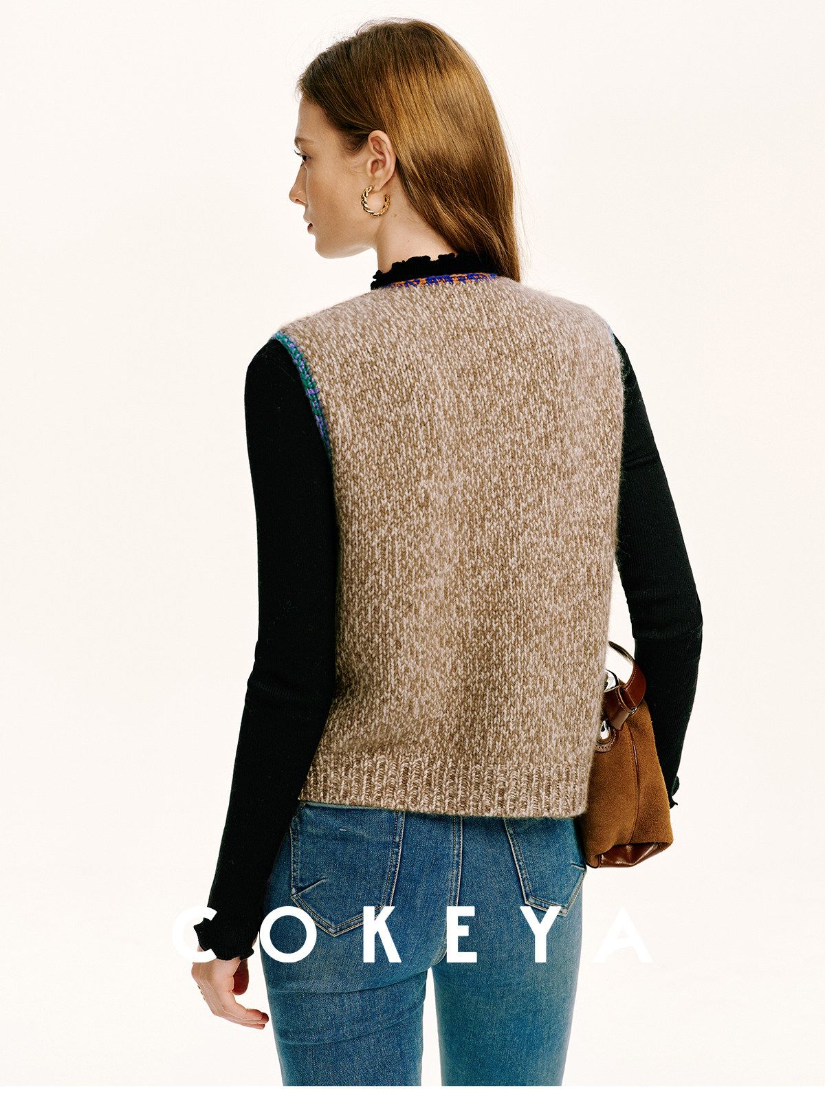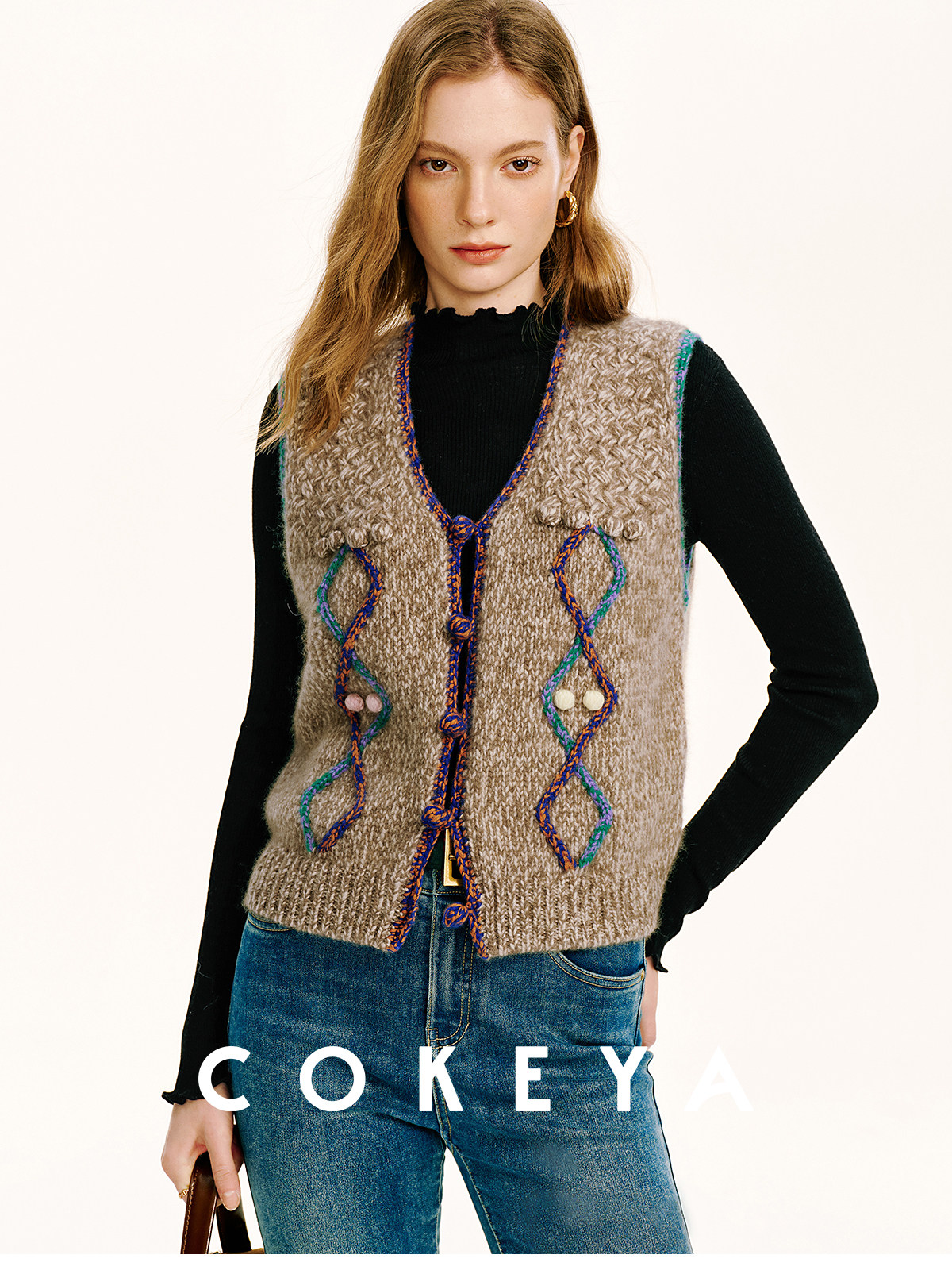 Cokeya/Nomad·Free Spirit~26-Count Cashmere Diamond-Pattern V-Neck Knitted Short Sleeveless Vest for Women, Spring Season