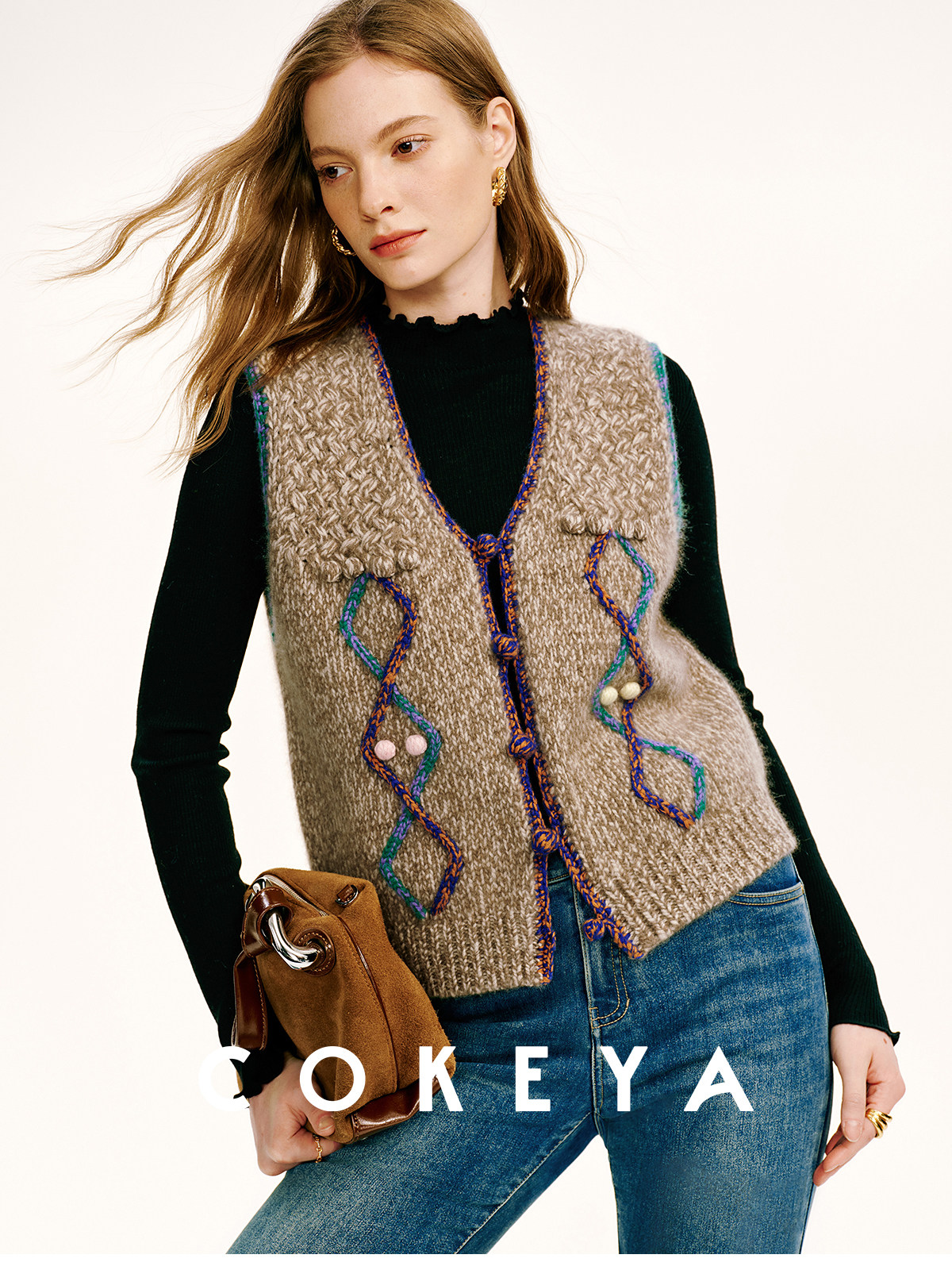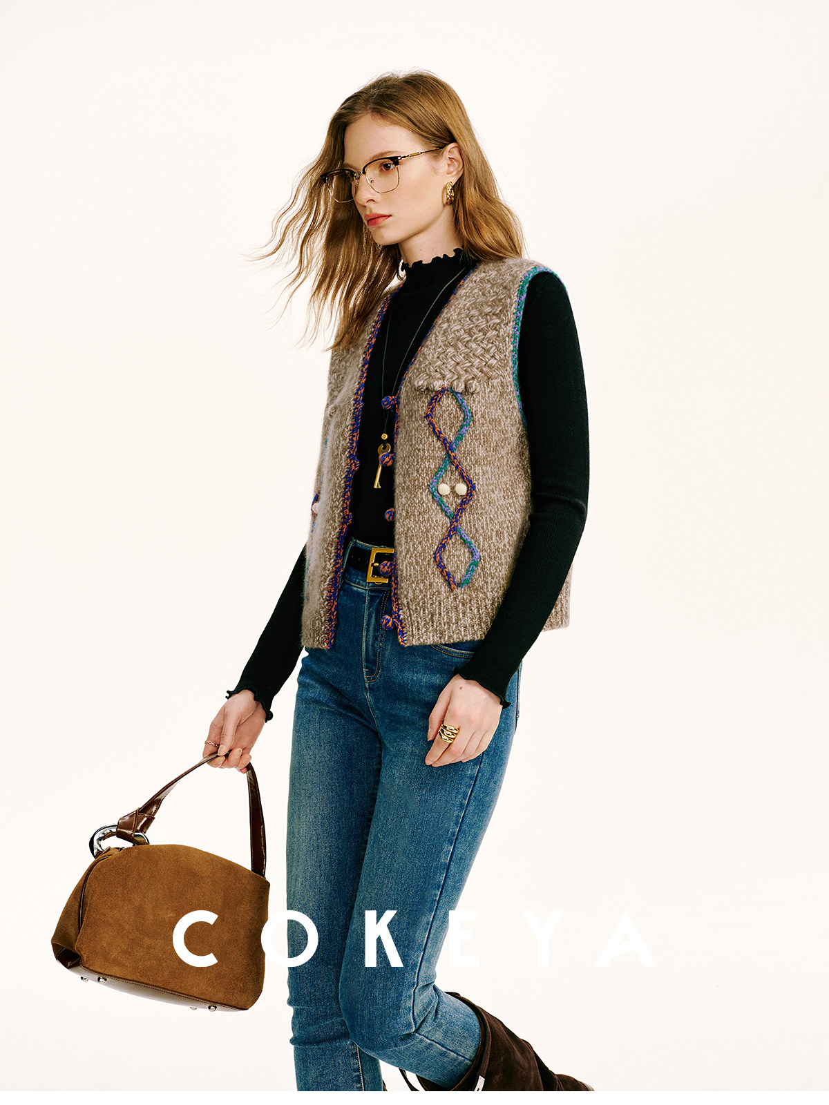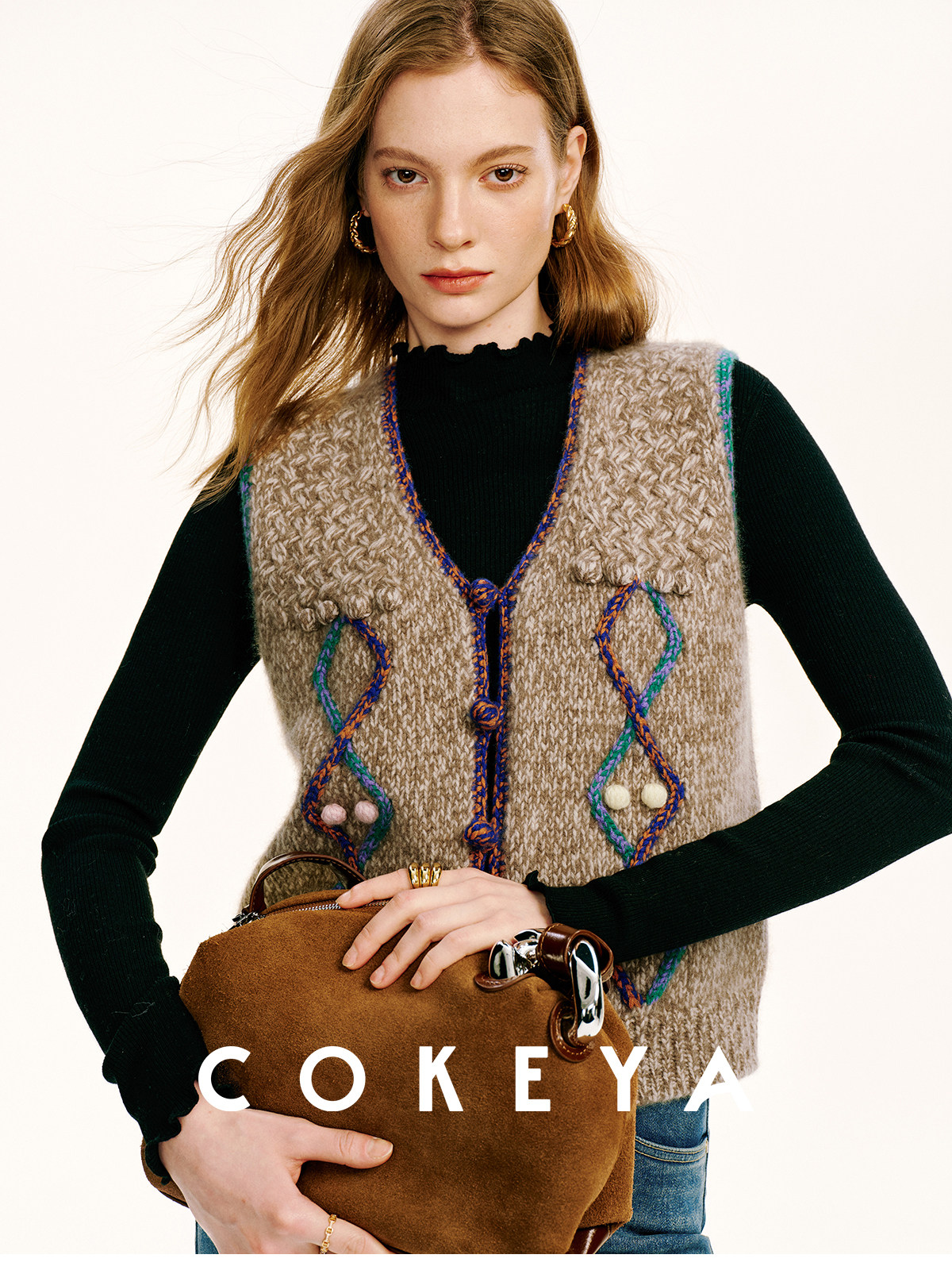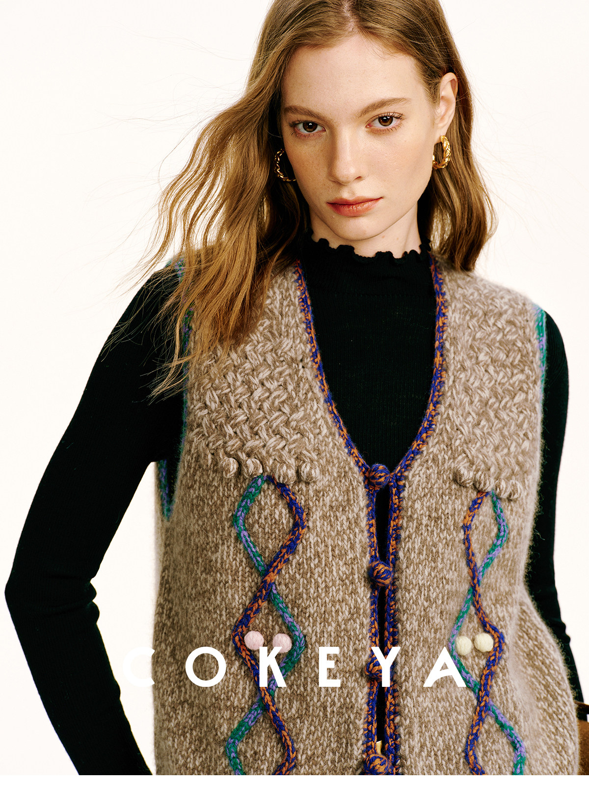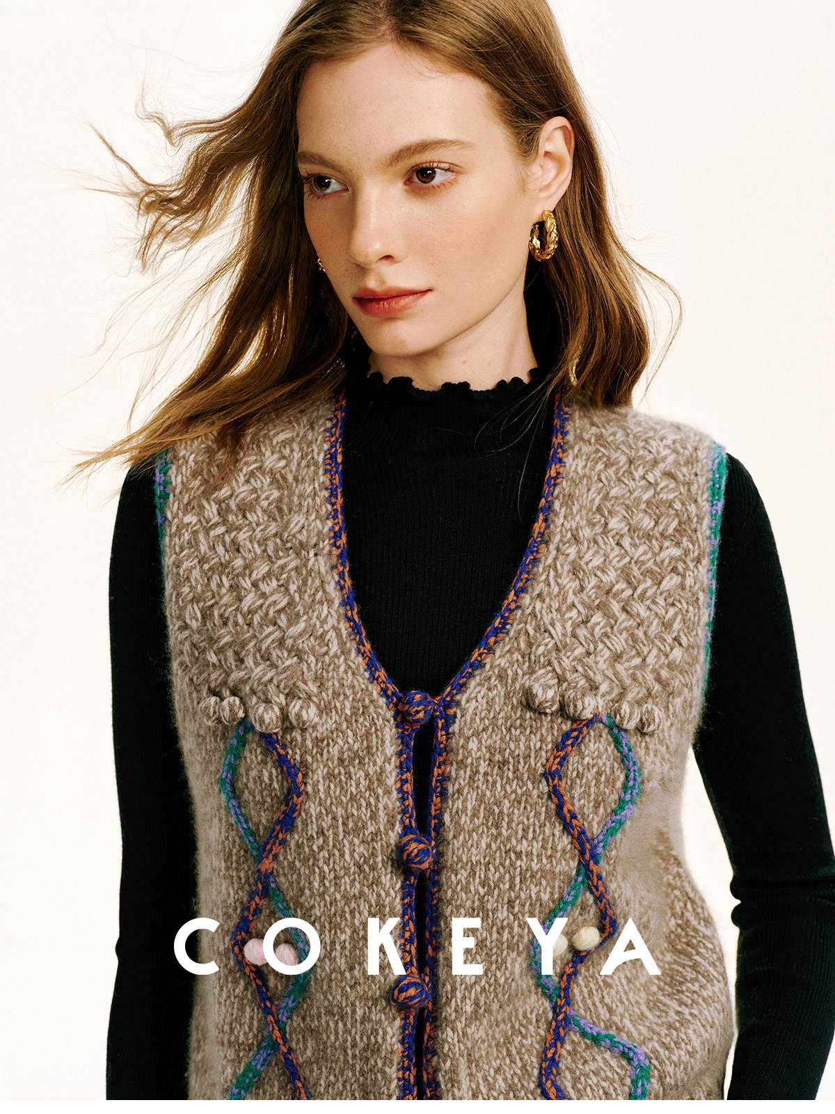 Cokeya/Nomad·Free Spirit~26-Count Cashmere Diamond-Pattern V-Neck Knitted Short Sleeveless Vest for Women, Spring Season