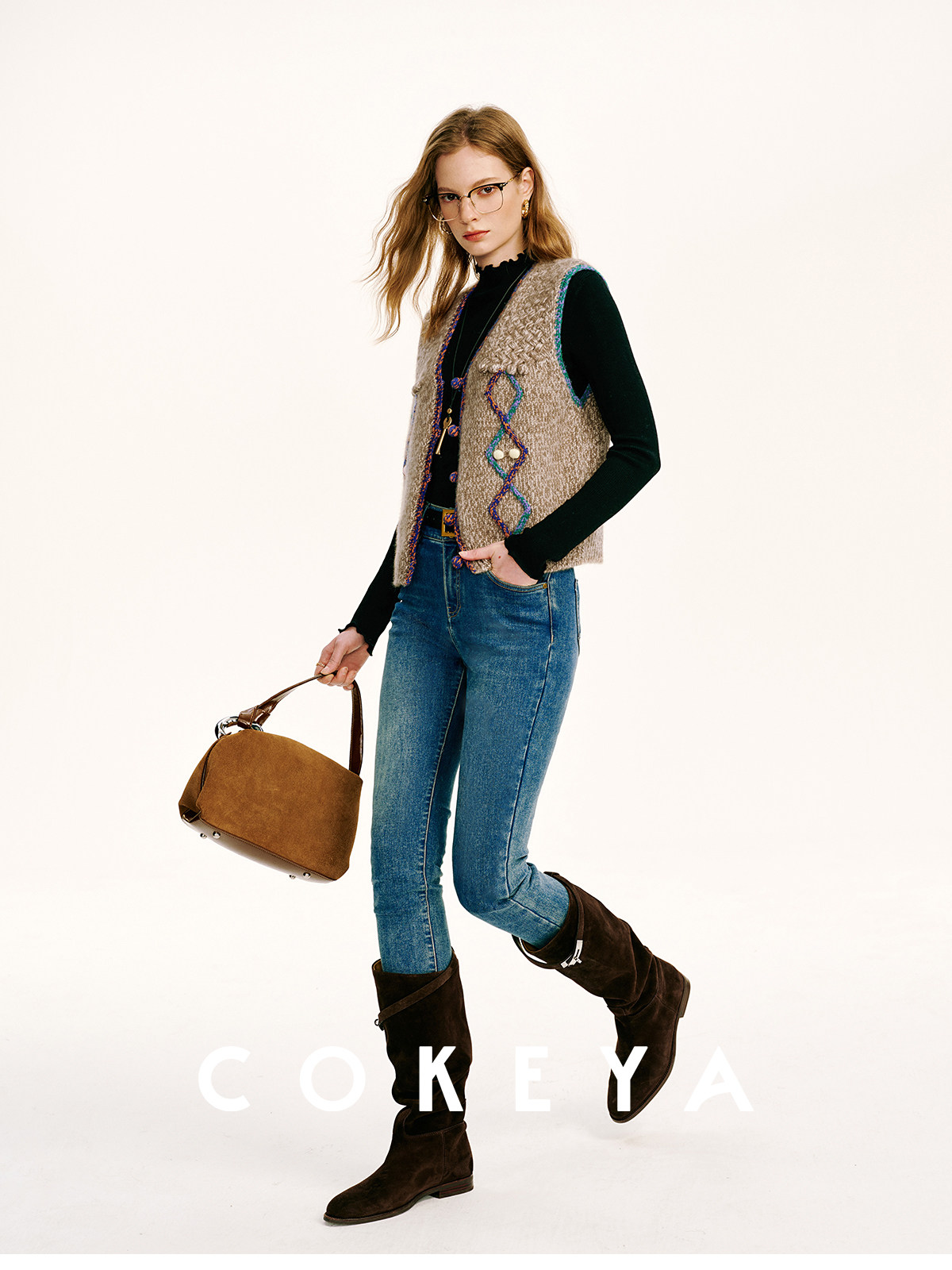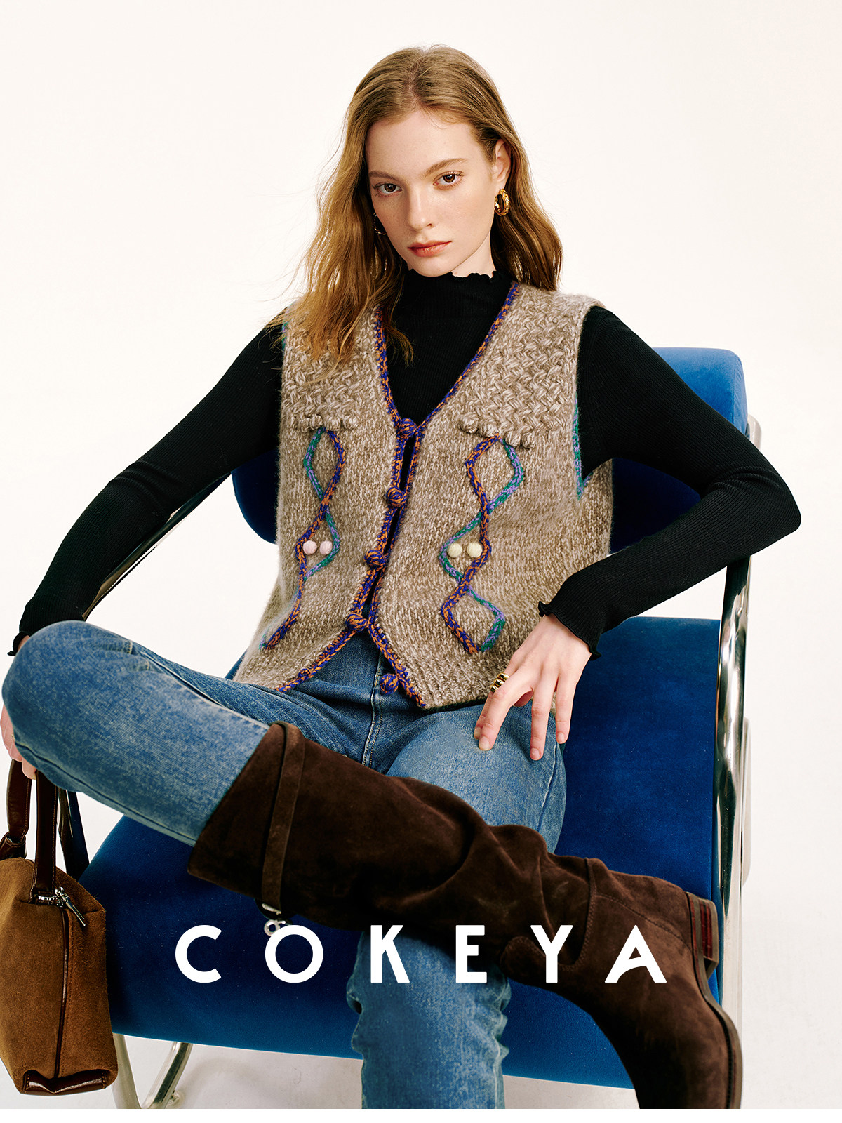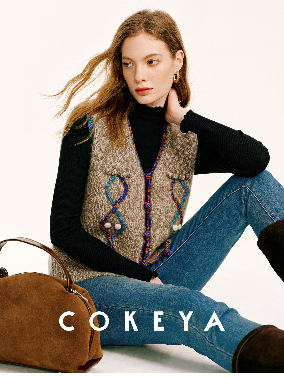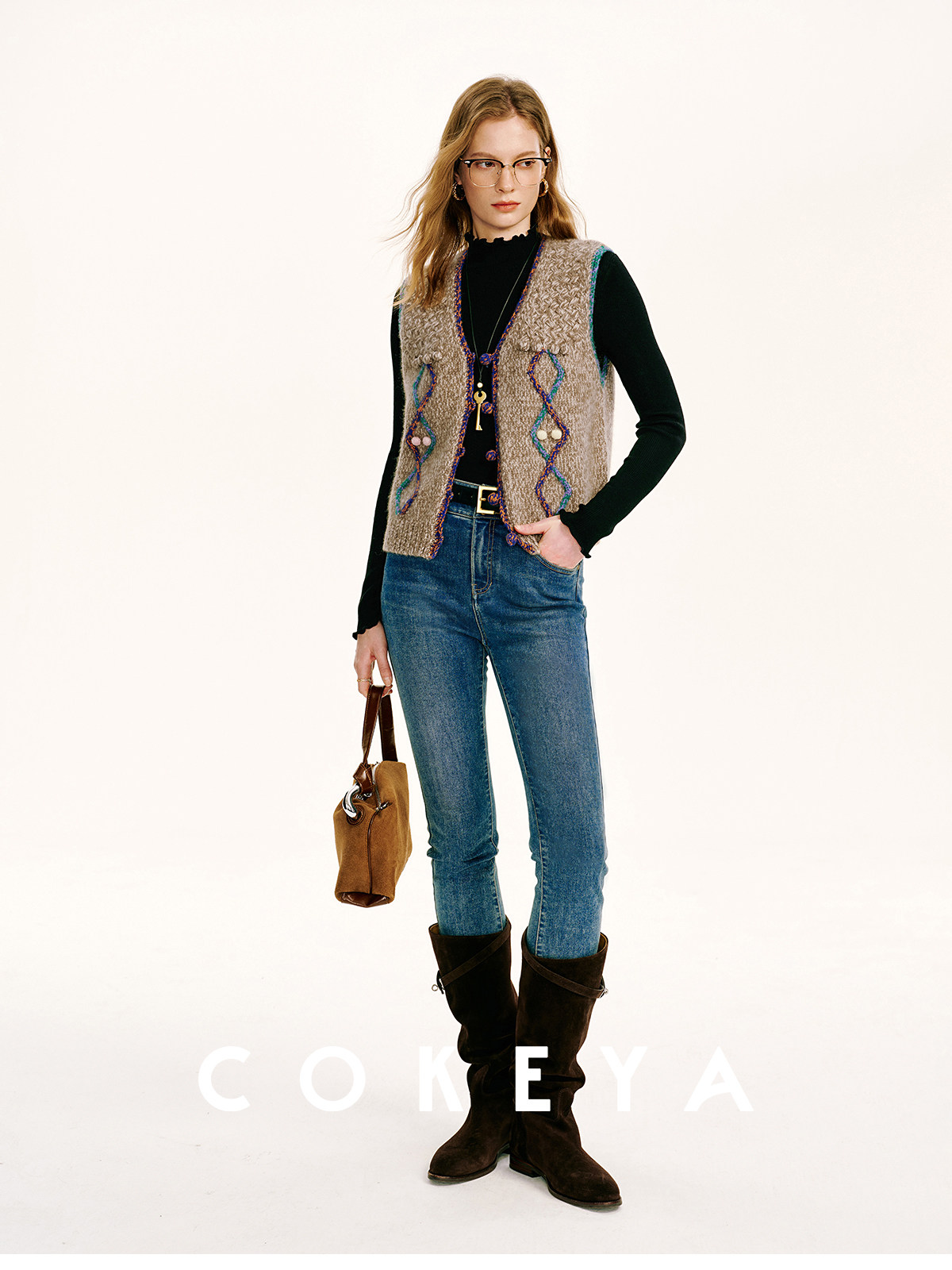 Cokeya/Nomad·Free Spirit~26-Count Cashmere Diamond-Pattern V-Neck Knitted Short Sleeveless Vest for Women, Spring Season