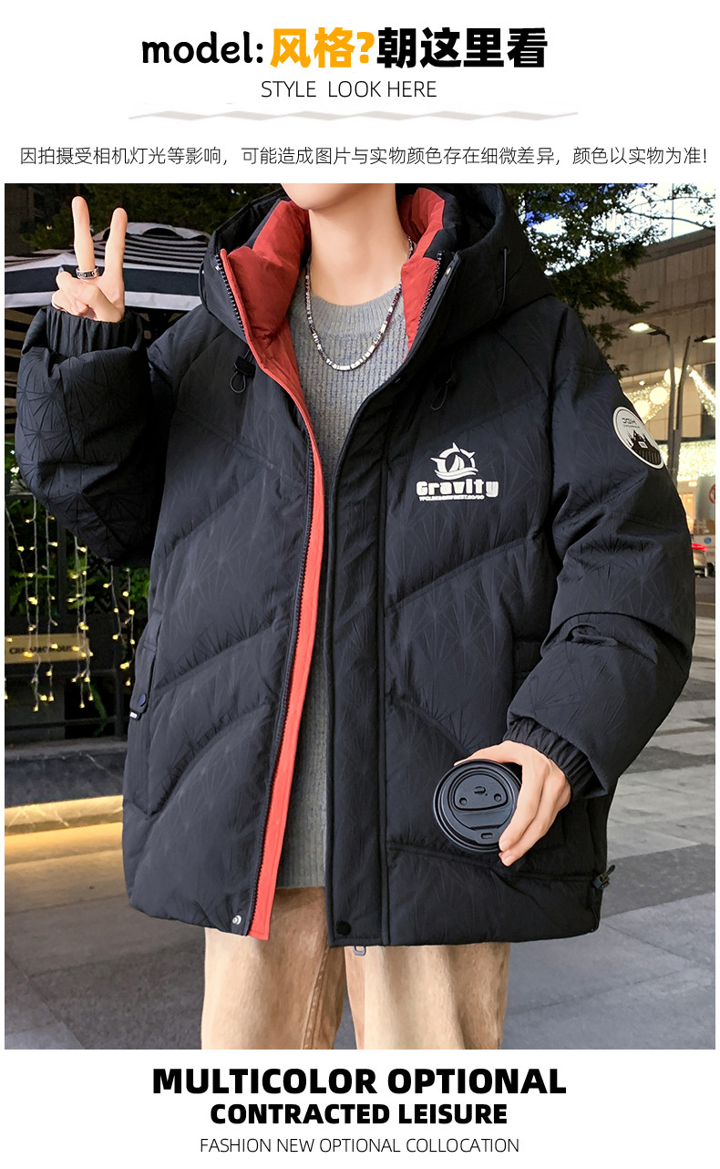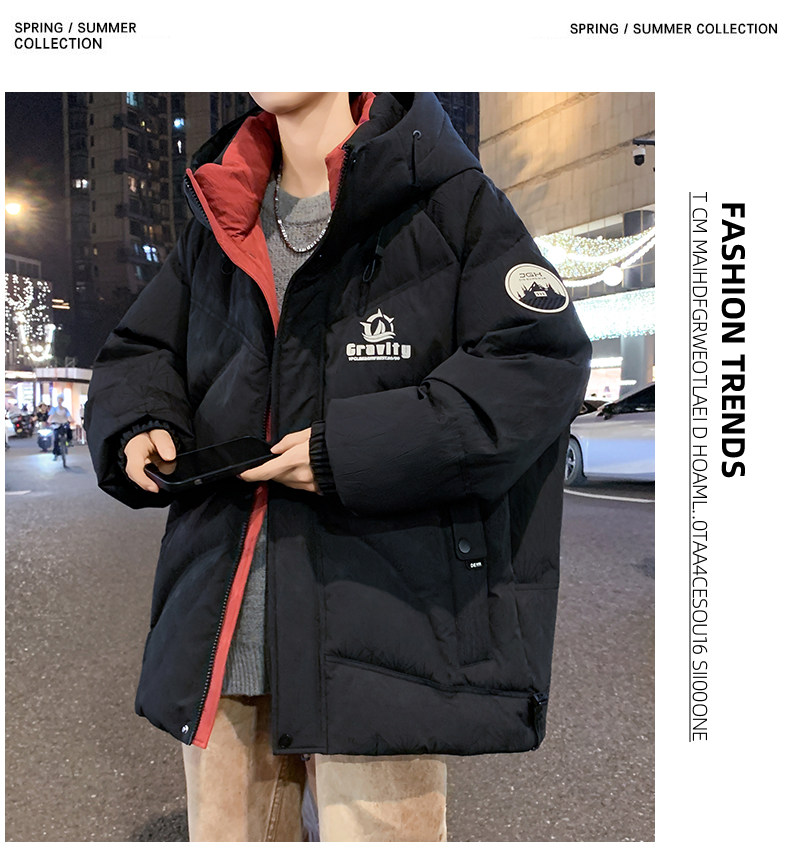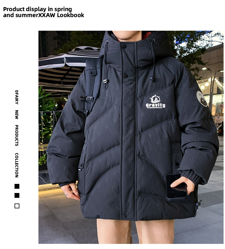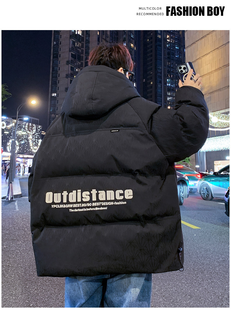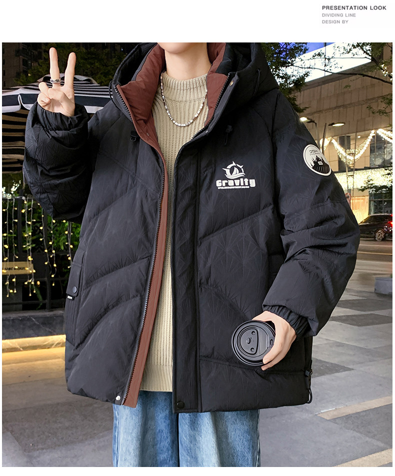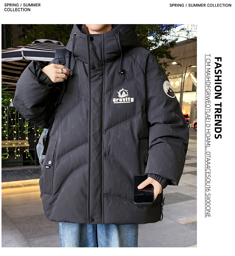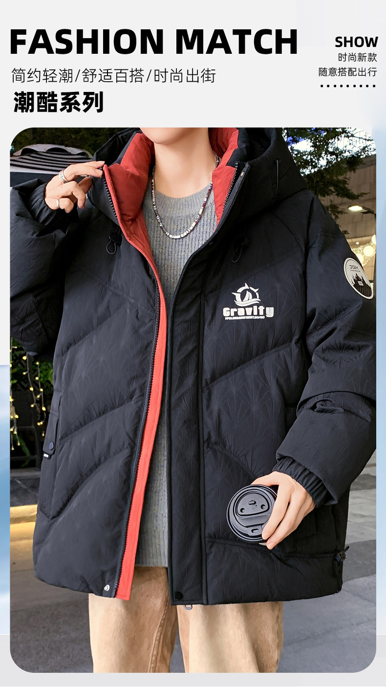 Youth Trendy Versatile Hooded Jacket for Boys, Thickened and Warm, Loose-Fitting Black Cotton Coat for Winter