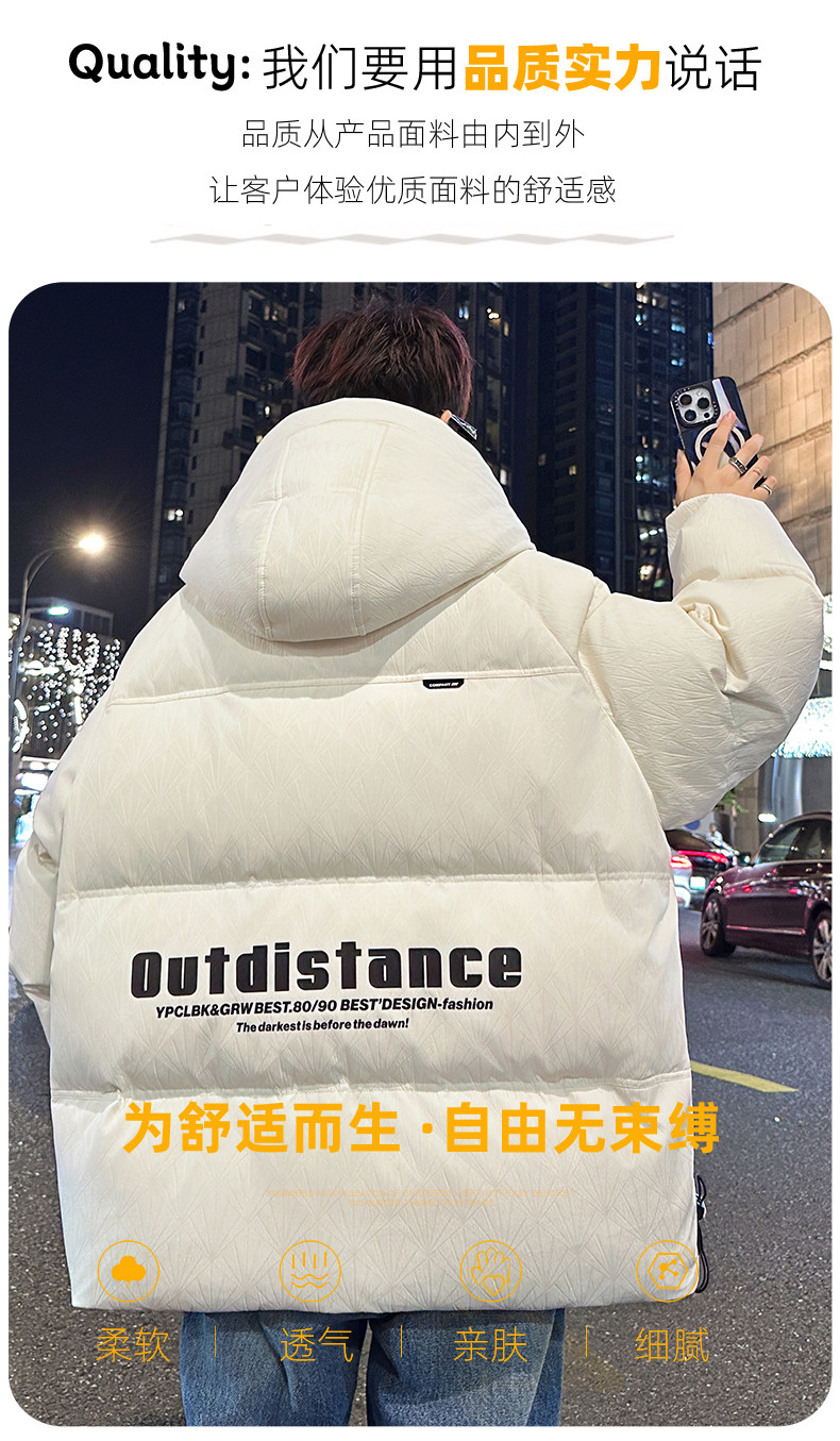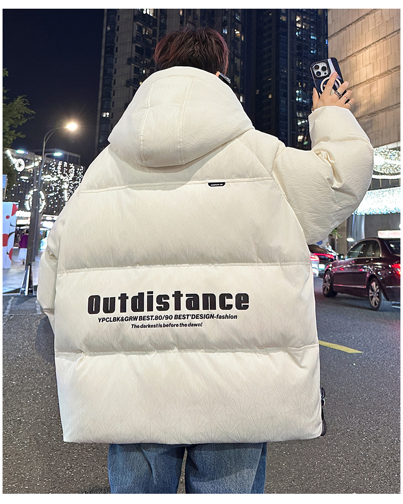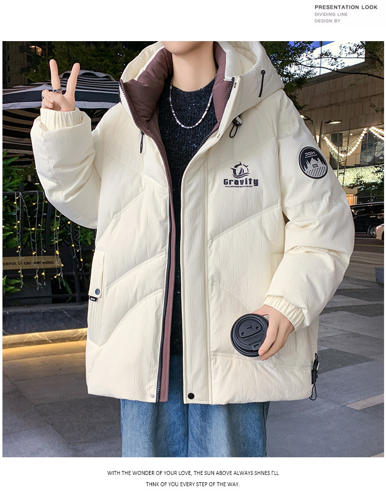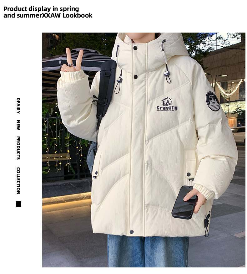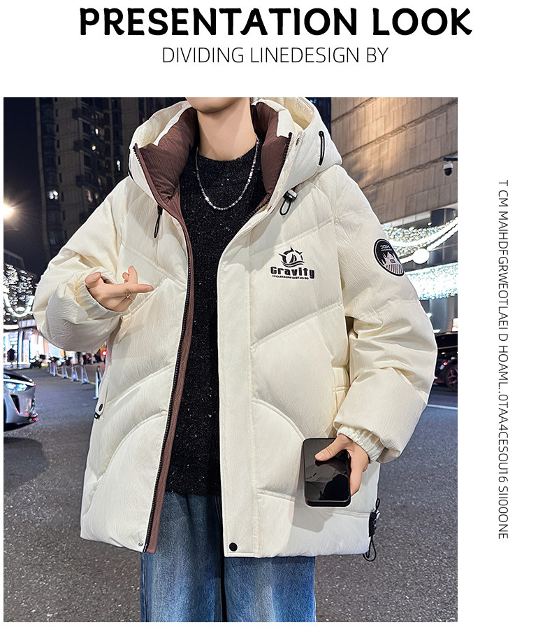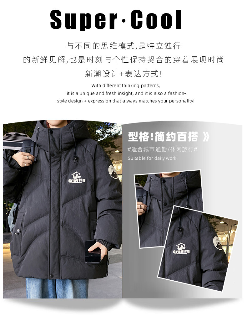 Youth Trendy Versatile Hooded Jacket for Boys, Thickened and Warm, Loose-Fitting Black Cotton Coat for Winter