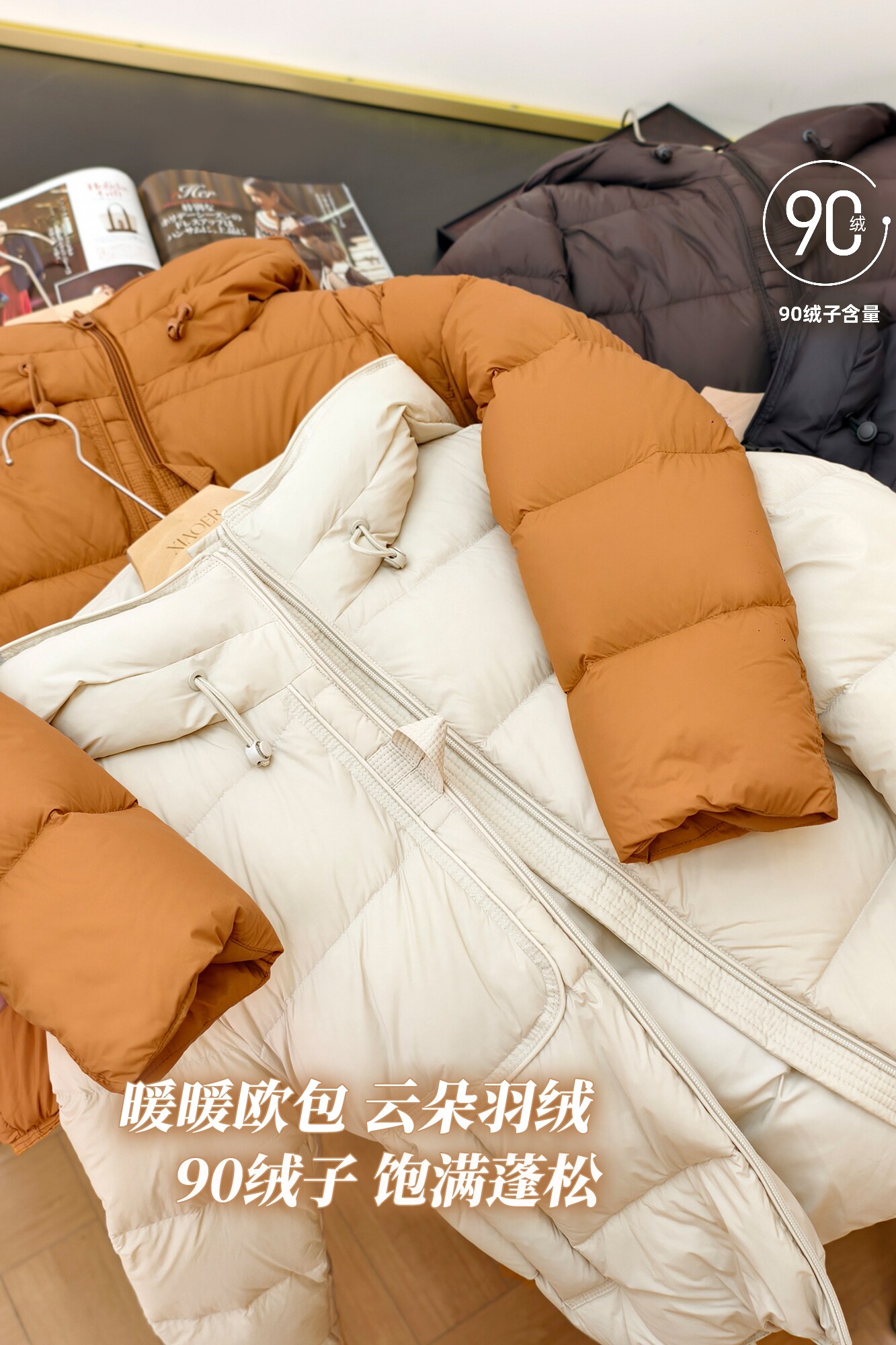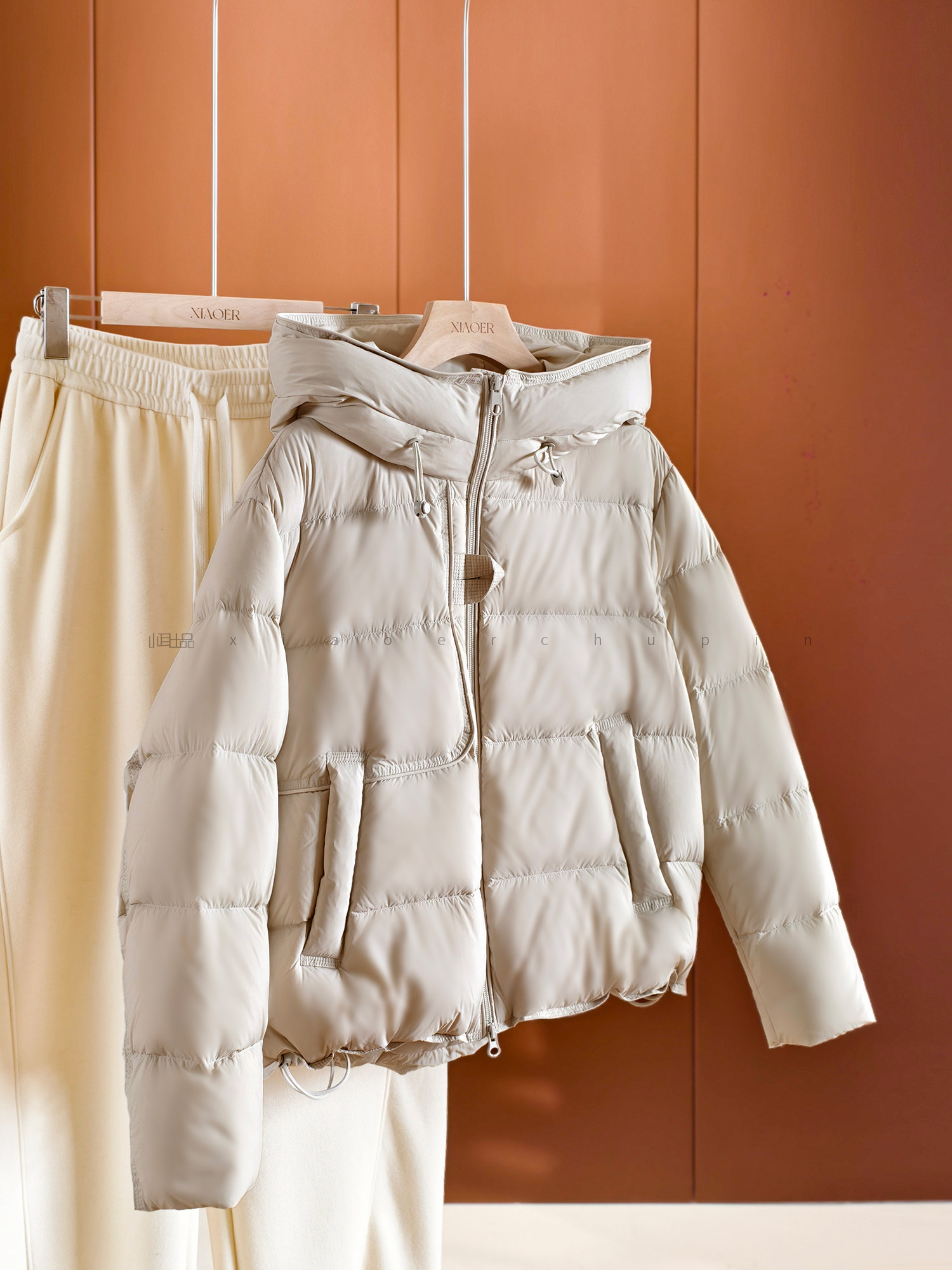 Produced by Xiaoer, European bag down jacket, fluffy and light/new national standard 90 duck down, hooded drawstring zipper jacket for women