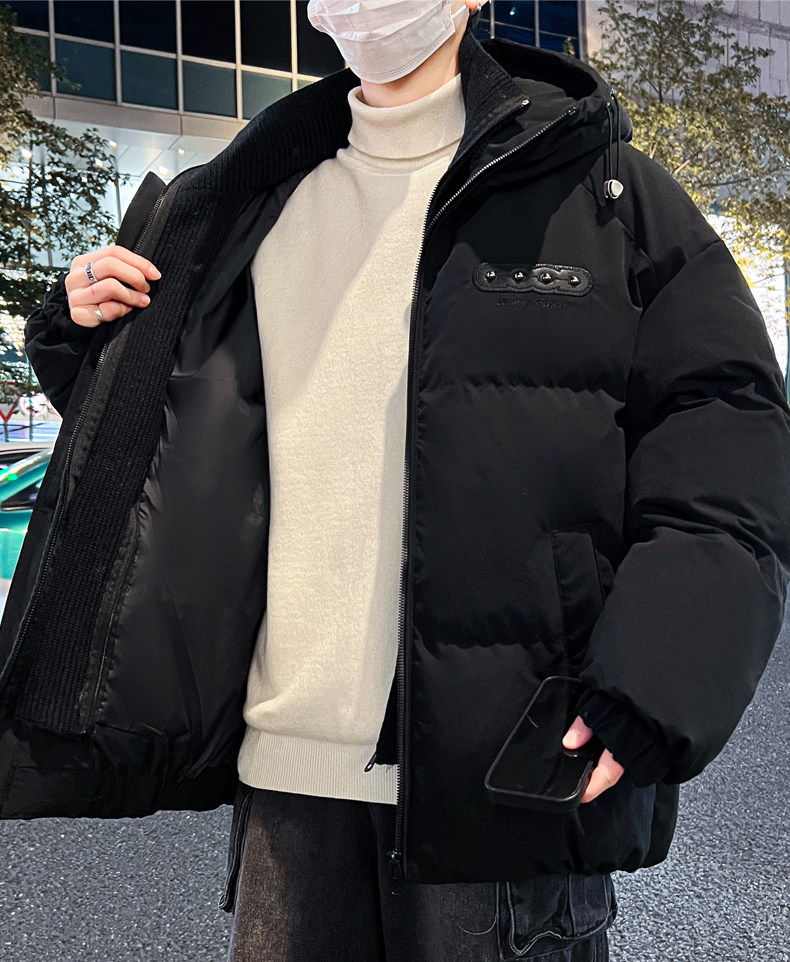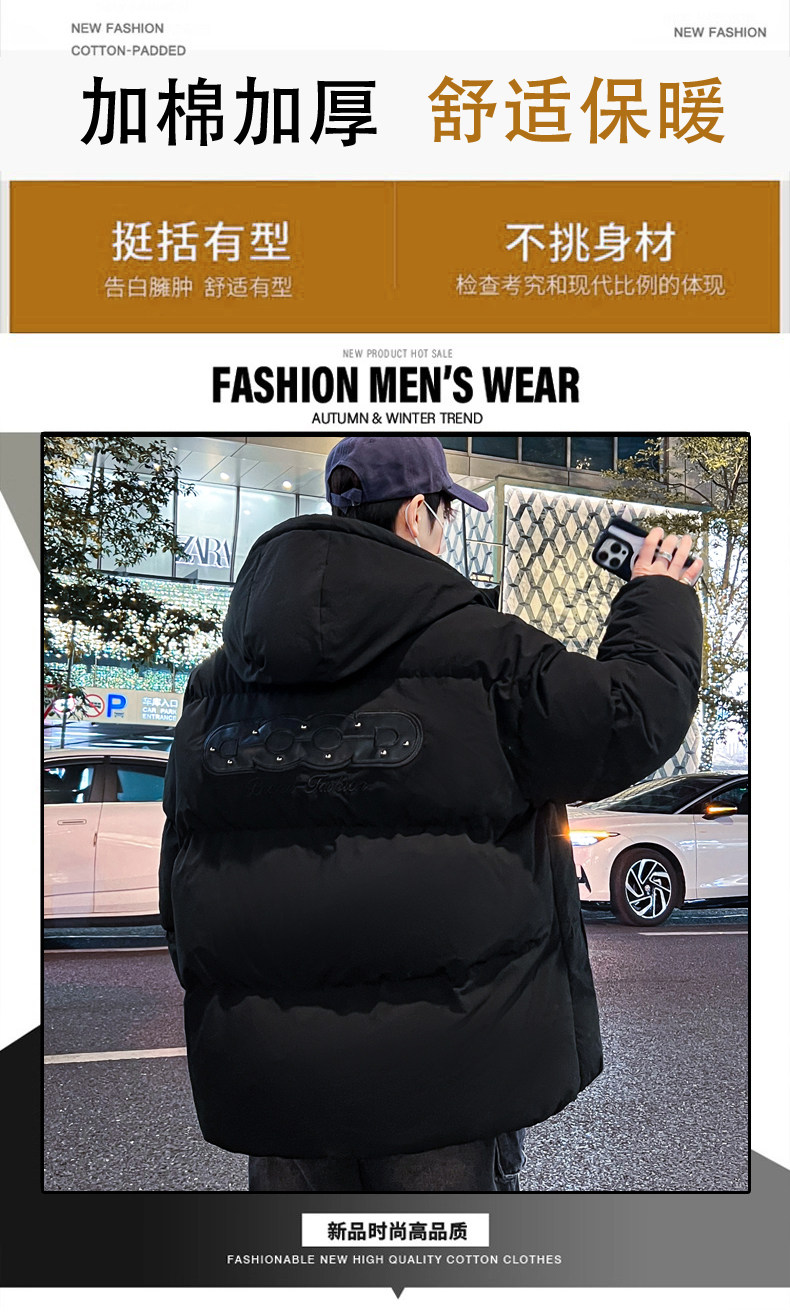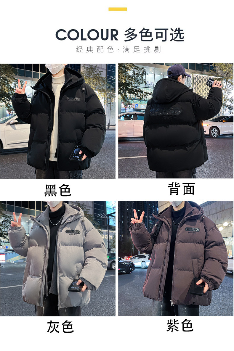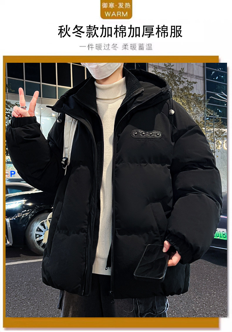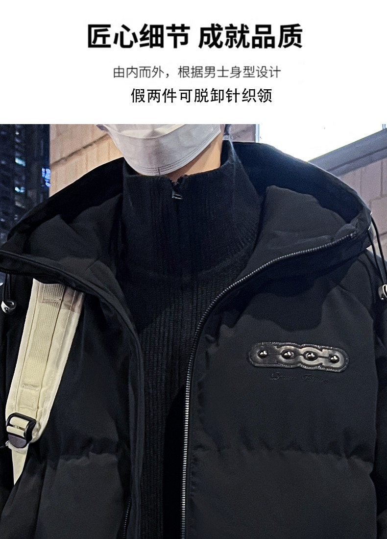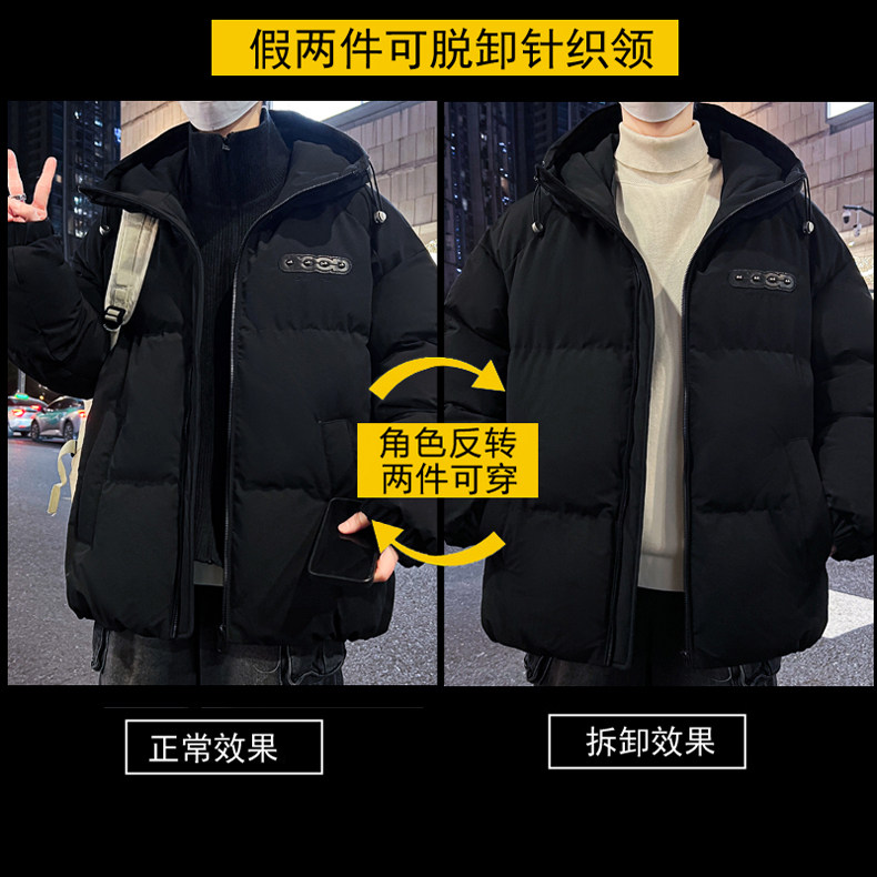 Teenagers' Stylish Detachable Hooded Cotton Jacket, Faux Two-Piece Cotton Coat, New Winter Graphene Cloud Velvet Warm Outerwear