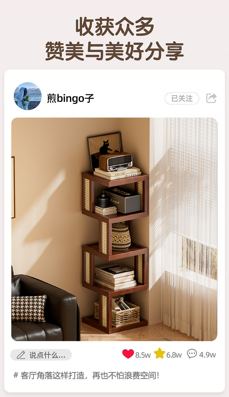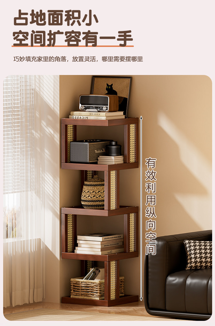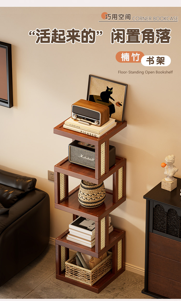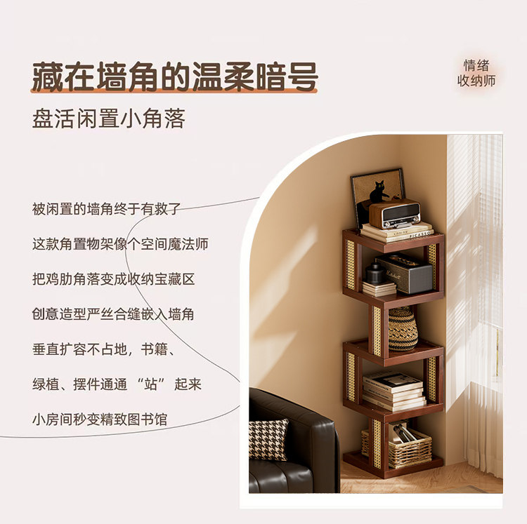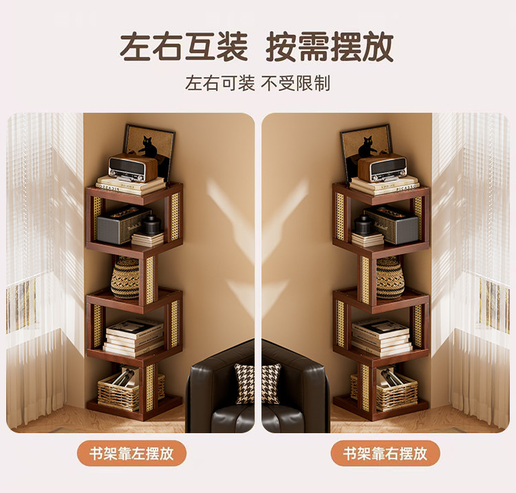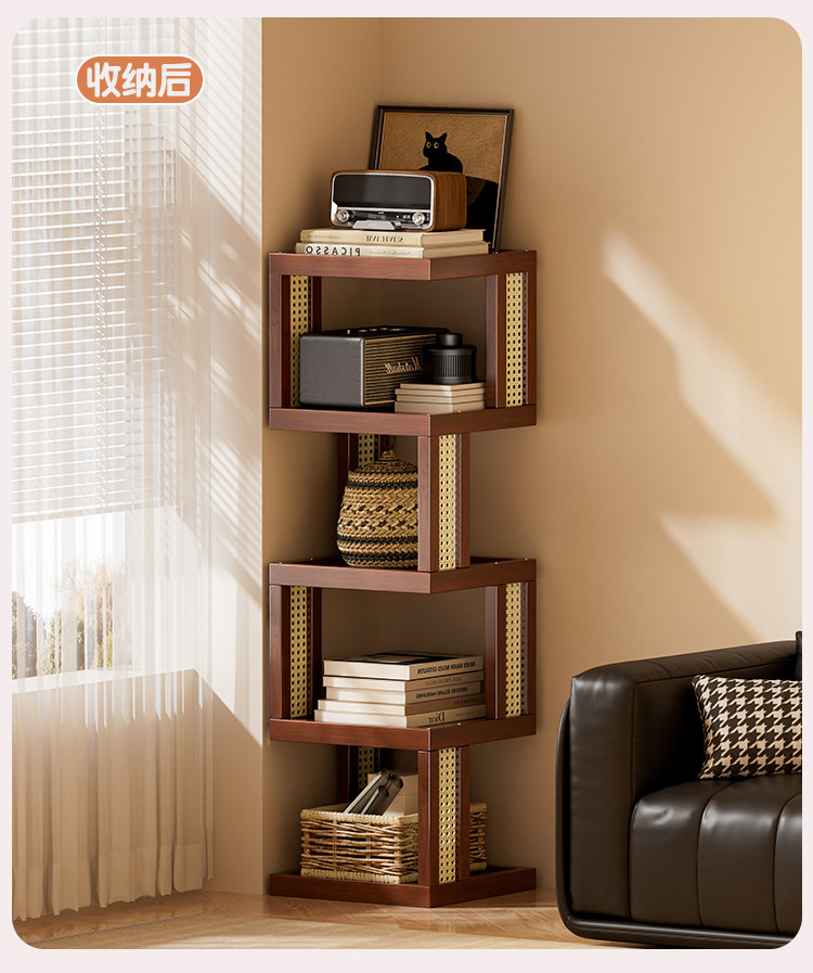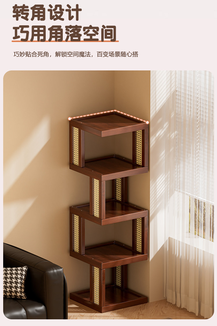 Corner Cabinet Bookshelf Floor-Standing Storage Rack Corner Shelf Integrated Wall-Mounted Floor-Standing Corner Cabinet Small Apartment Living Room Home Use Corner