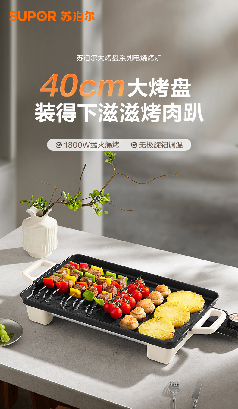 Supor Electric Grill for Home Use, Non-Stick Electric Barbecue Grill, Skewer Grill Machine, Smokeless Electric Grill Pot for Indoor Family Use, New Model
