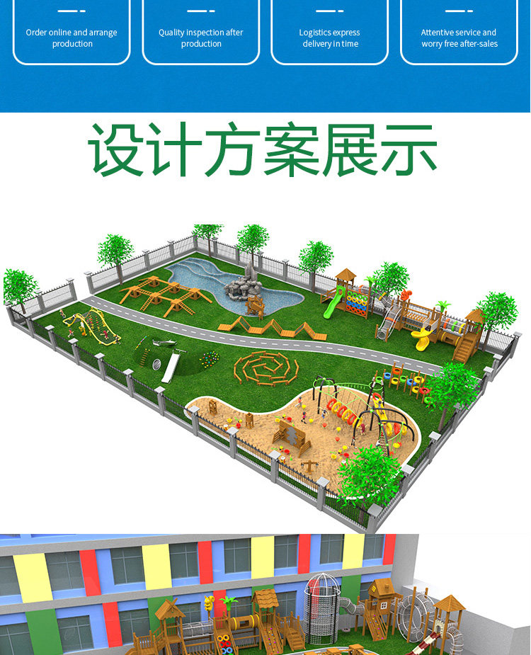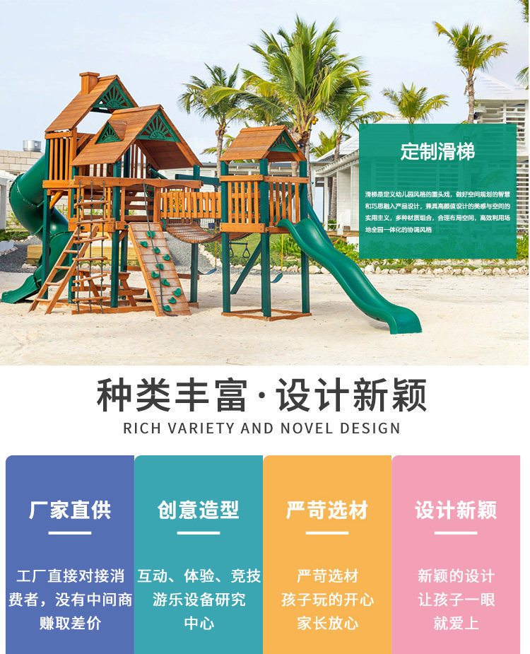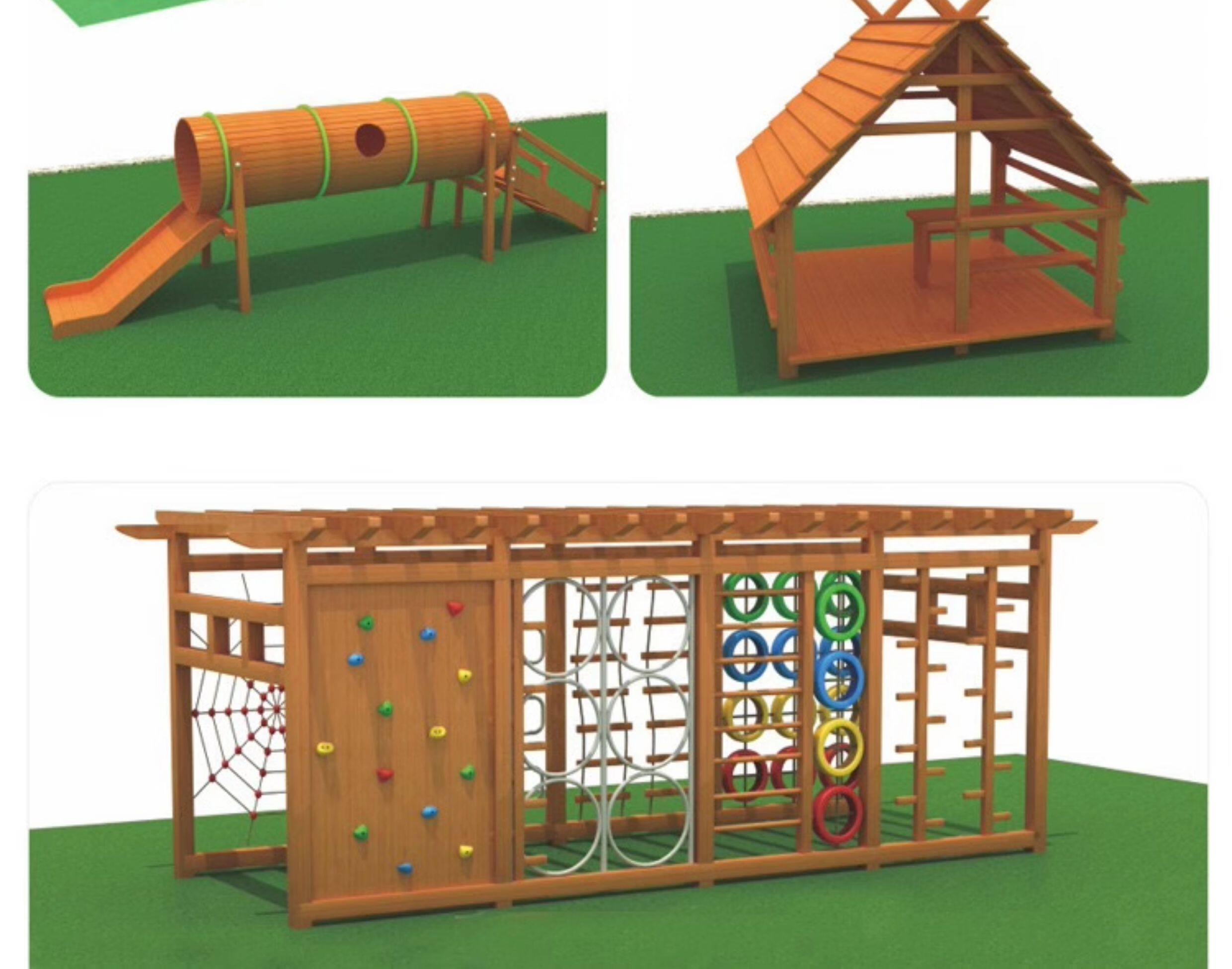Outdoor wooden climbing frame, children's physical training set, large wooden slide toy, kindergarten sensory system