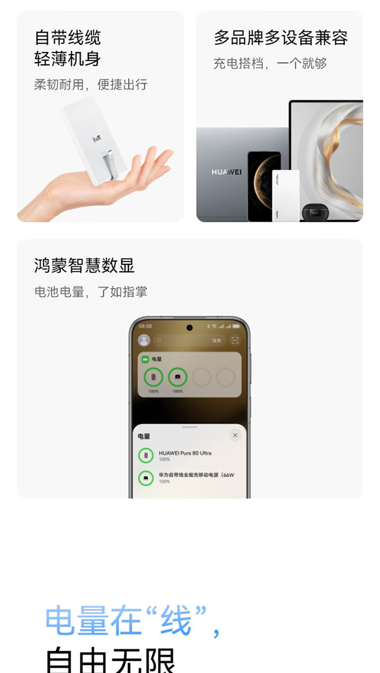 3C certified Huawei 66W self-contained line all-purpose mobile power supply 12000mah power bank can be used on airplanes mobile phone battery safety original official flagship genuine adaptable to Mate80 series