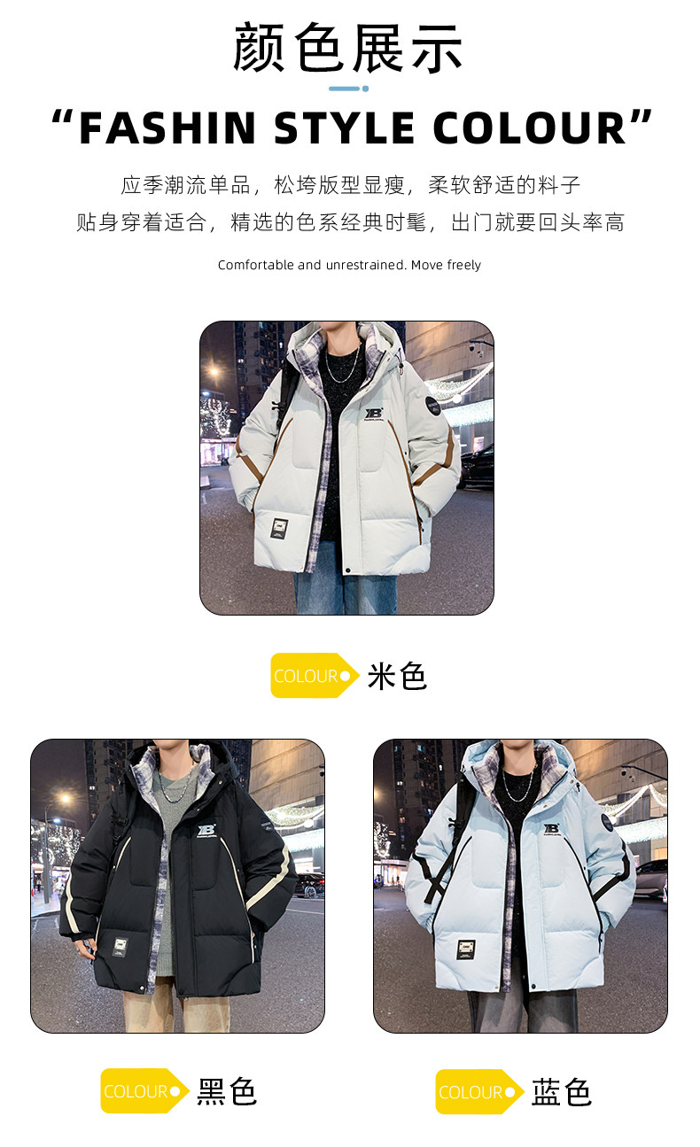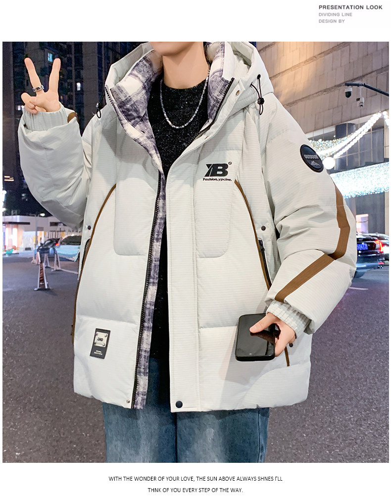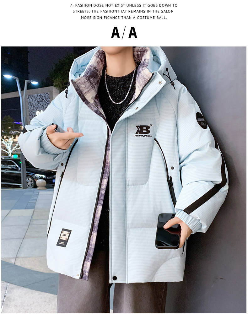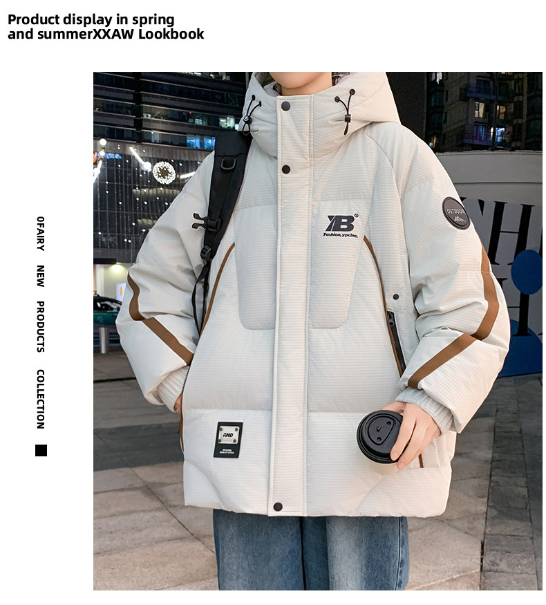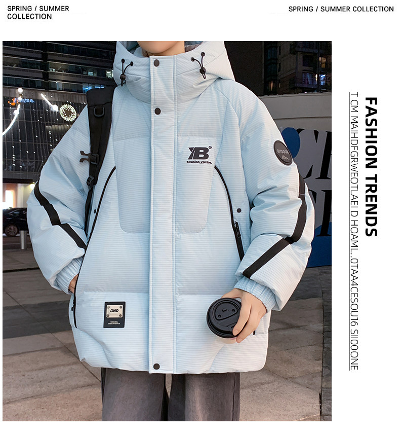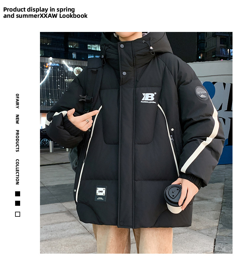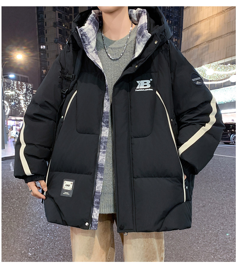 Winter Hooded Cotton Jacket for Teenage Boys, College Style, Trendy, Versatile, Loose Fit, Thickened, Warm, Cold-Proof Student Coat