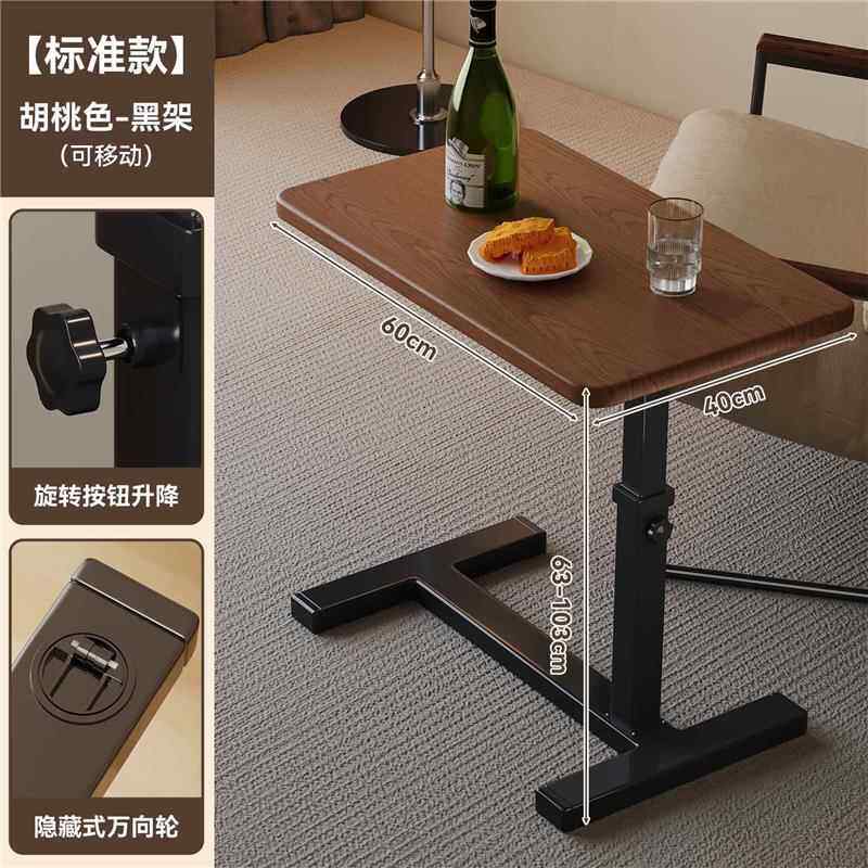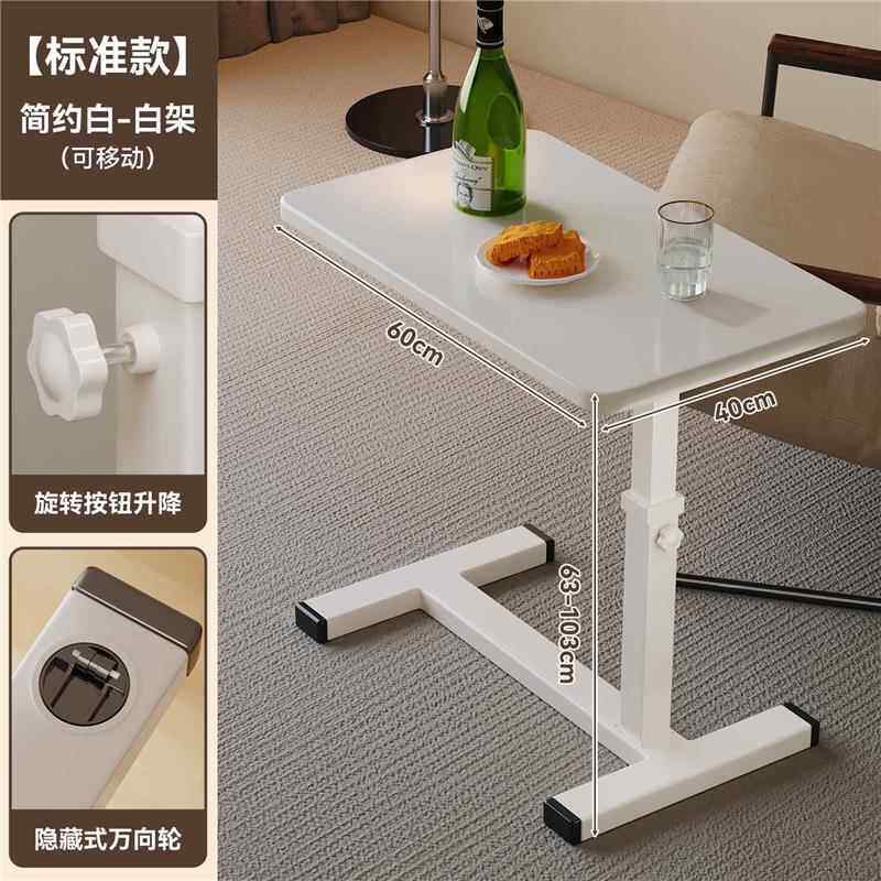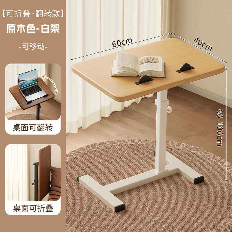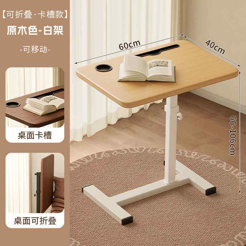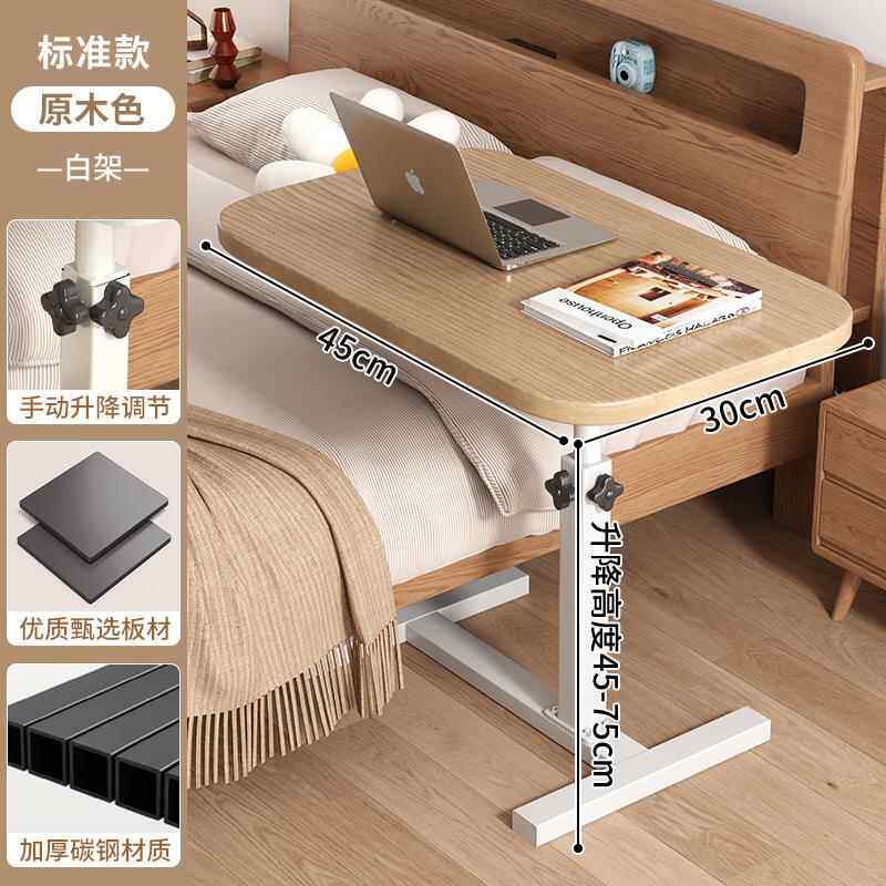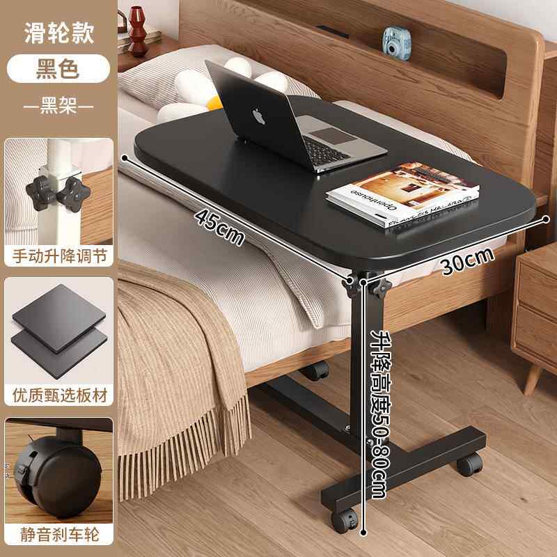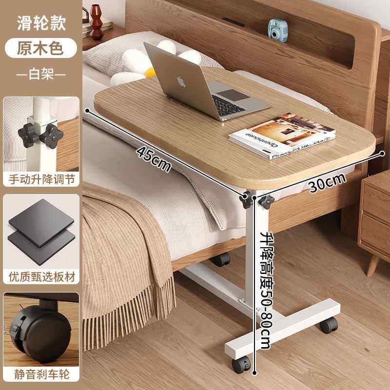 Bedside Table, Movable and Adjustable Height Computer Desk, Living Room Sofa Side Table, Folding Desk, Bedroom Home Use Bed Study Table, Bed Sheet Pull-Out Cart