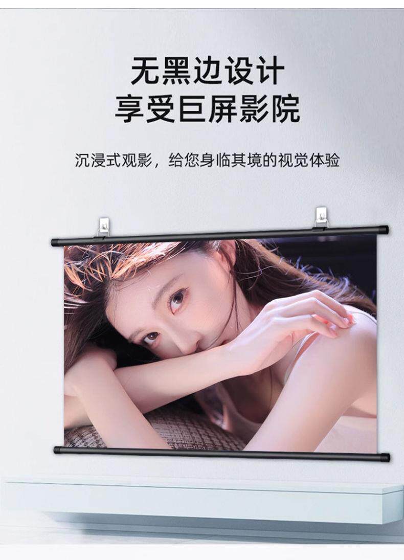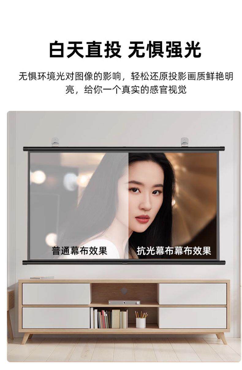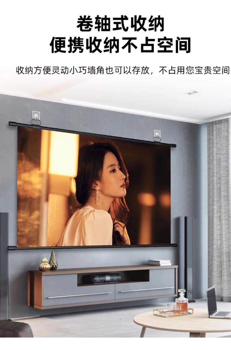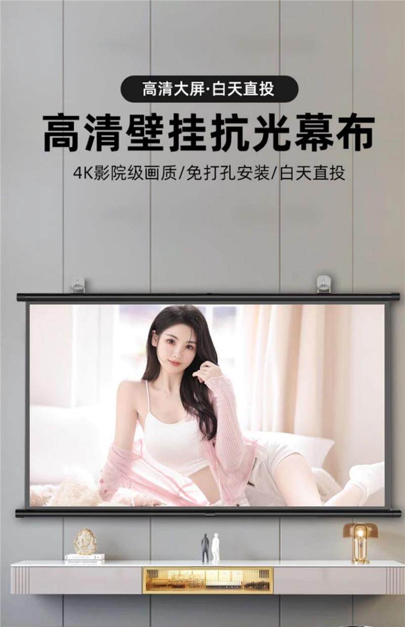 Projector Screen Anti-Light Wall-Mounted Screen for Home Use, Home Theater, No-Drill High-Definition Projection Cloth, 72-Inch, 84-Inch, 100-Inch, 120-Inch, Portable Wall-Mounted Screen for Bedroom, Living Room, Office Projector Screen
