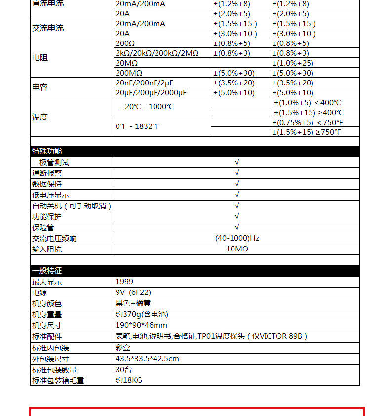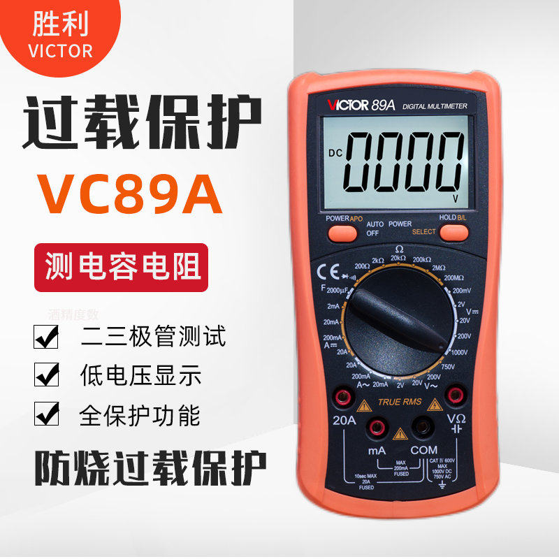 Victory Vc89A Digital Multimeter with Full Protection Circuit, High-Precision Multi-Purpose Capacitance Digital Display Multimeter